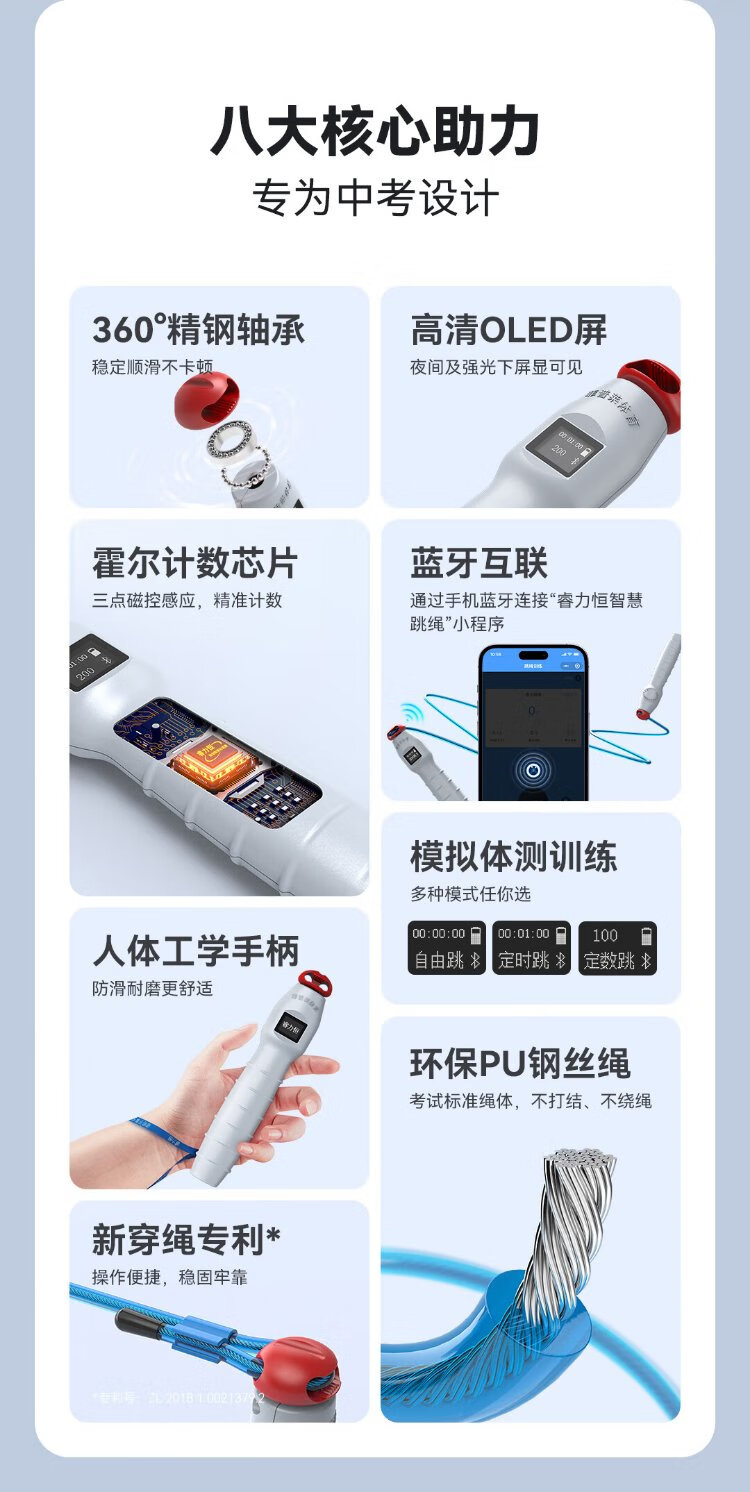 Ruiliheng special skipping rope for high school entrance examination official student pre-examination professional training sports examination Bluetooth smart skipping rope manufacturer straight hair red head pre-examination training new version smart high school entrance examination