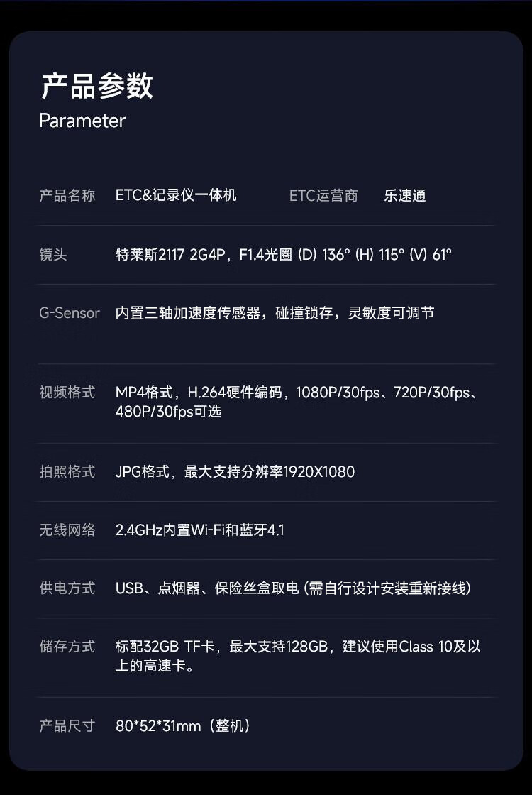Yinbo ETC driving recorder integrated high-definition intelligent intelligent high-definition parking monitoring car high-speed national universal etc Yaoshihei (self-installed)