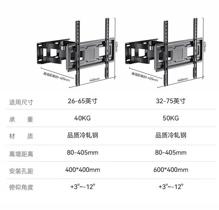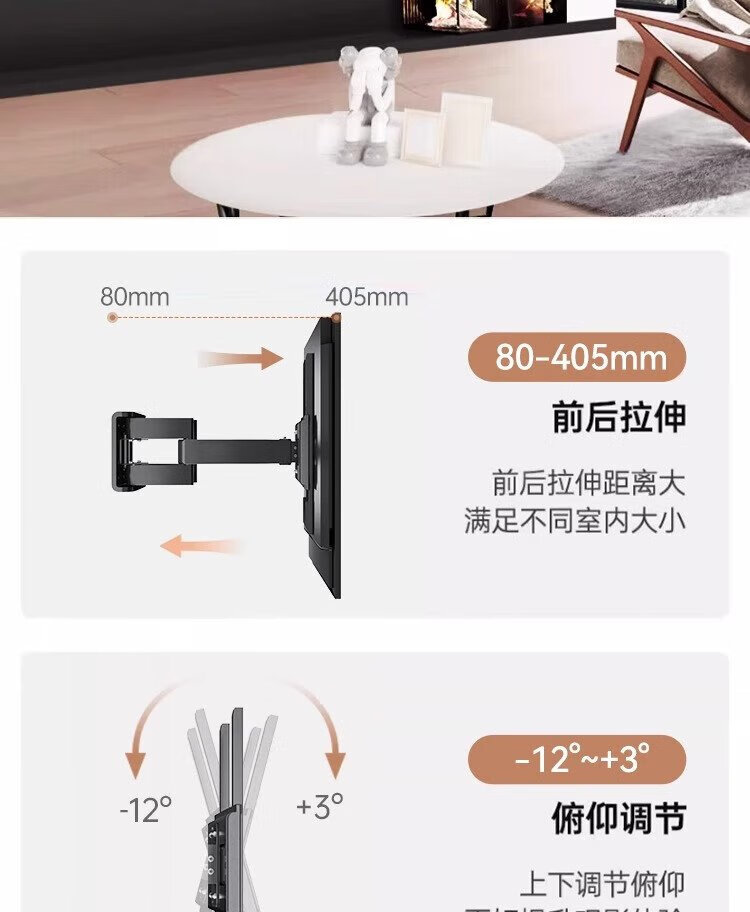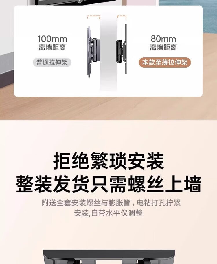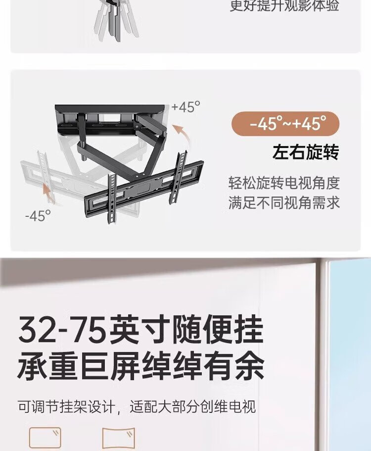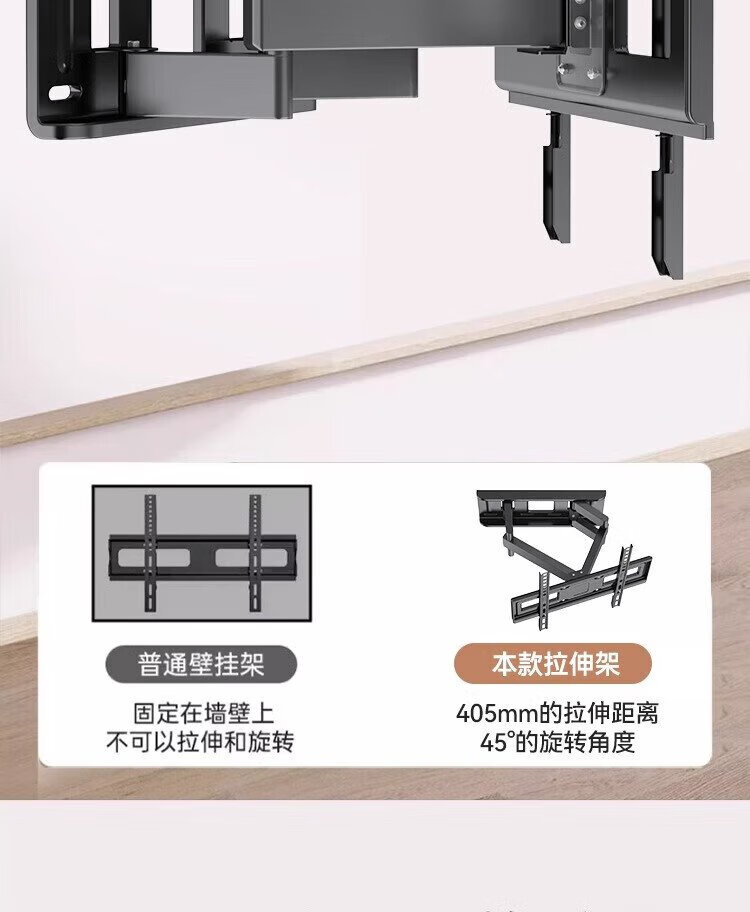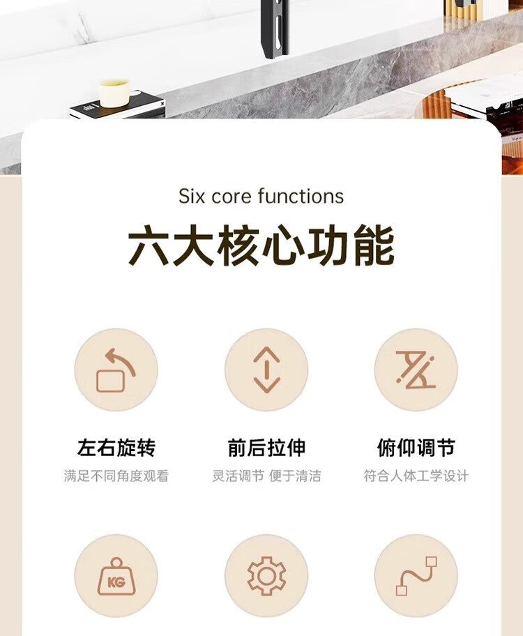 Zhilong TV Telescopic Mount TV Bracket Rotating Wall Mount (32-75 inches) is suitable for Xiaomi TCL Hisense Skyworth Universal TV Stand 32-75 Strengthened Six Arms丨Super cost-effective