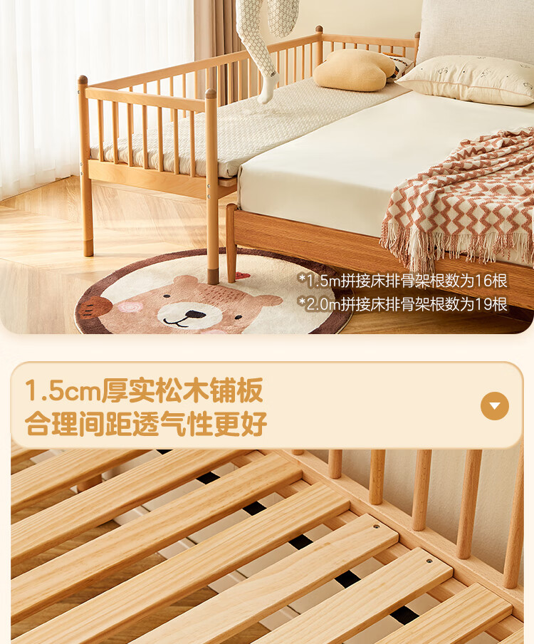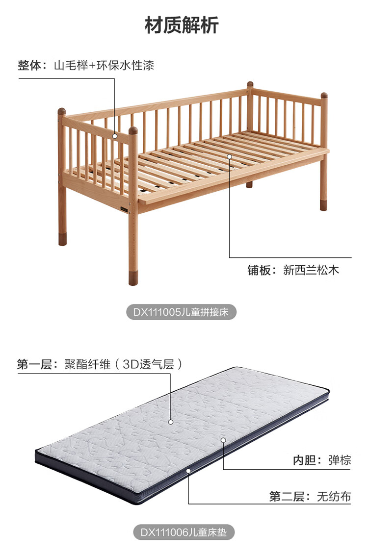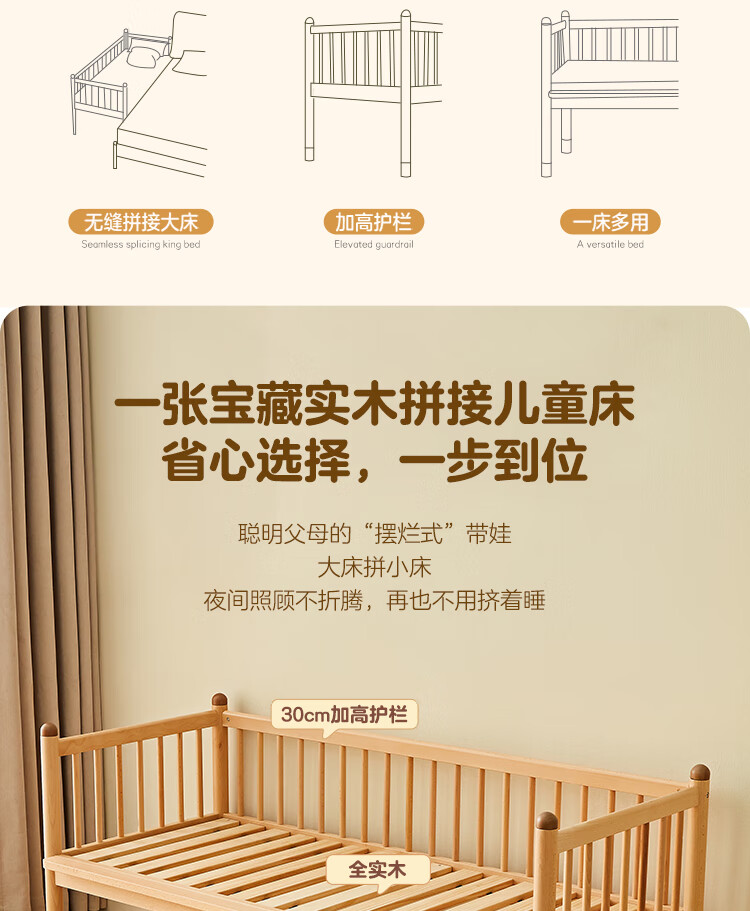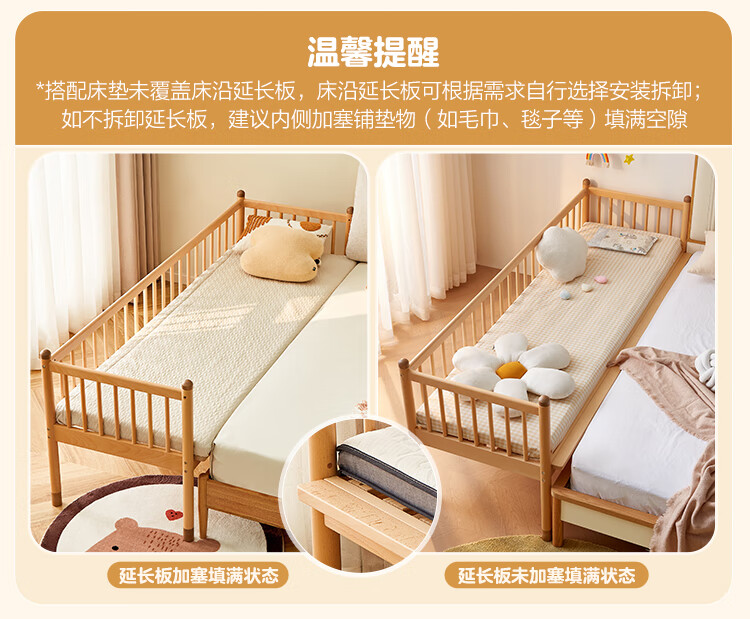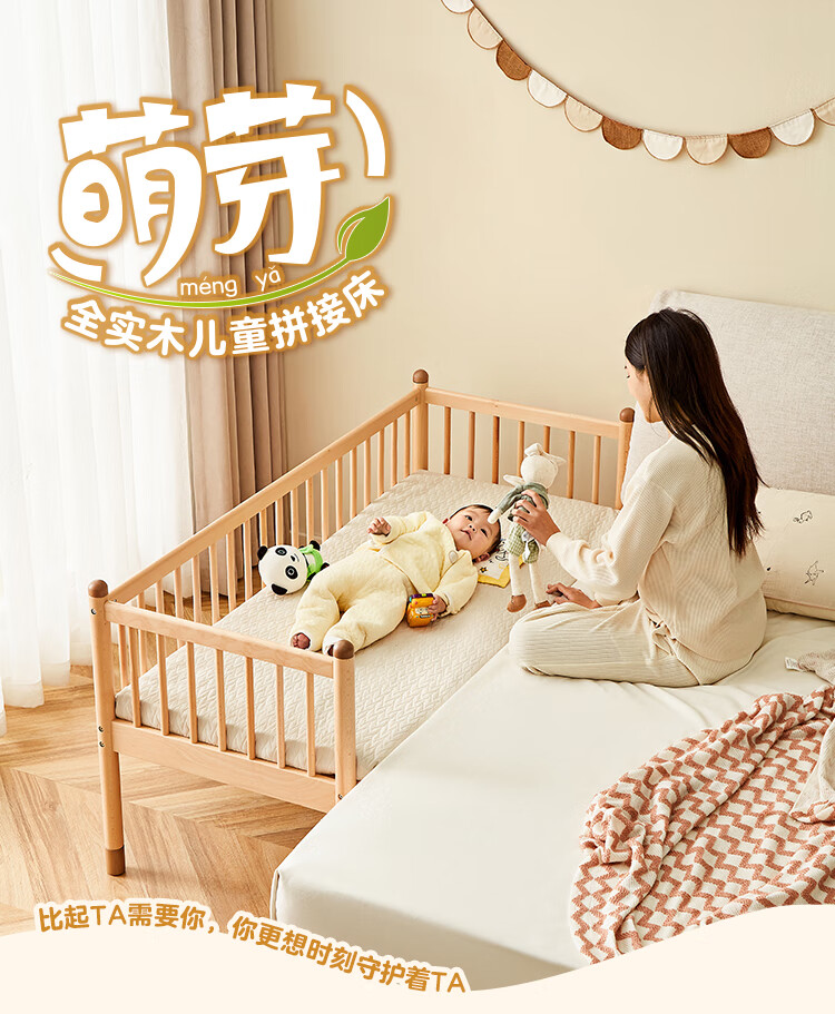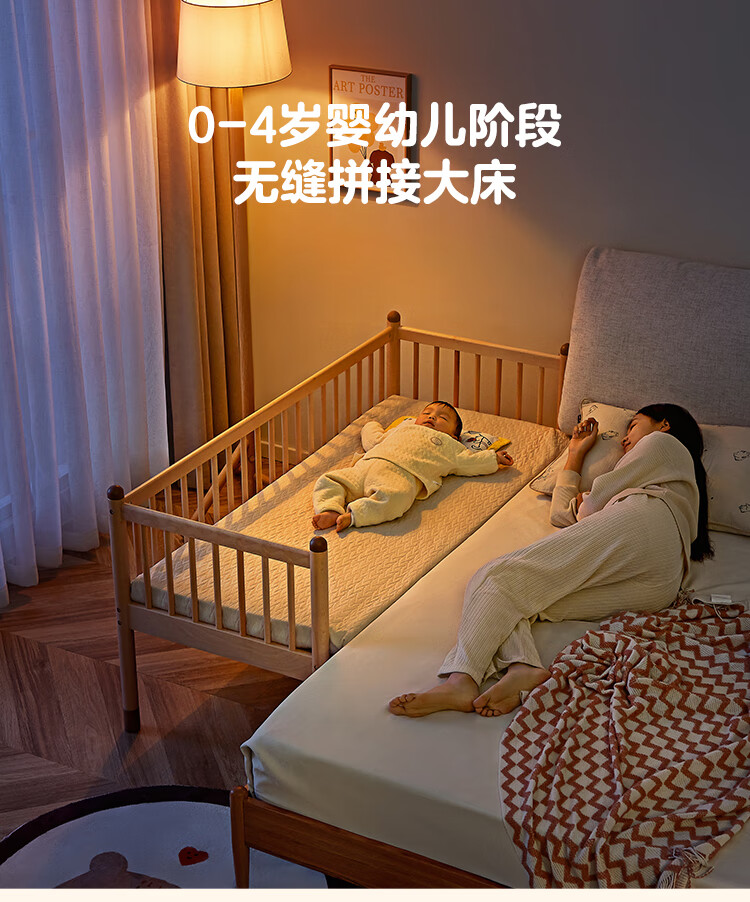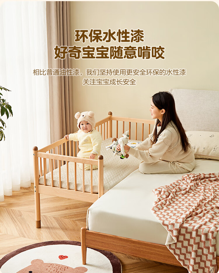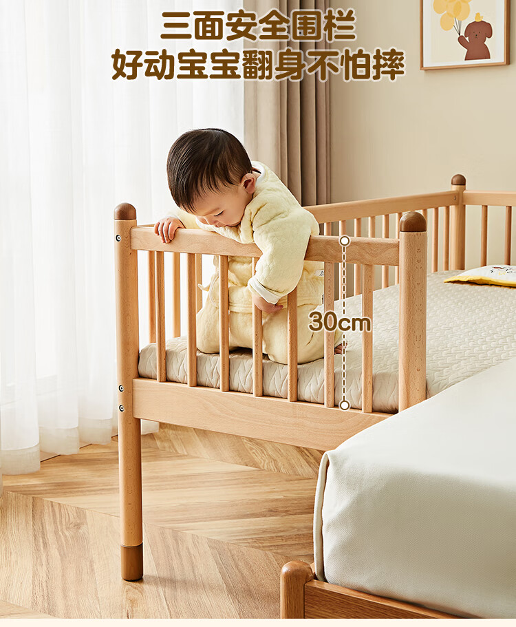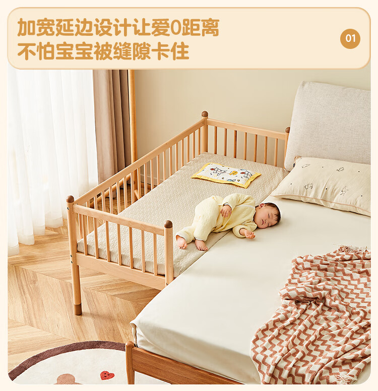 Quanyou (QUANU) Home Furnishing Simple Solid Wood Crib Guardrails Children's Side Bed Baby Bed Spliced Adult Bed Widened KS 2*0.6 Meters | Children's Spliced Bed + Mattress