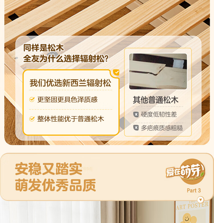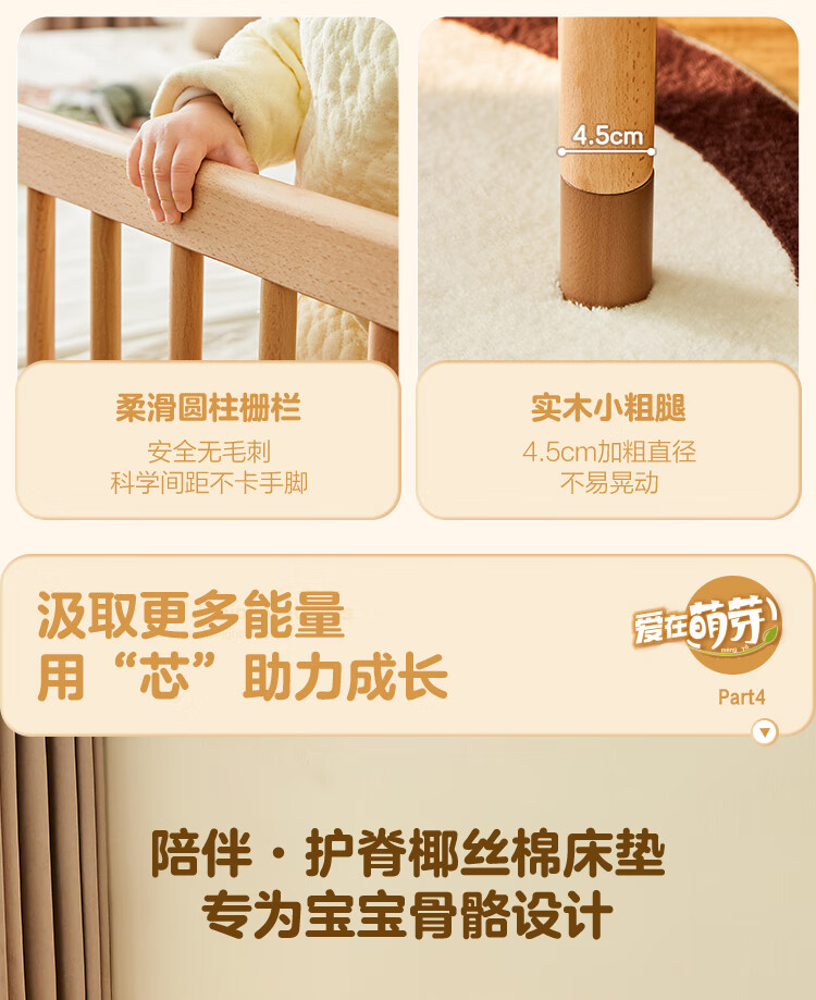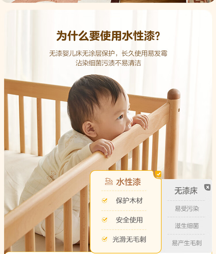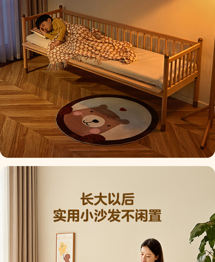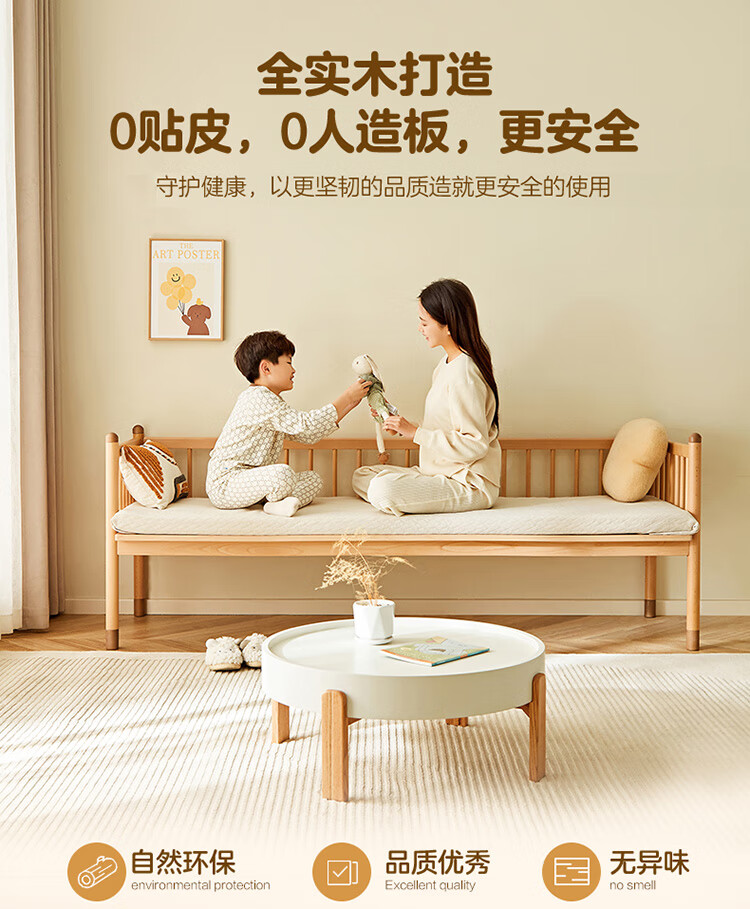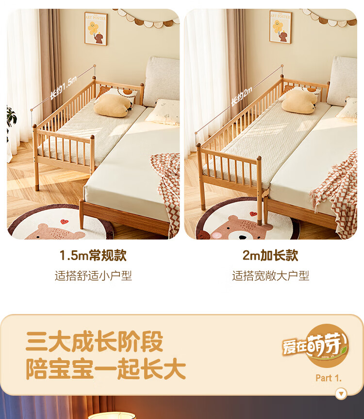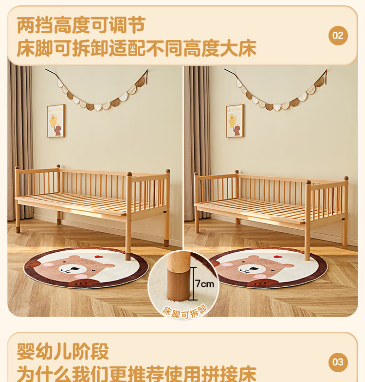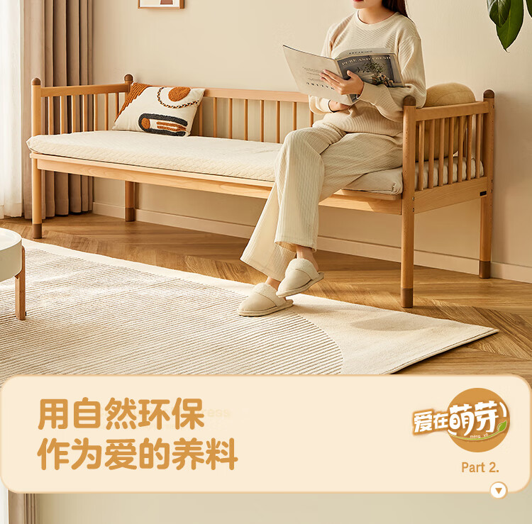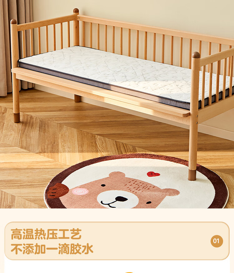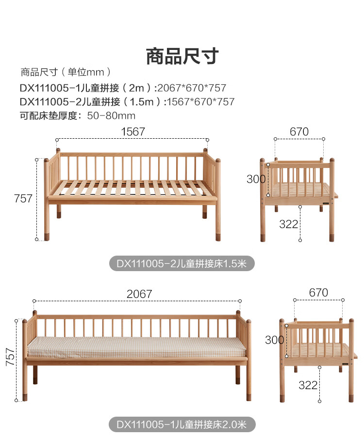 Quanyou (QUANU) Home Furnishing Simple Solid Wood Crib Guardrails Children's Side Bed Baby Bed Spliced Adult Bed Widened KS 2*0.6 Meters | Children's Spliced Bed + Mattress