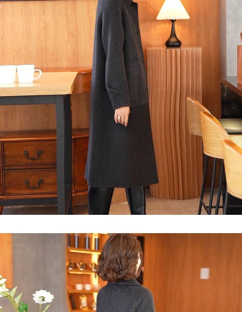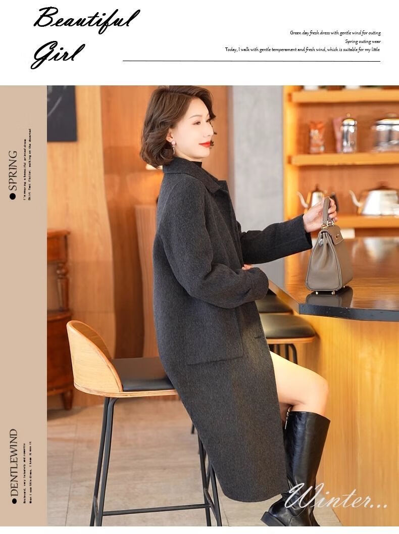 Pierre Cardin official brand flagship women's woolen coat women's mid-length woolen double-sided woolen winter thickened carbon gray woolen (quilted) thickened M recommended 105-120 pounds