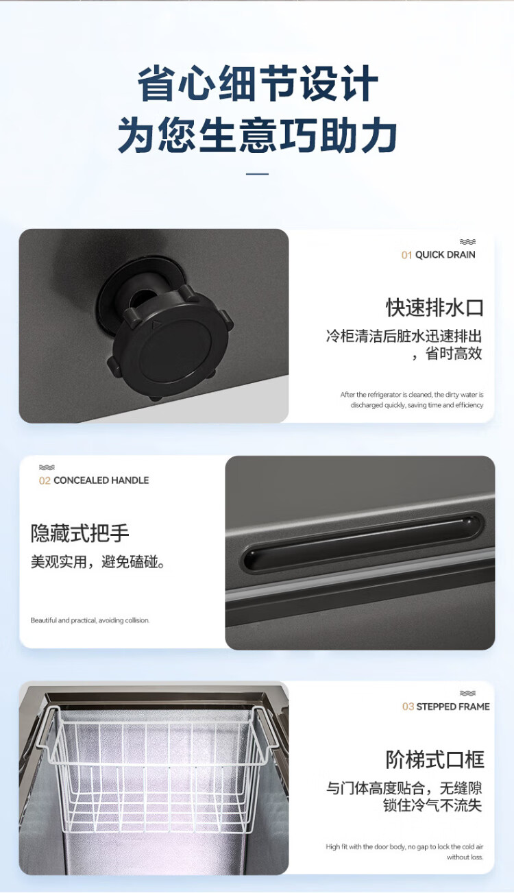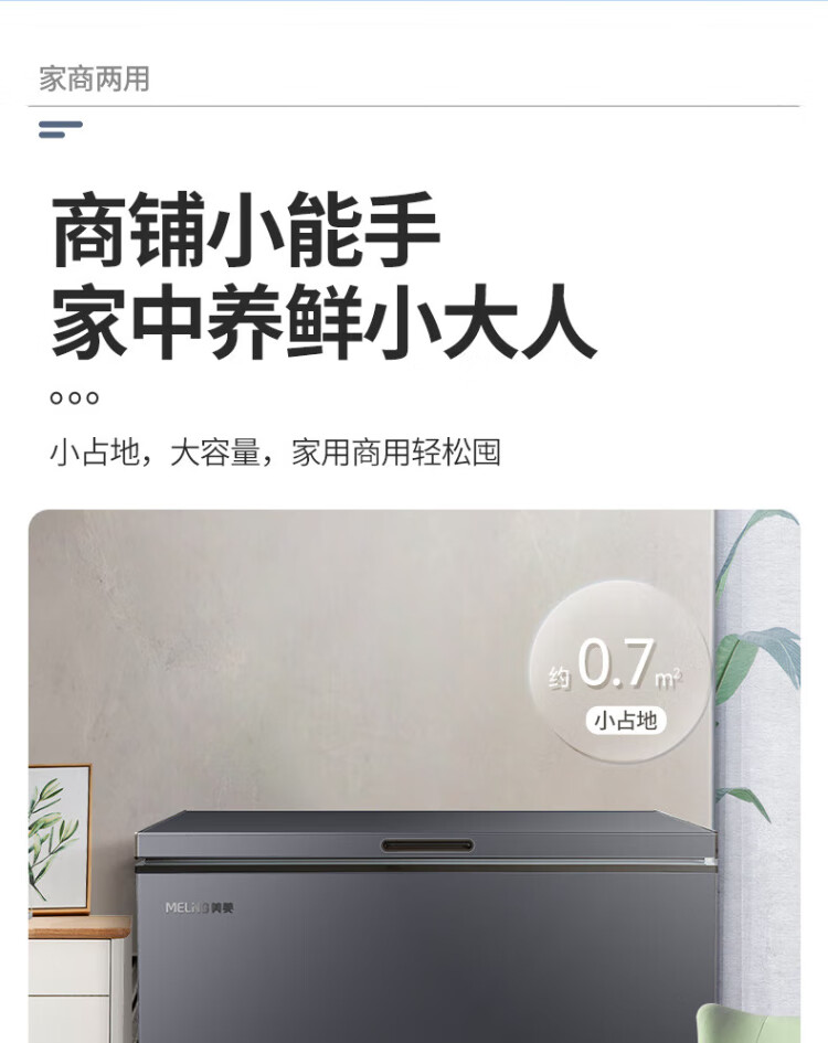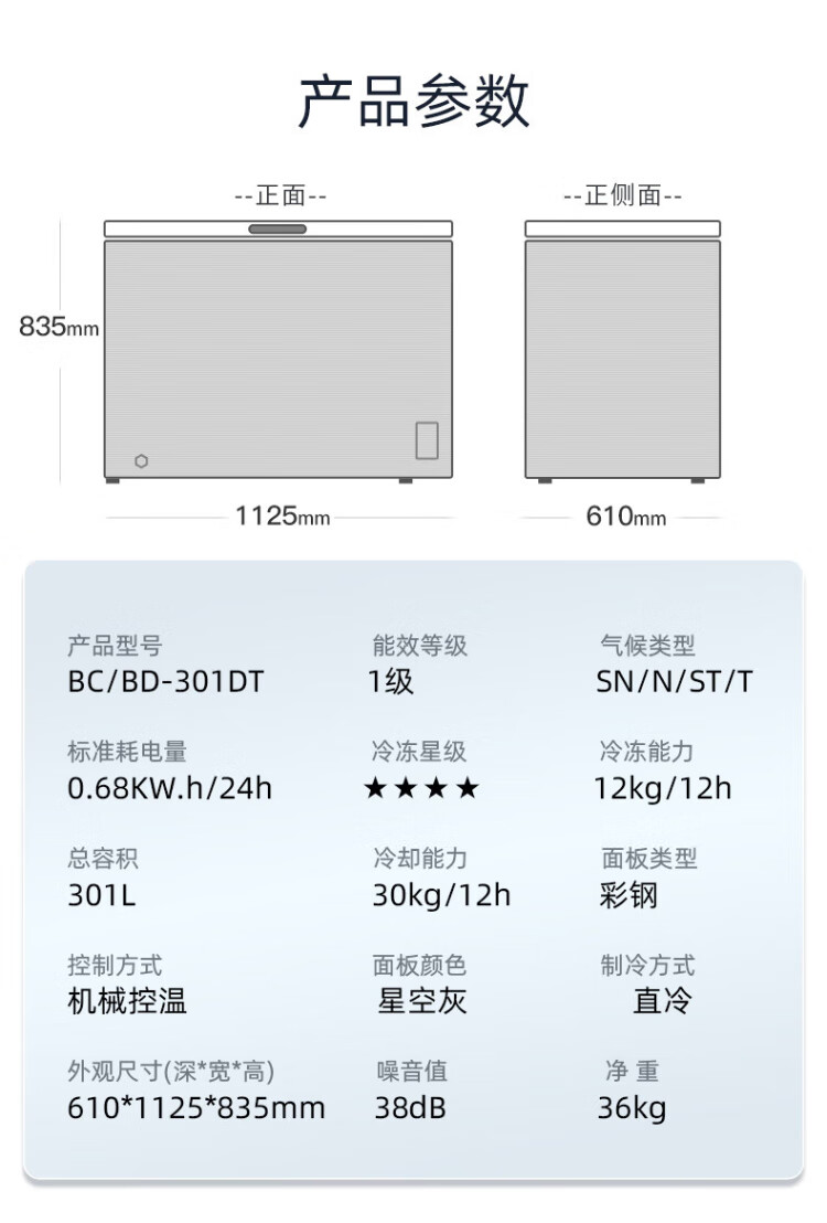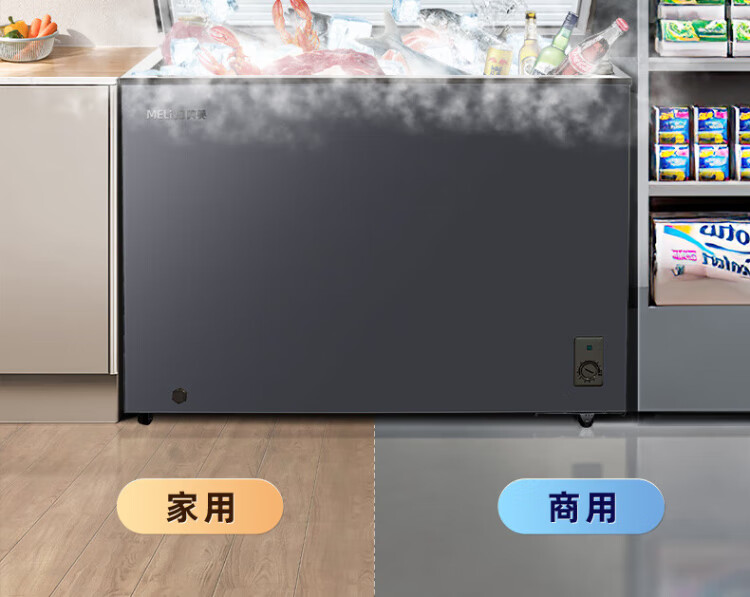 Meiling (MeiLing) Freezer 300/301 liter household large-capacity freezer refrigeration freezing conversion variable temperature cabinet horizontal first-class energy efficiency single temperature anti-frost large freezer top-opening commercial fresh-keeping cabinet BC/BD-301DT-grey 301L