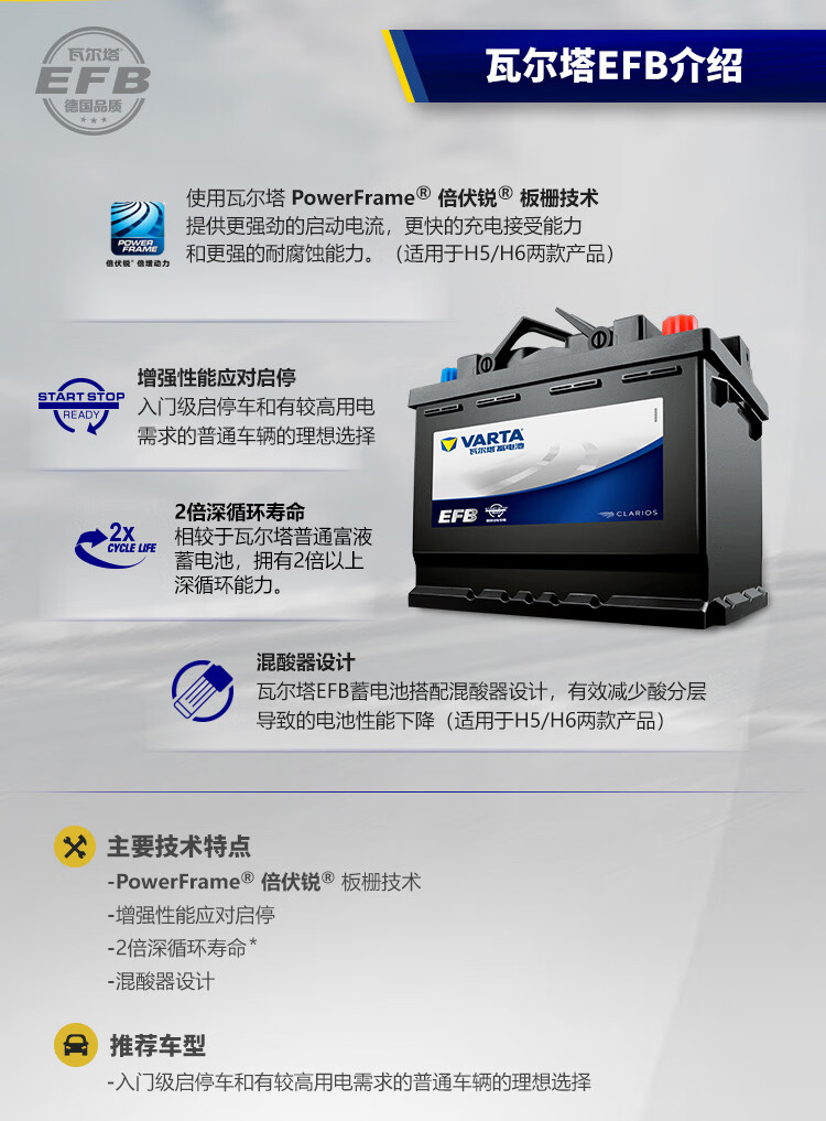 Valta car battery start-stop round mark EFB H5 60AH suitable for Great Wall Honda Civic Volkswagen Haval