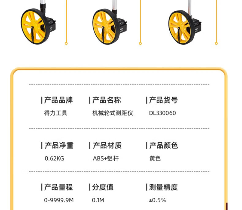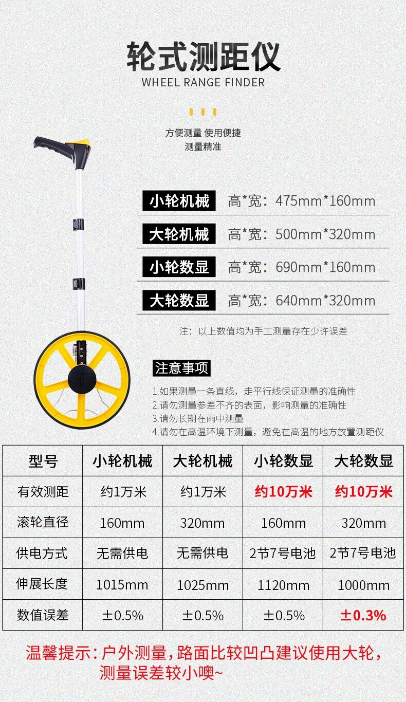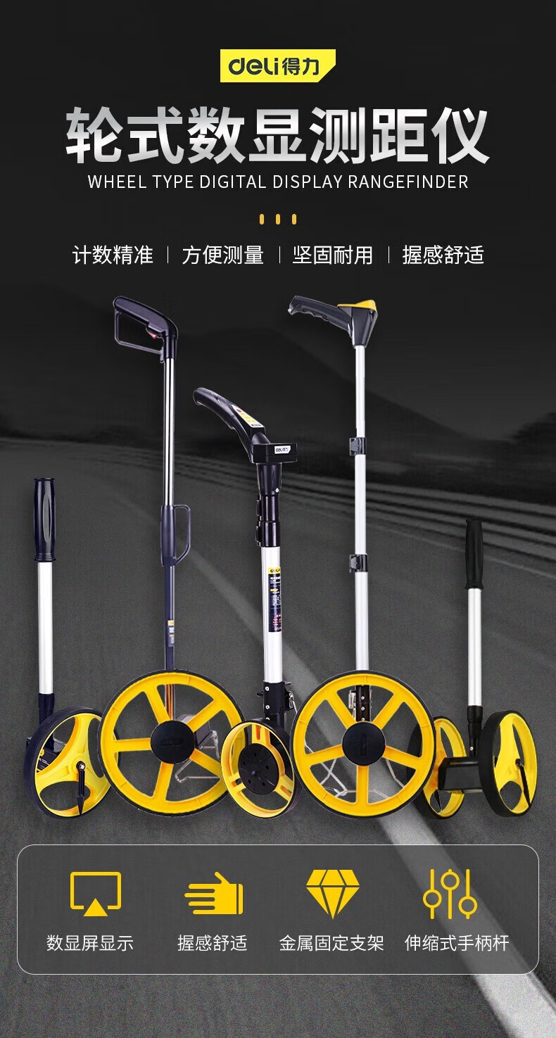 Deli digital distance measuring wheel hand push roller distance meter road measuring machine mechanical outdoor rolling push ruler engineering measuring ruler DL4179 large digital display wheel (diameter 300mm)