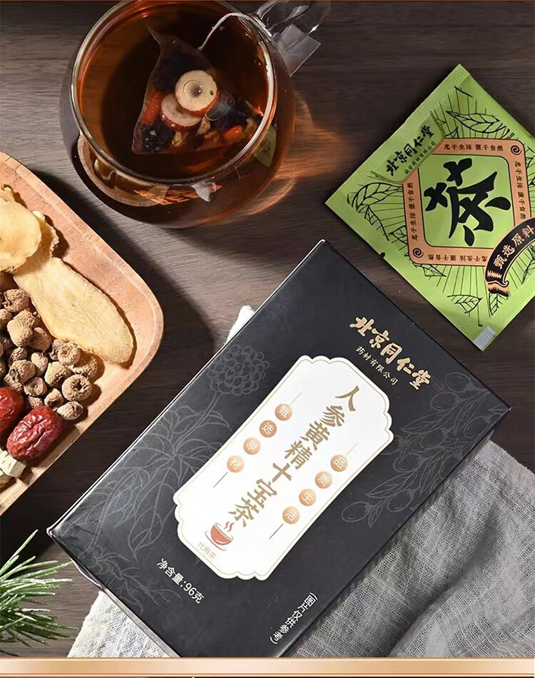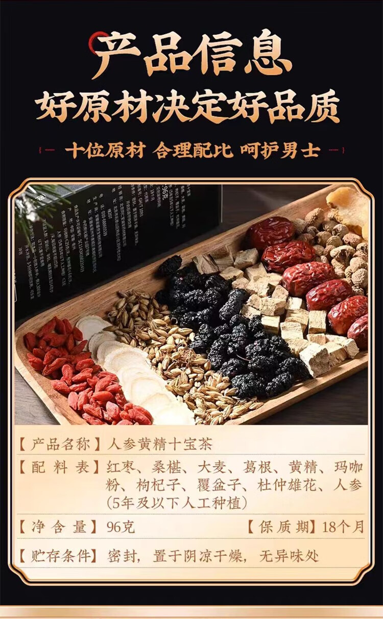 Tongrentang Ginseng, Polygonatum, Ten Treasures Tea, Wolfberry and Eight Treasures Healthy Tea, Men's Maca, Ginseng and Nine Treasures Tea Red, One Box, Real Materials, No Debris