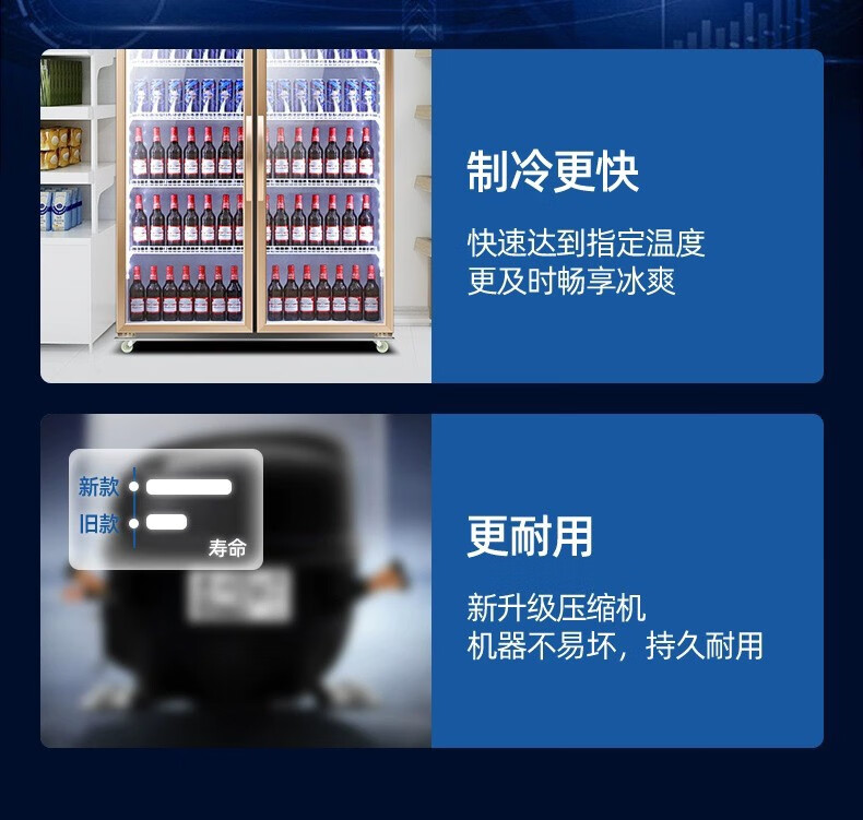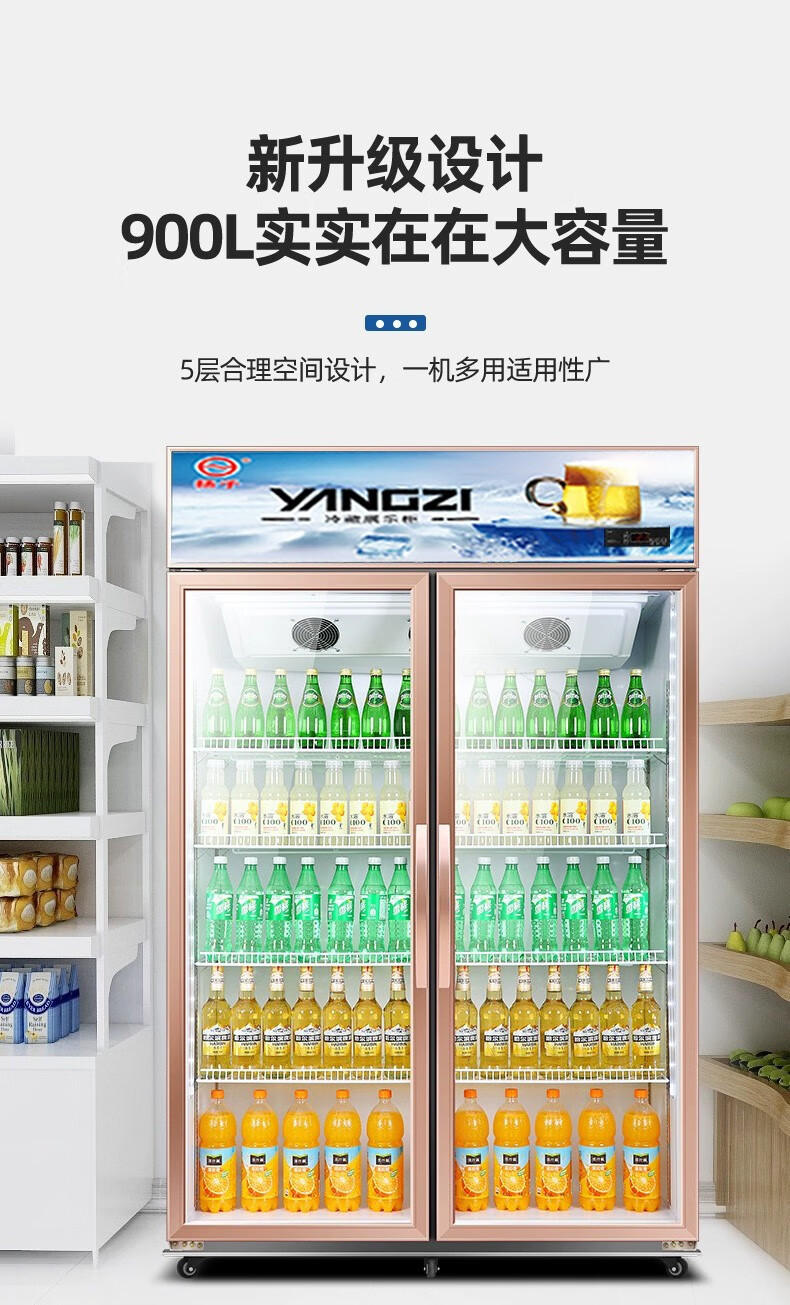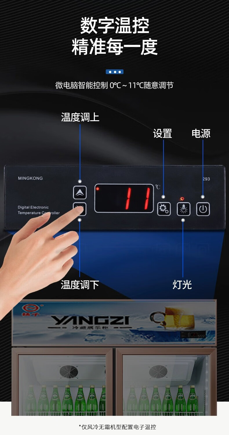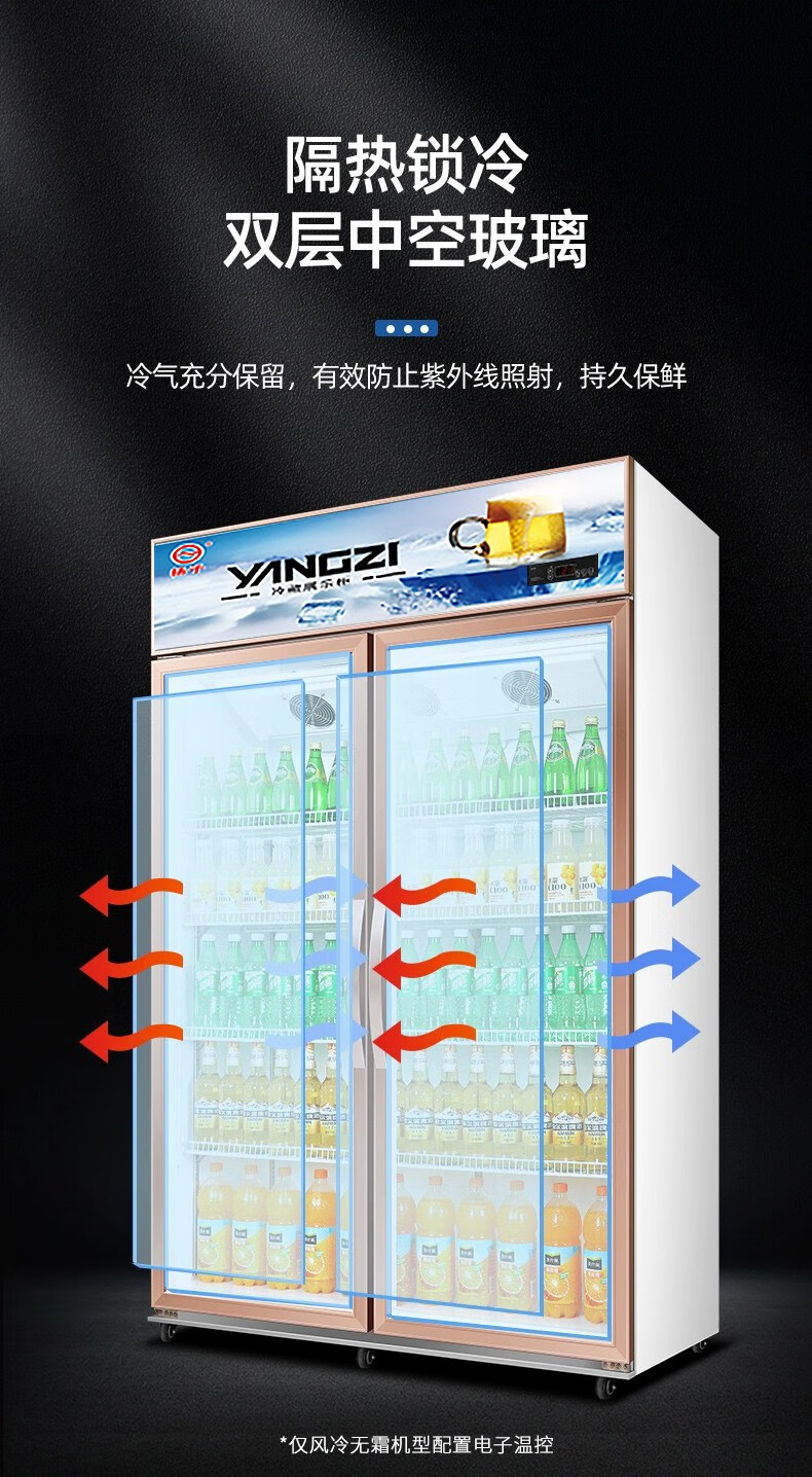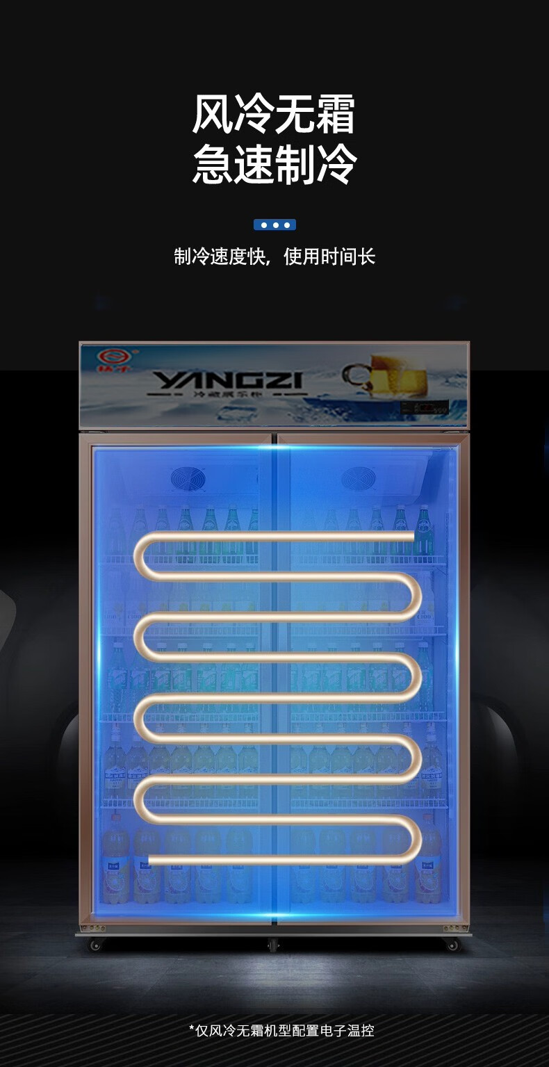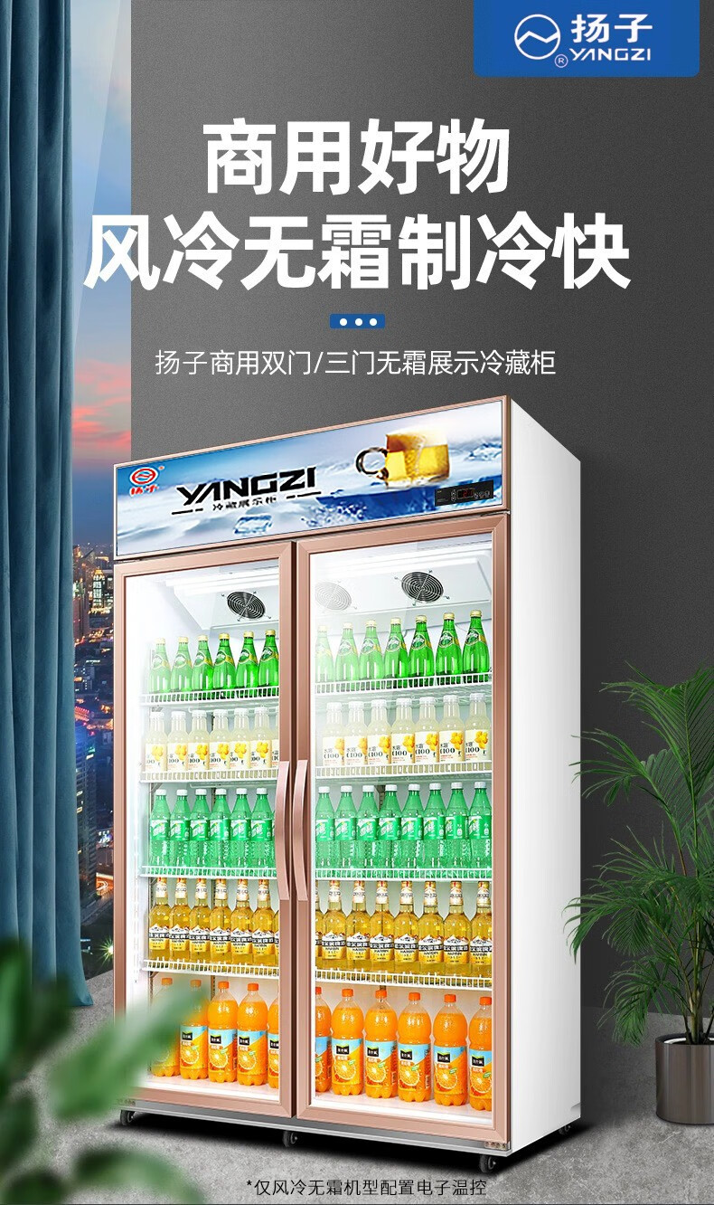 Yangzi aluminum alloy door beverage display cabinet refrigerated freezer fresh-keeping double door commercial single door beer refrigerator vertical 260 single door air direct cooling model high-end aluminum alloy door
