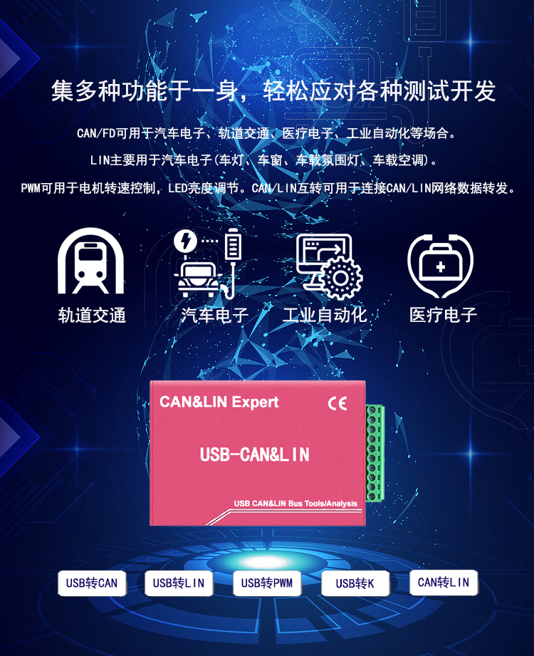 USB to LIN CAN bus analyzer FD supports DBC LDF protocol analysis USB2CAN2II CANFD development board 4-way LIN version USBL4GSTD