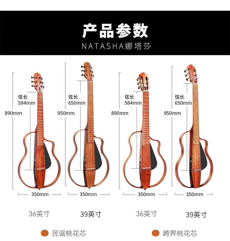 Natasha NBSG mahogany core 36-inch 39-inch MSG smart silent folk steel string classical nylon stage electric box guitar 39-inch MSG mahogany core silent folk steel string model
