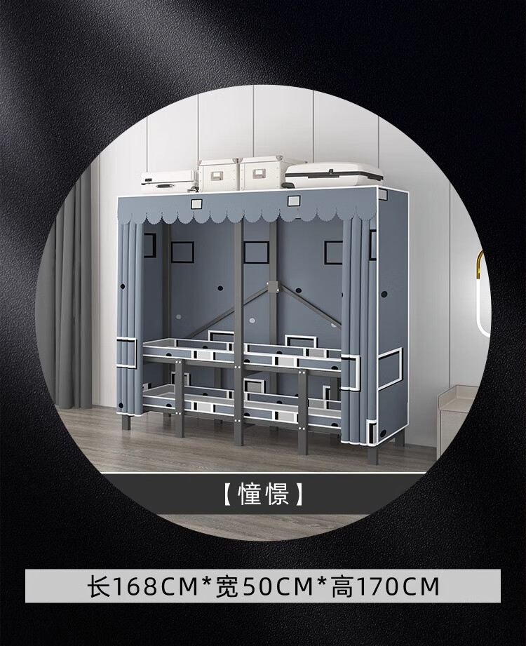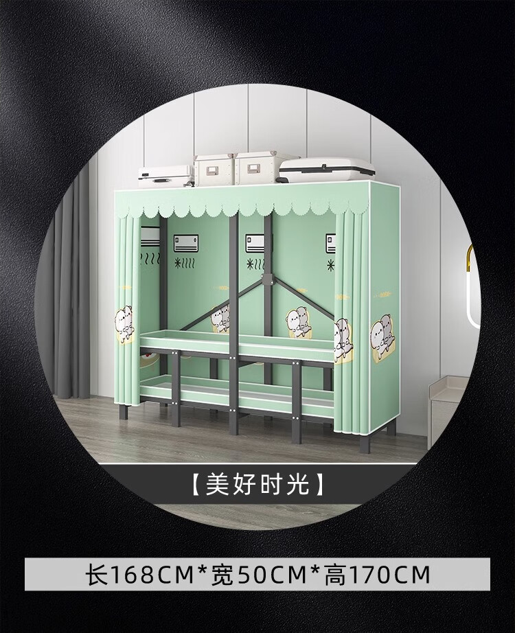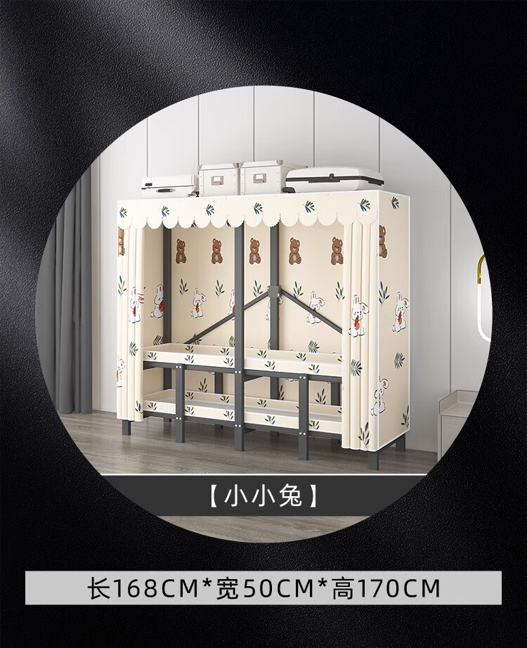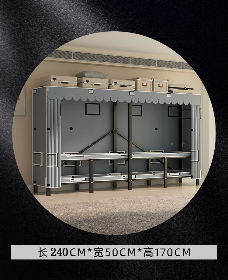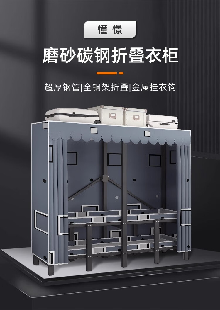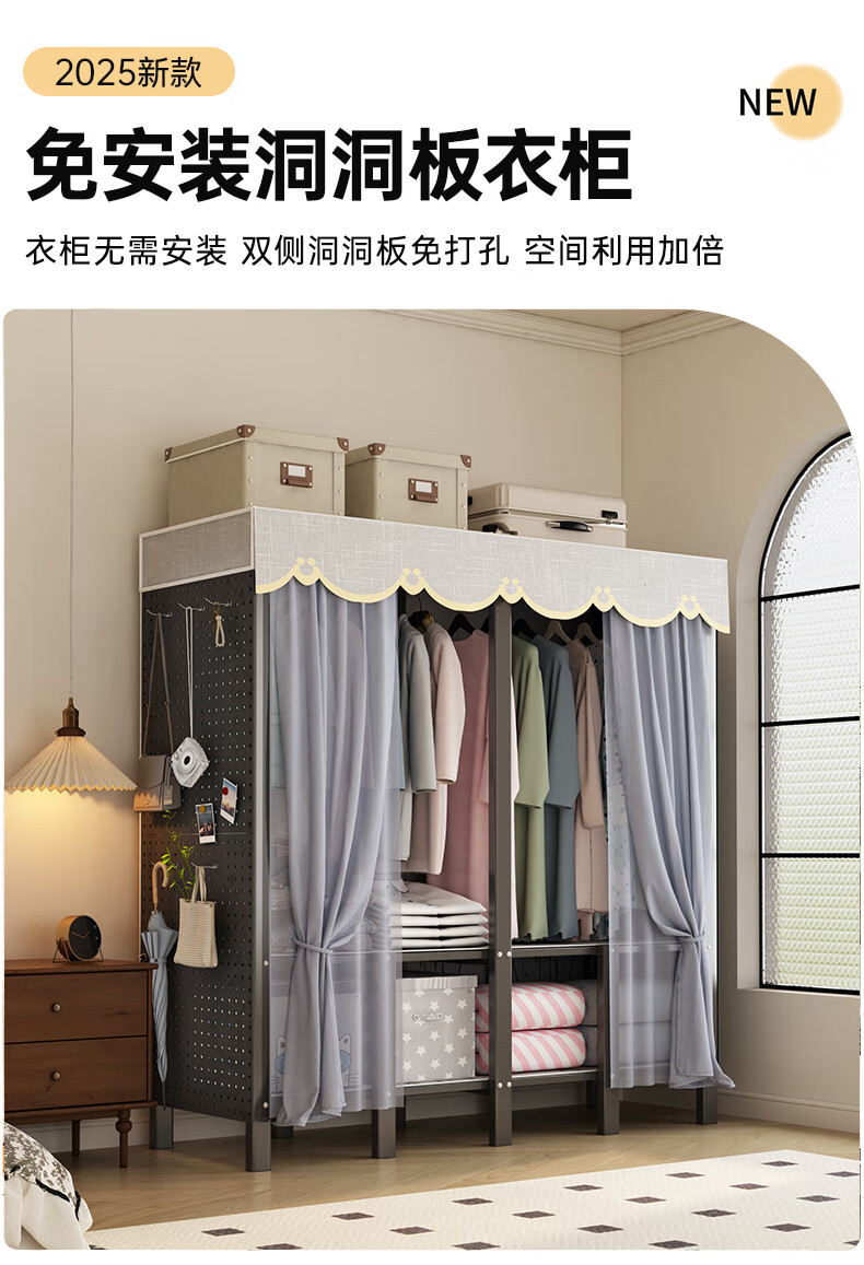 Wardrobe for home bedrooms, no installation required, folding simple fabric wardrobe, full steel frame for rental, strong and durable wardrobe, longing grid, one-piece, no installation required, length 240*width 50*height 170cm