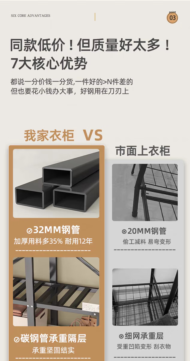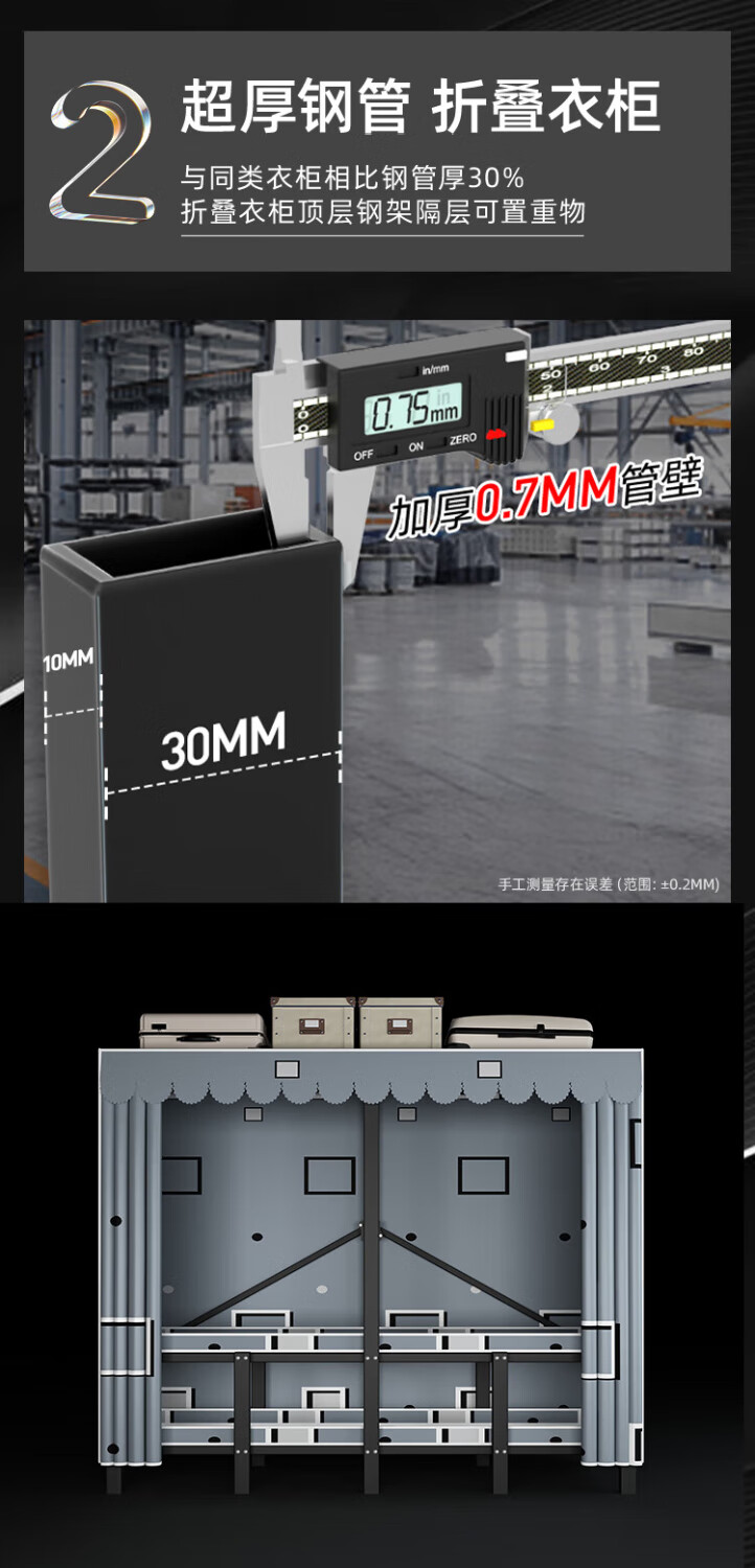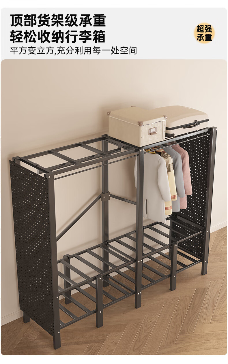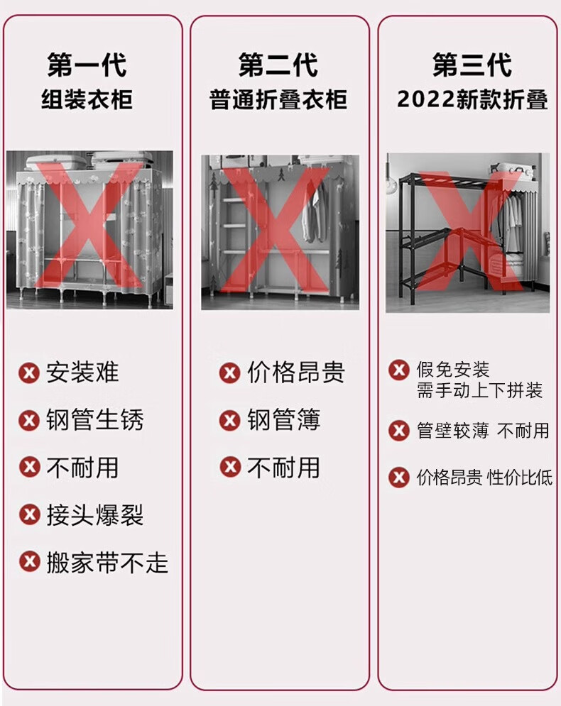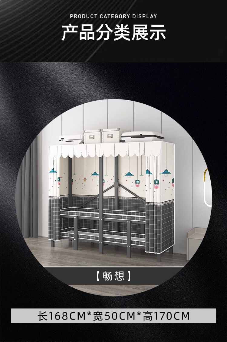 Wardrobe for home bedrooms, no installation required, folding simple fabric wardrobe, full steel frame for rental, strong and durable wardrobe, longing grid, one-piece, no installation required, length 240*width 50*height 170cm