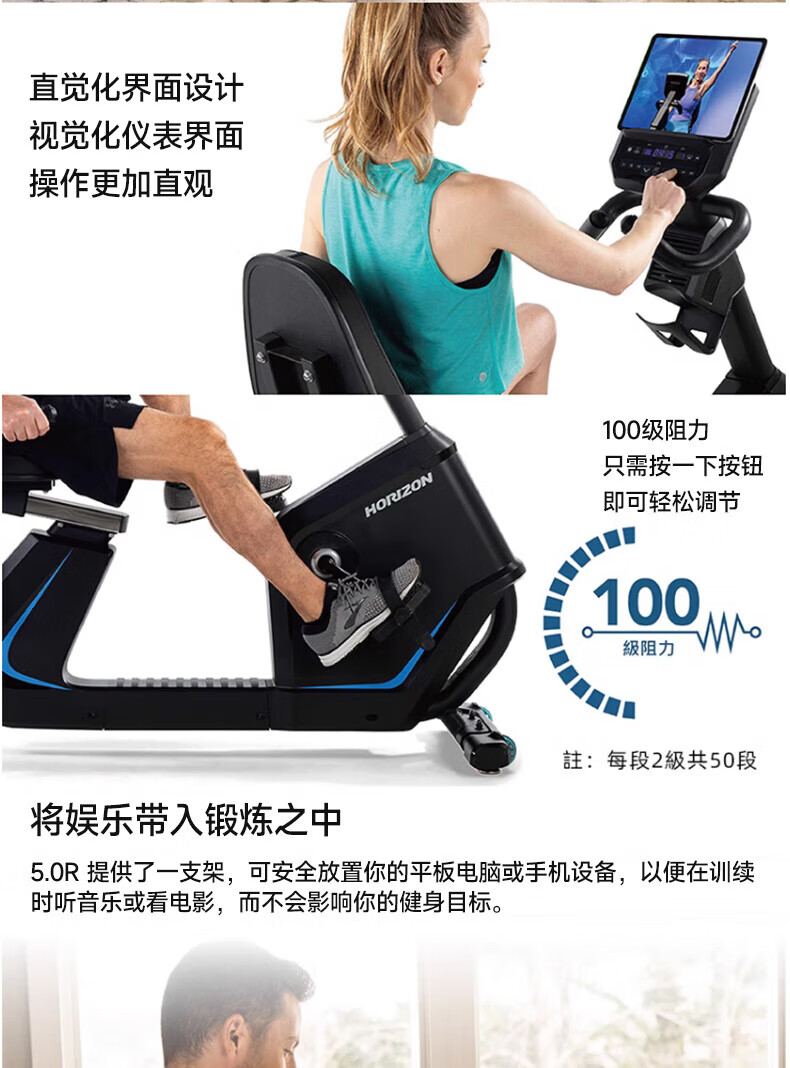 JOHNSON exercise bike household vertical horizontal smart power bike indoor cycling elderly rehabilitation pedal training equipment horizontal exercise bike 5.0R 100 levels of resistance