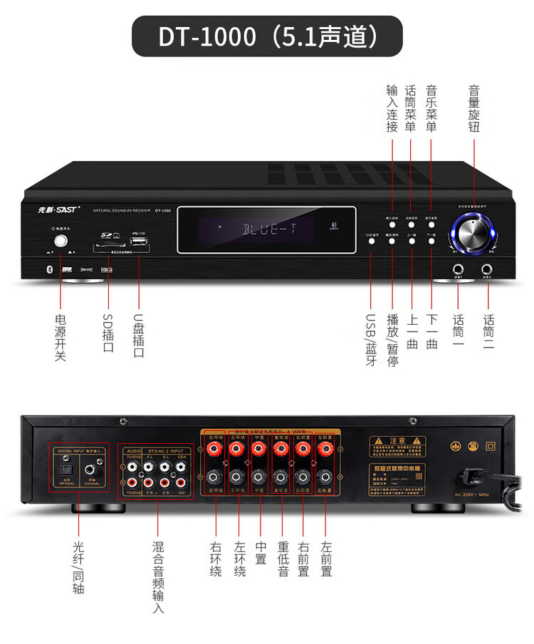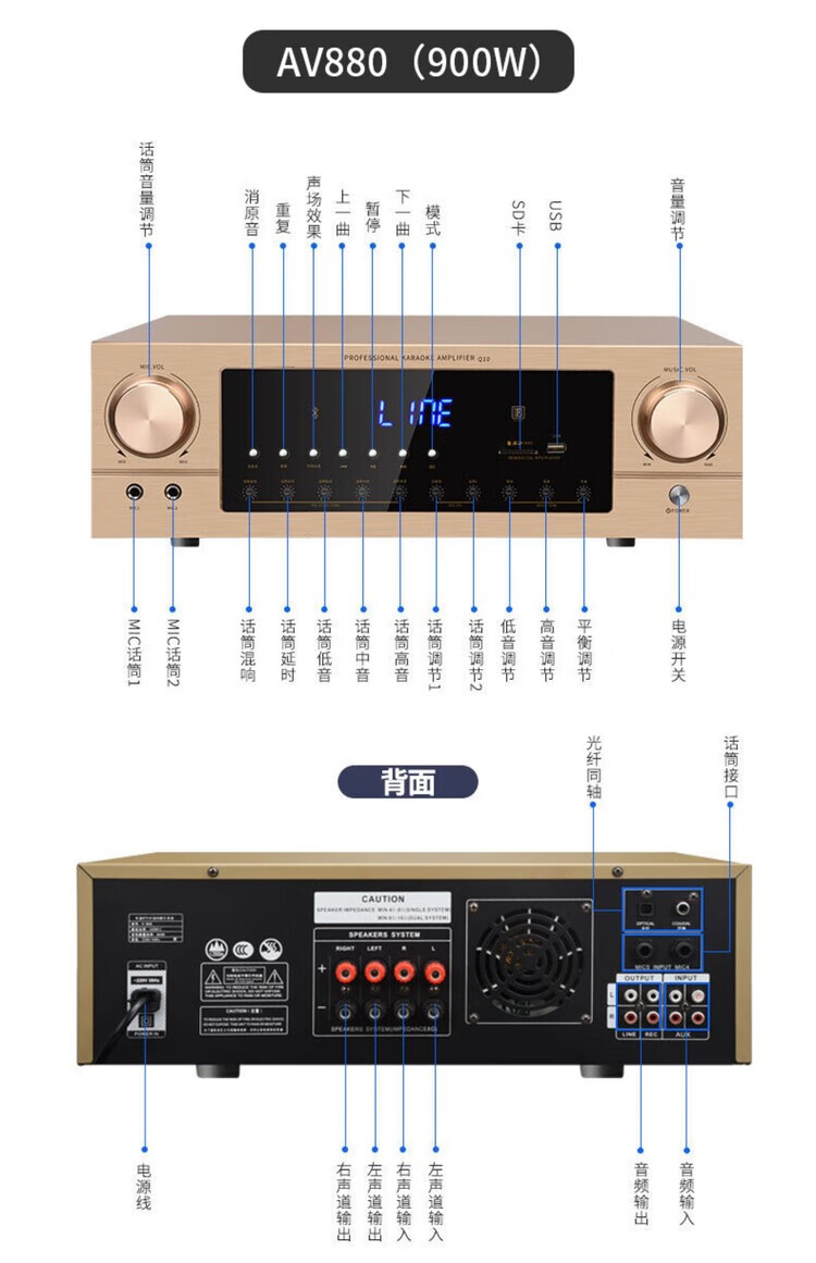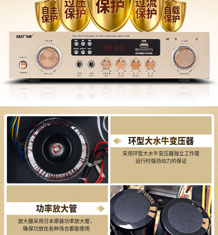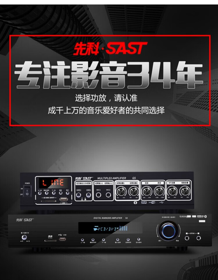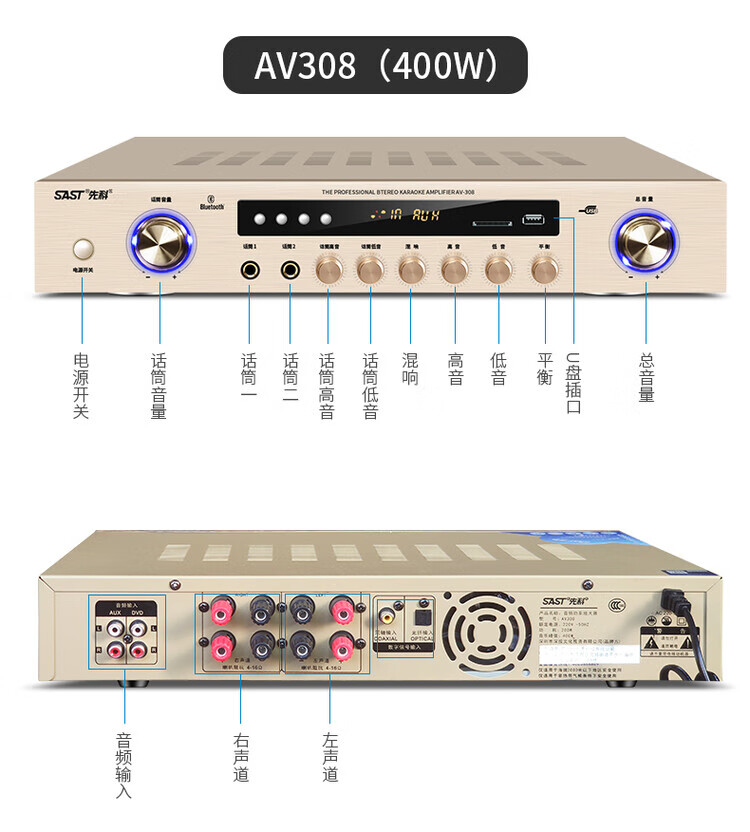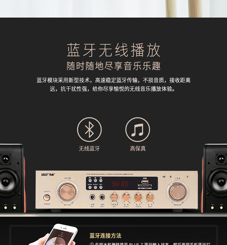 Xianke power amplifier home high-power professional speaker ceiling fixed resistance power amplifier Bluetooth air amplifier audio small power amplifier home audio and video theater surround stereo 5.1KTV digital fixed resistance 300W power amplifier