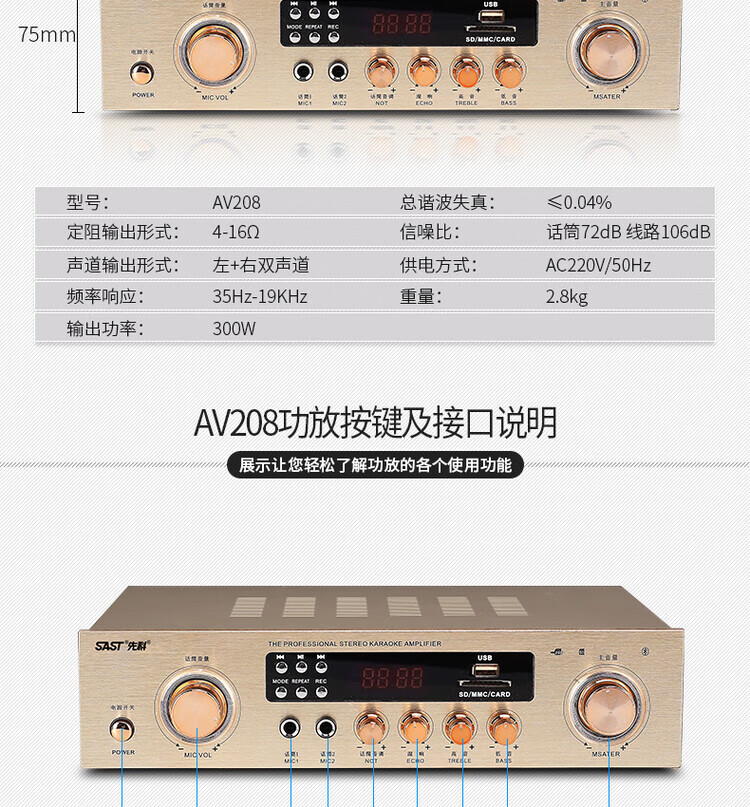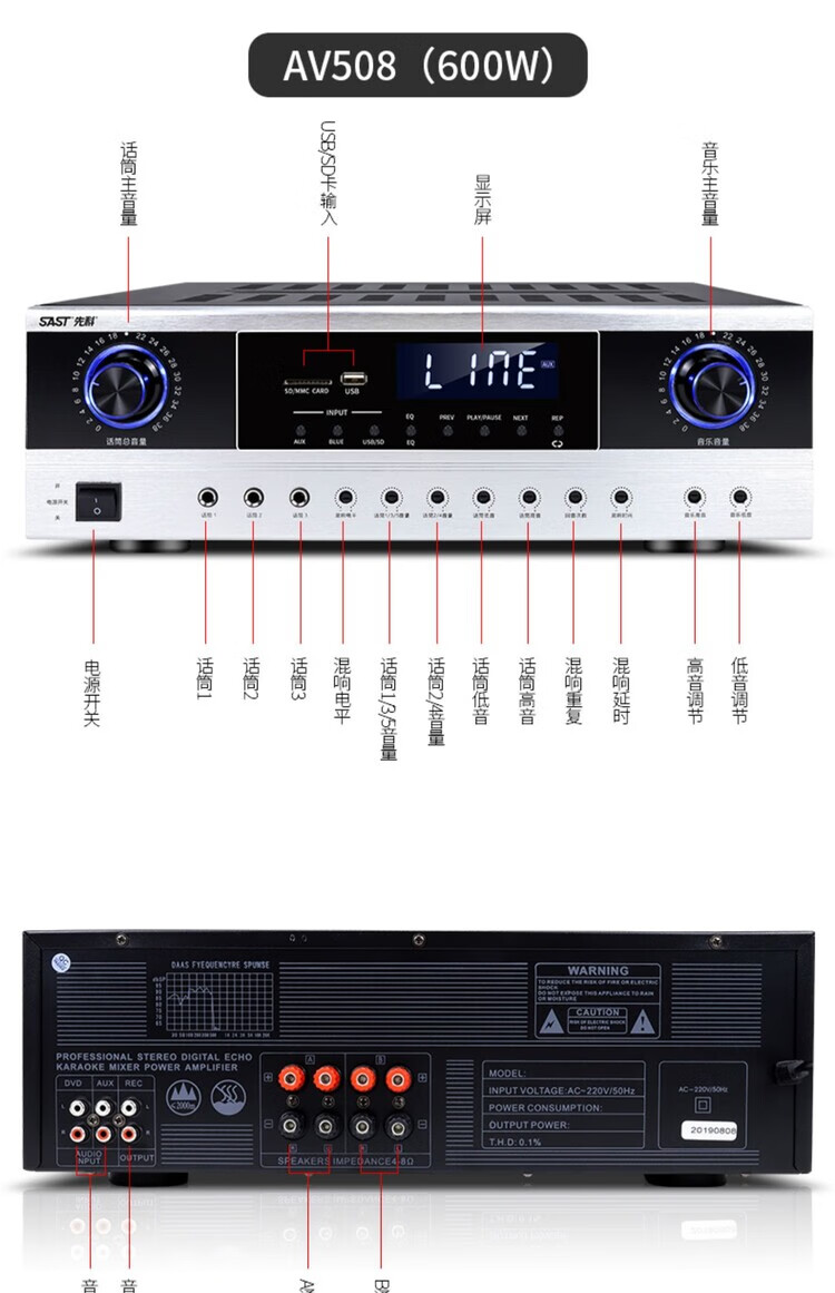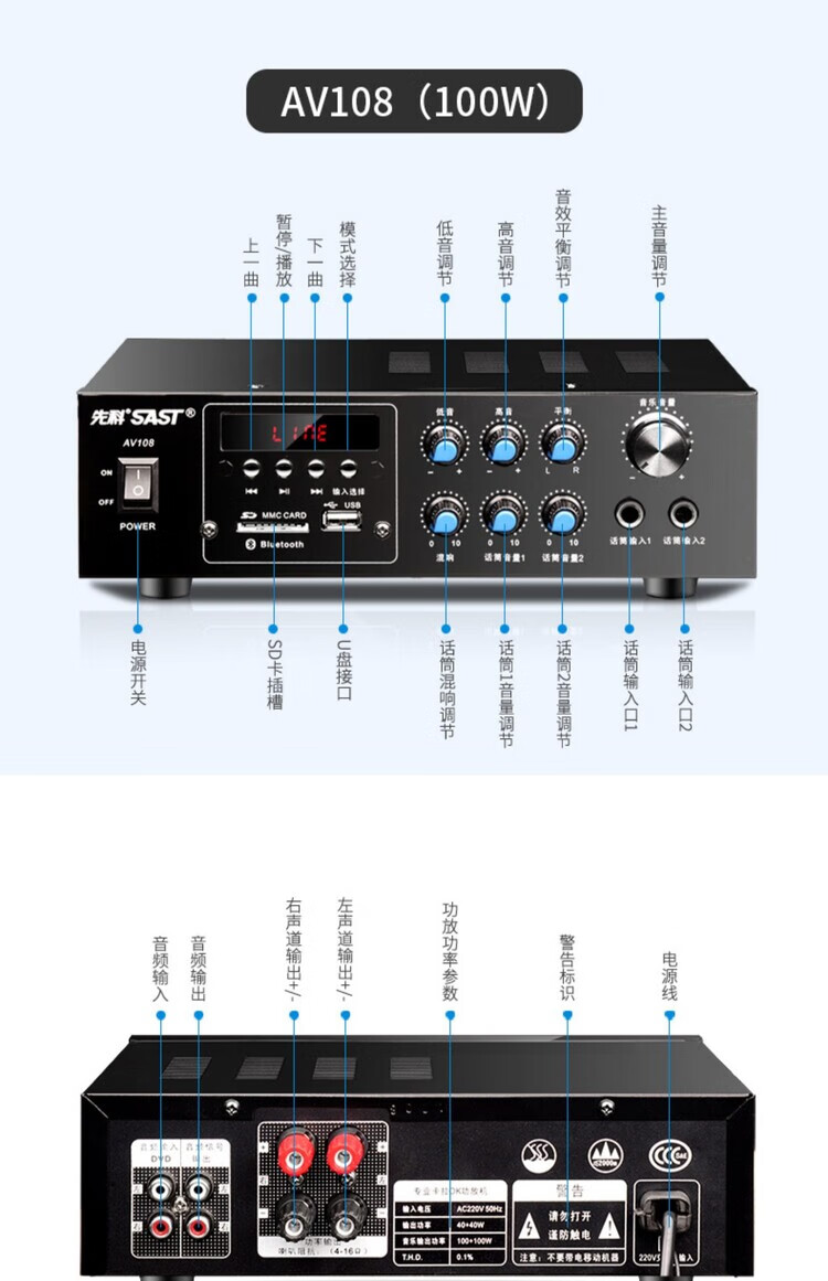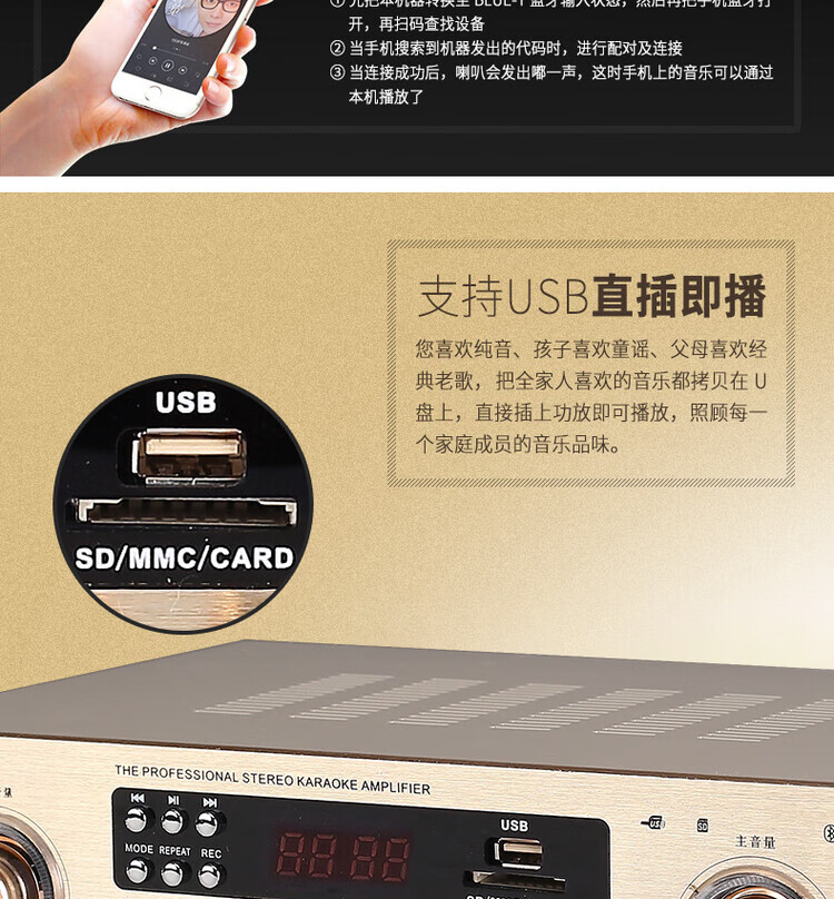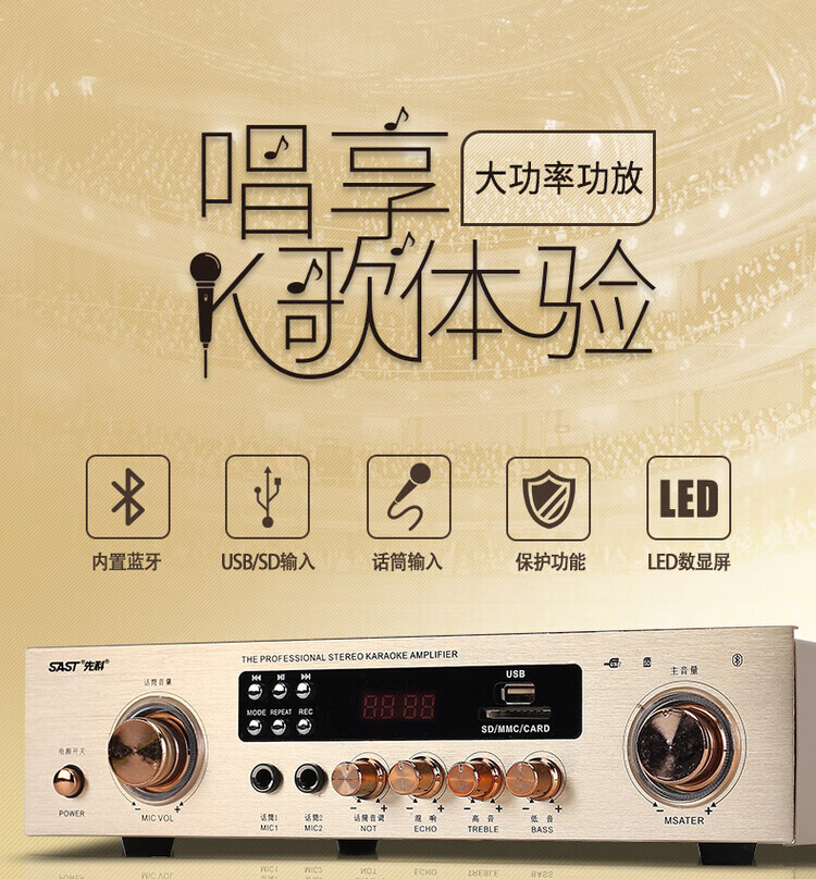 Xianke power amplifier home high-power professional speaker ceiling fixed resistance power amplifier Bluetooth air amplifier audio small power amplifier home audio and video theater surround stereo 5.1KTV digital fixed resistance 300W power amplifier