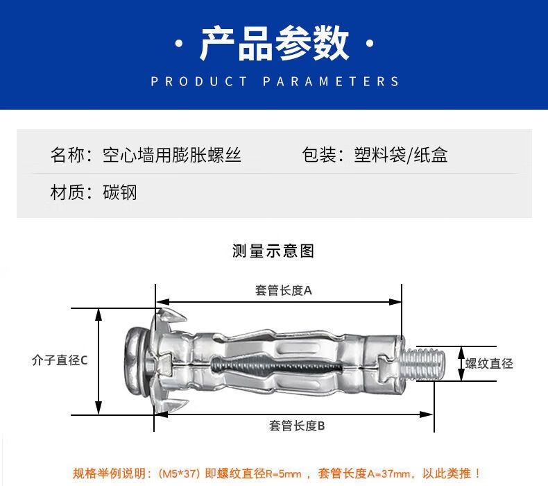 FANCYCHIC aircraft gypsum board expansion screw hollow brick special expansion bolt hollow wall expansion screw hollow gecko tube M6*52 20 pcs