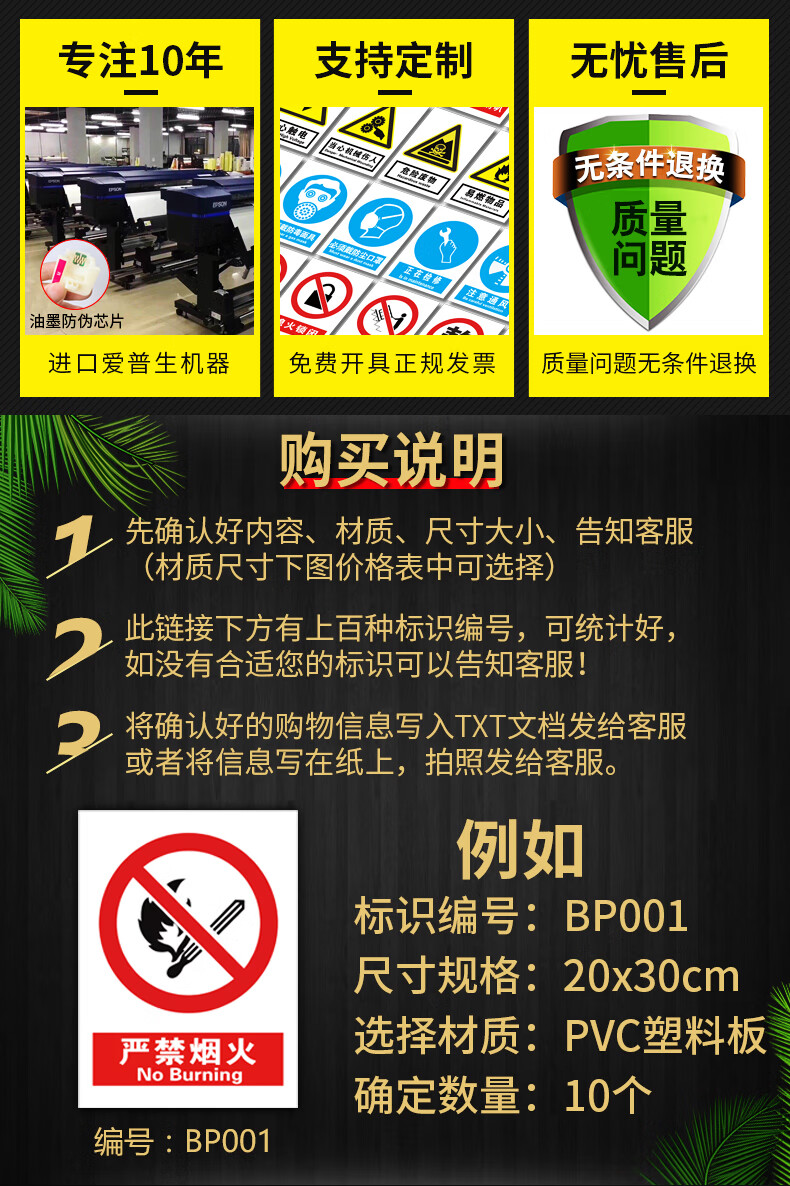 Jiu Wenbao Fire Safety Warning Sign Customized No Fireworks Warning Sign Sticker Construction Site Workshop Safety Production Sign High Quality PVC Material 30x40cm
