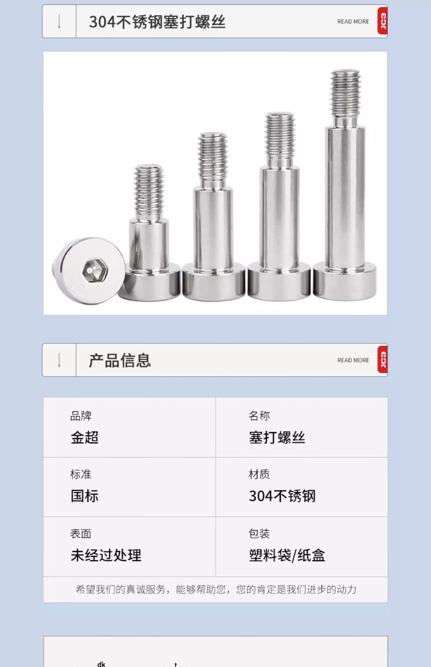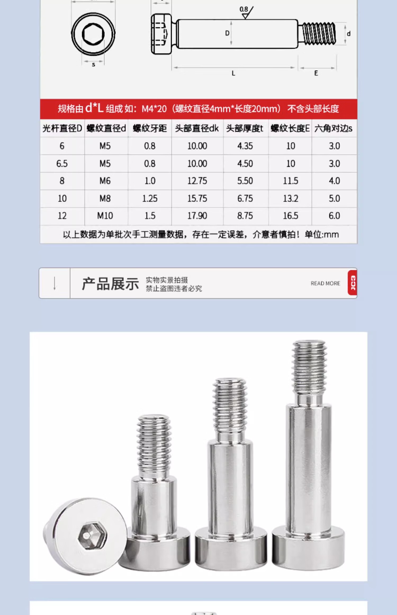 Jinchao 304 stainless steel hexagon socket plug screw shoulder shoulder equal height limit step bolt M34M6M8 6*8*M5 (5 pieces)