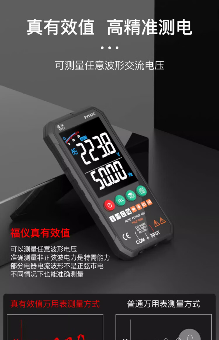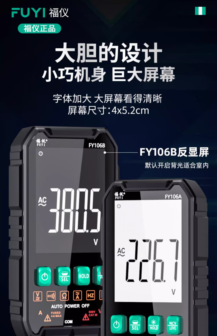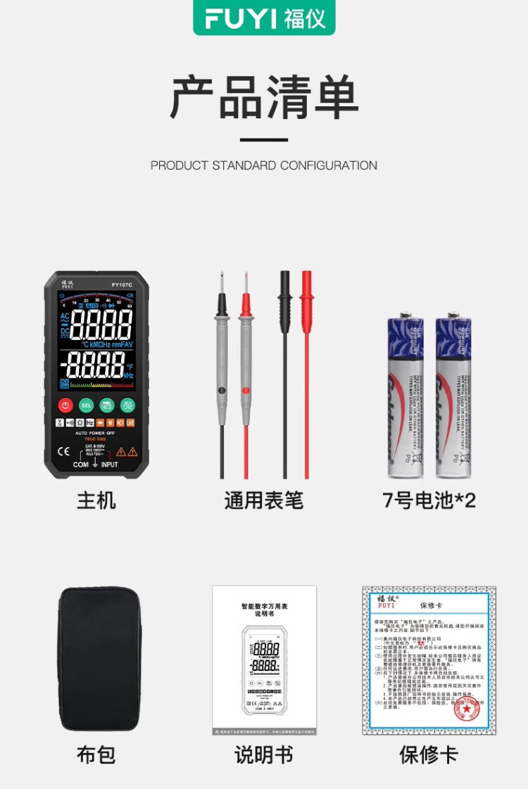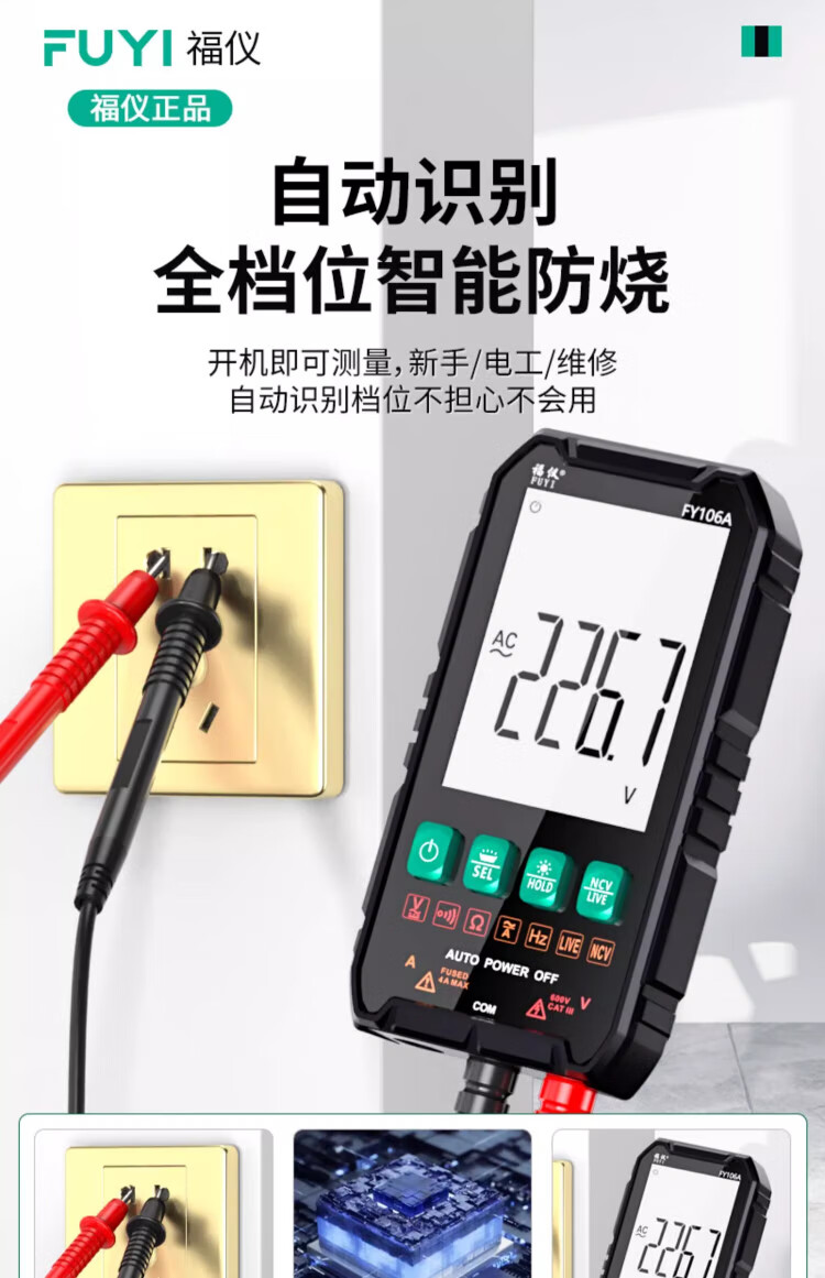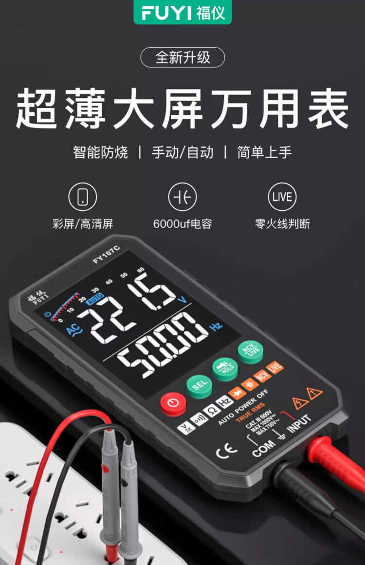 Fuyi high-precision multimeter smart ultra-thin digital large screen portable card fully automatic shift-free multimeter FY128C automatic color screen anti-burn zero live wire
