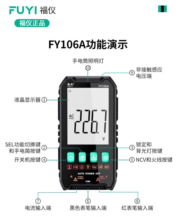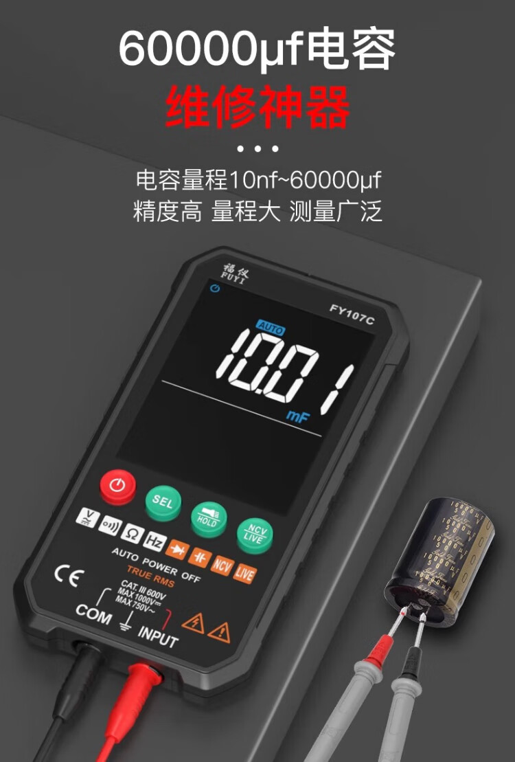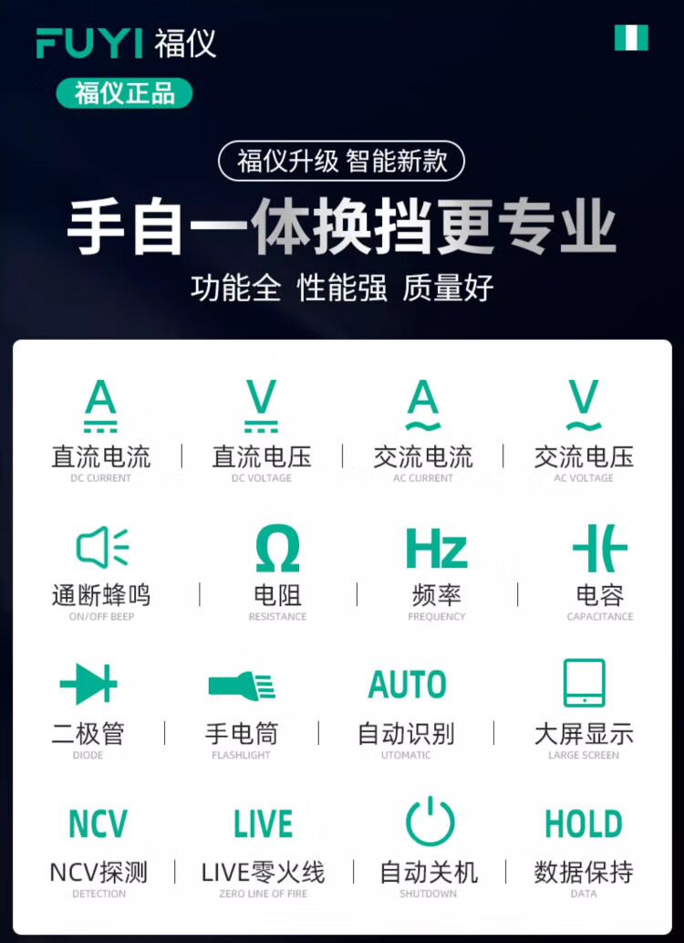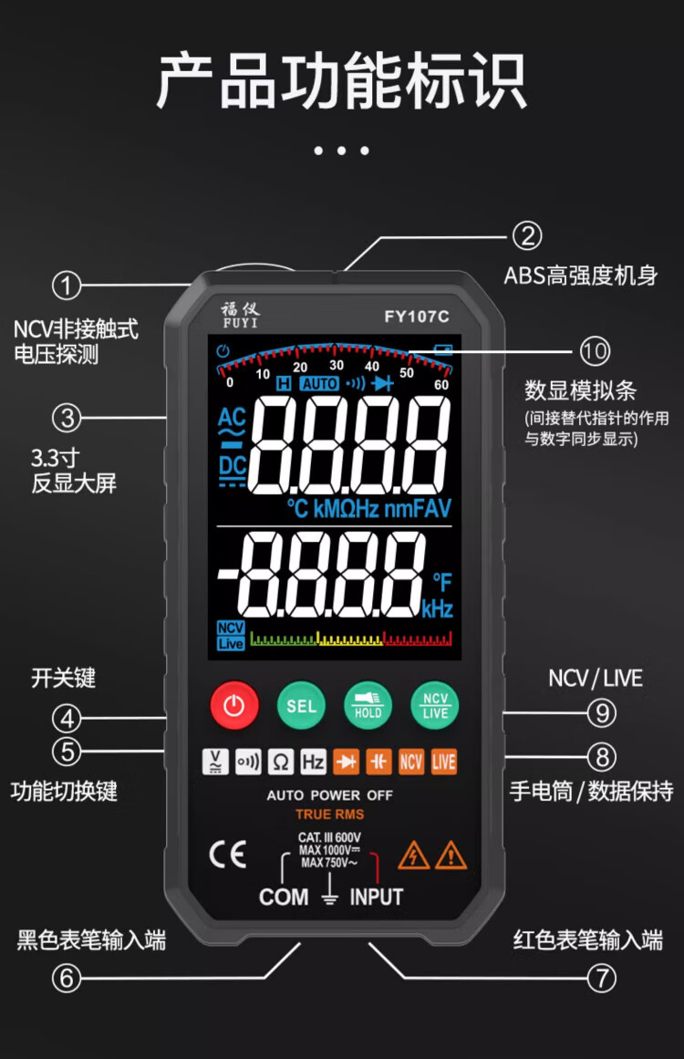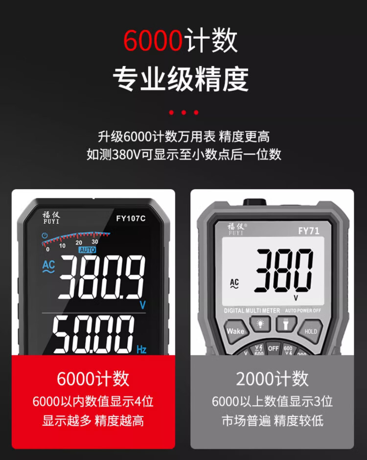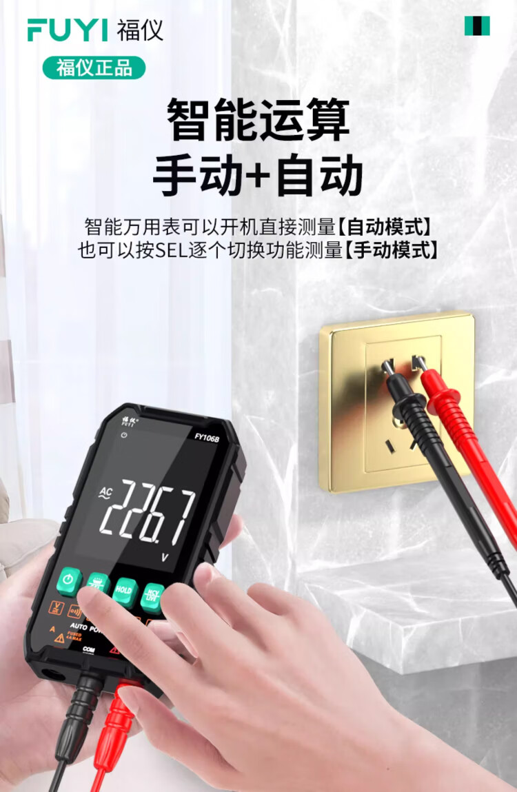 Fuyi high-precision multimeter smart ultra-thin digital large screen portable card fully automatic shift-free multimeter FY128C automatic color screen anti-burn zero live wire