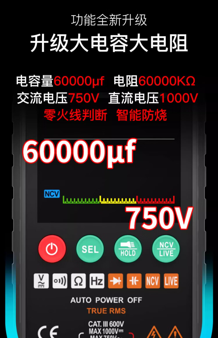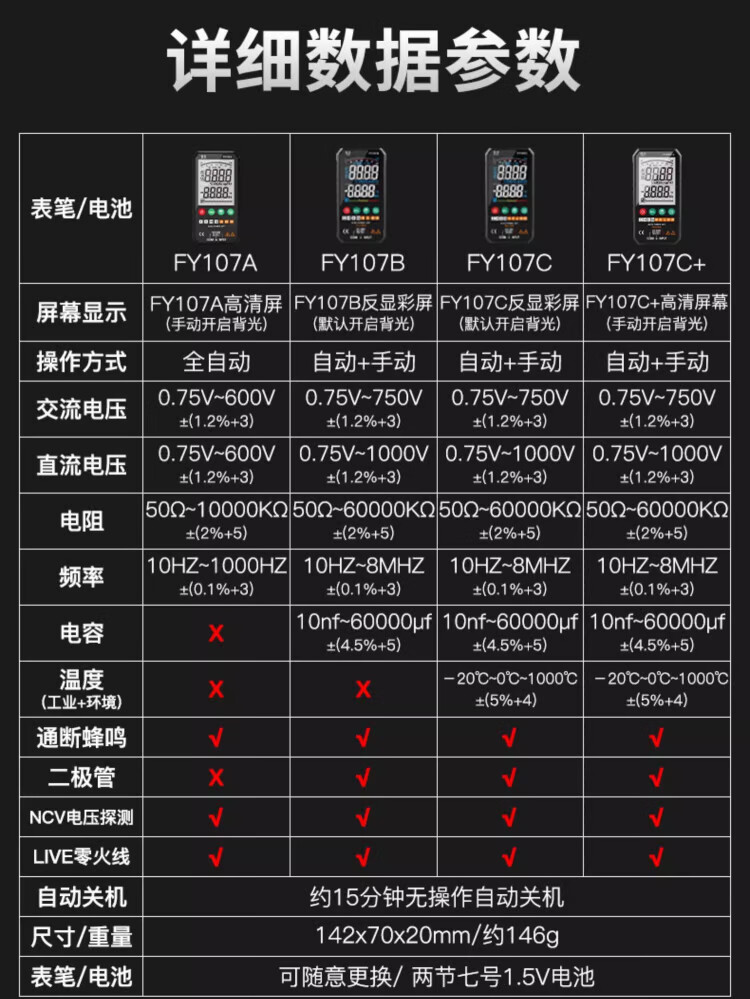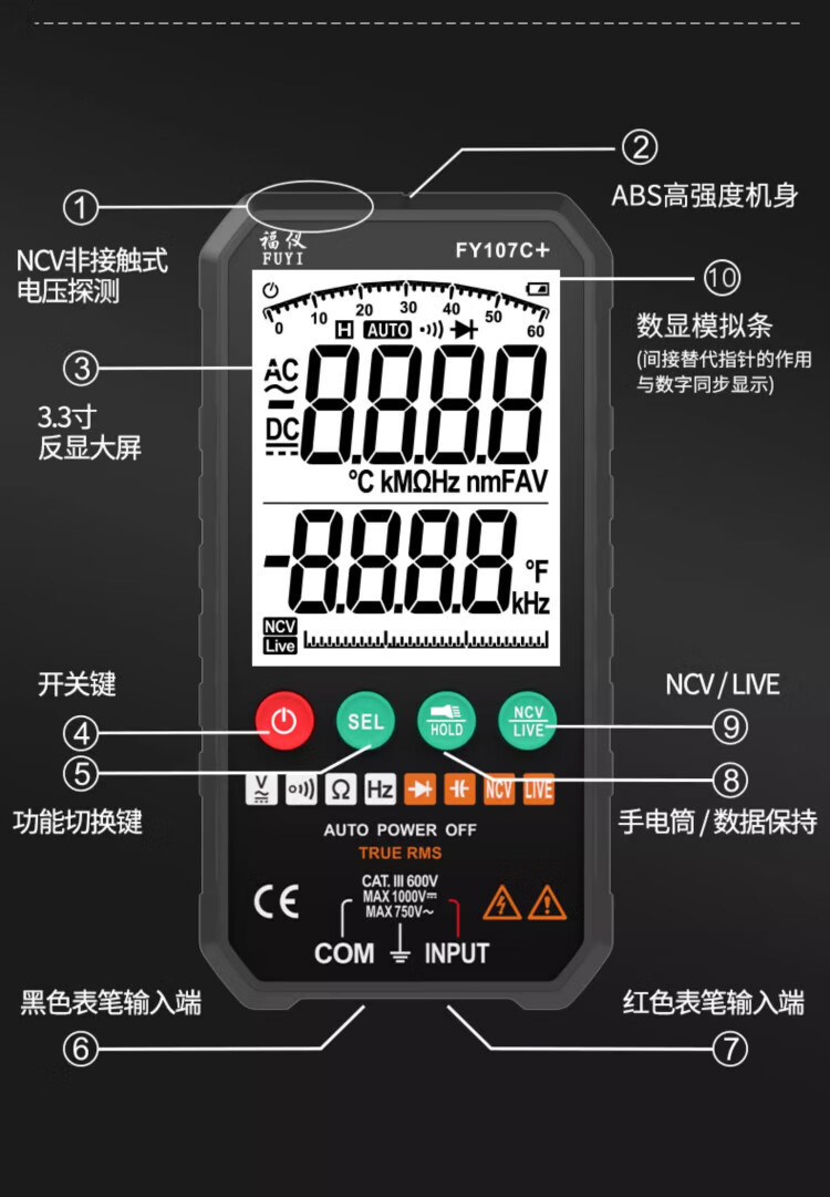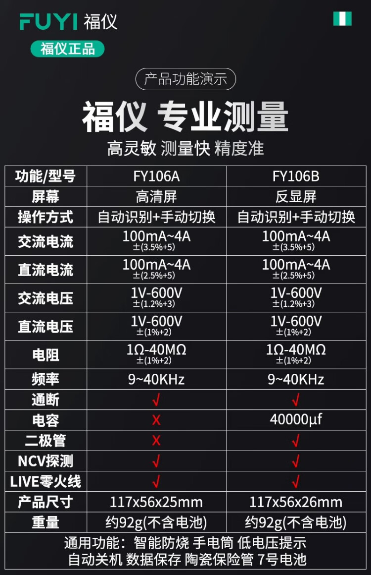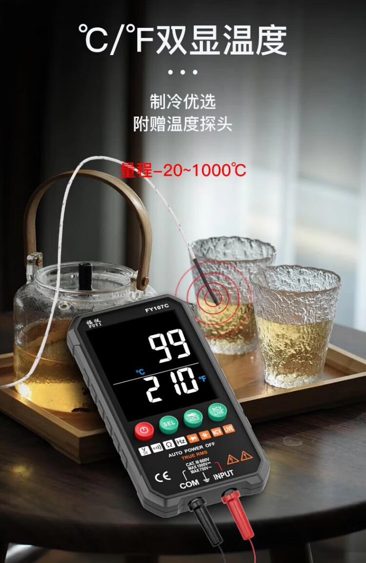 Fuyi high-precision multimeter smart ultra-thin digital large screen portable card fully automatic shift-free multimeter FY128C automatic color screen anti-burn zero live wire