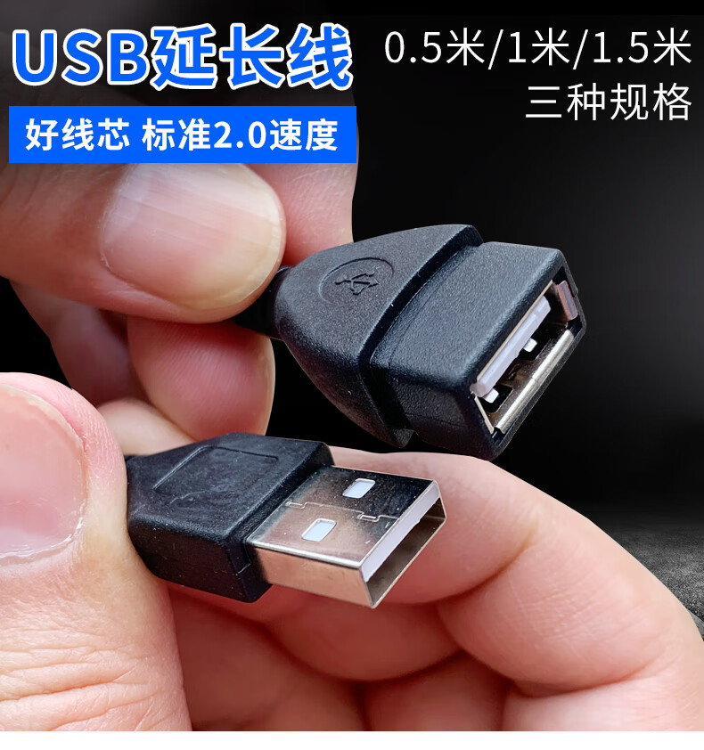 USB 2.0 male to female data extension cable, pure copper core, bare wire, no packaging, no degaussing ring, 1 pack, 0.5m