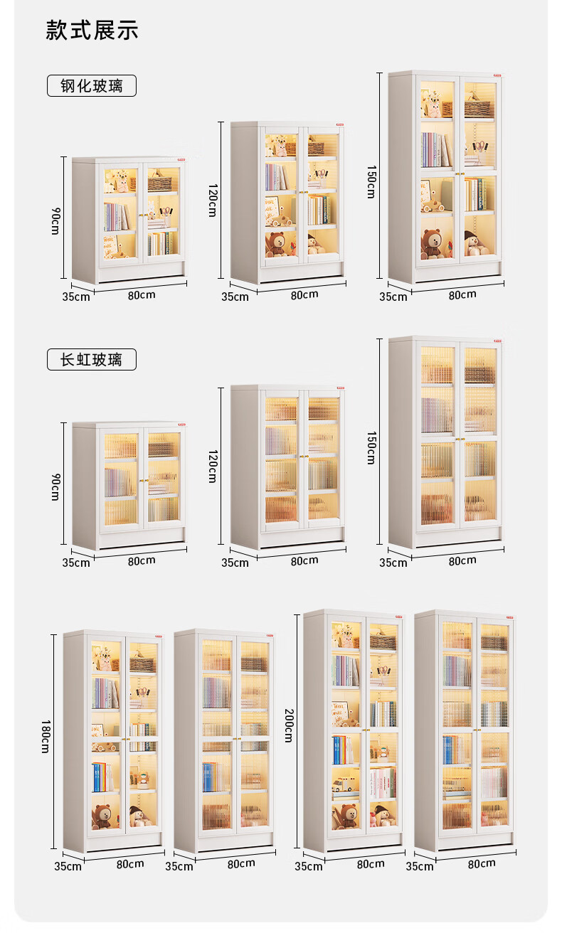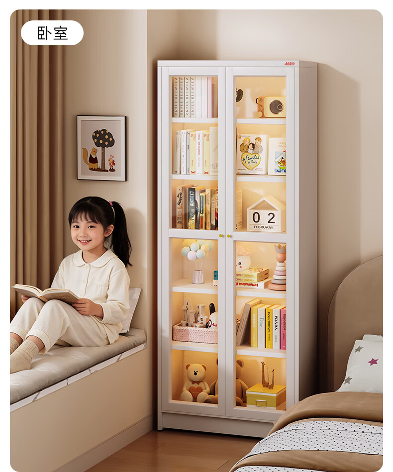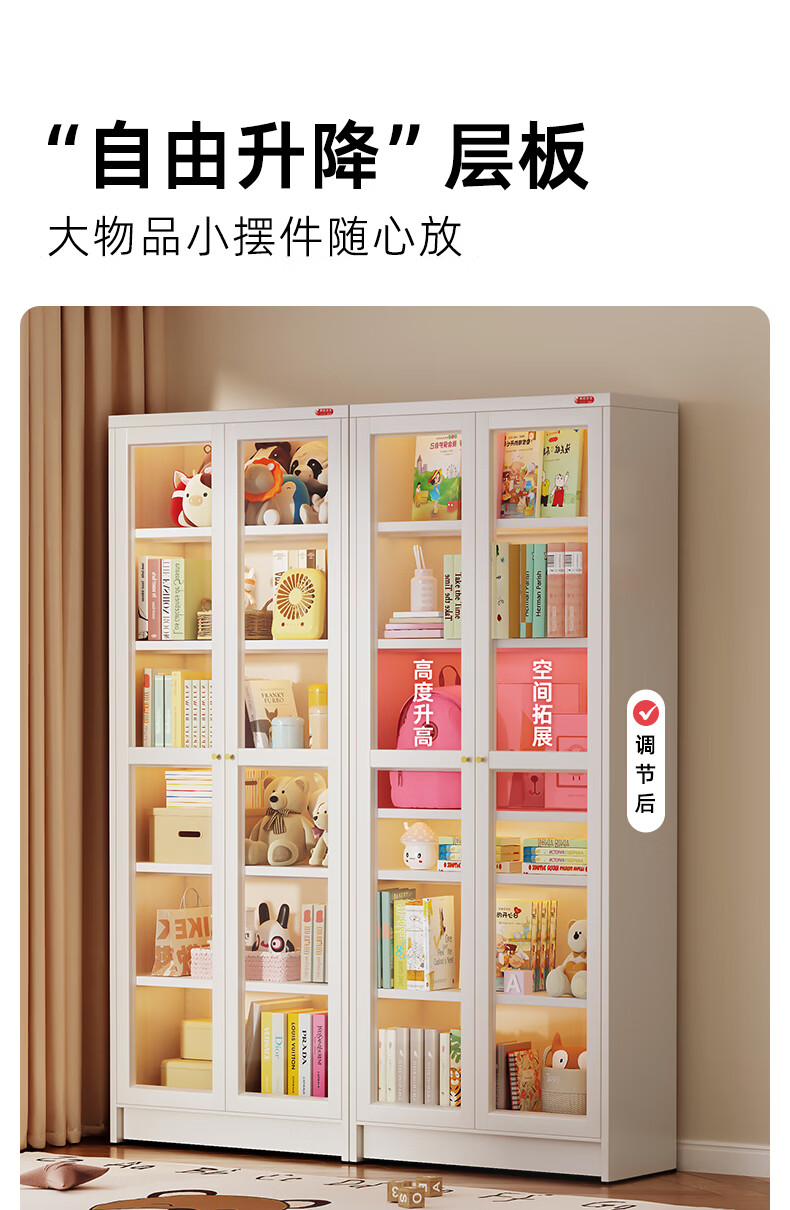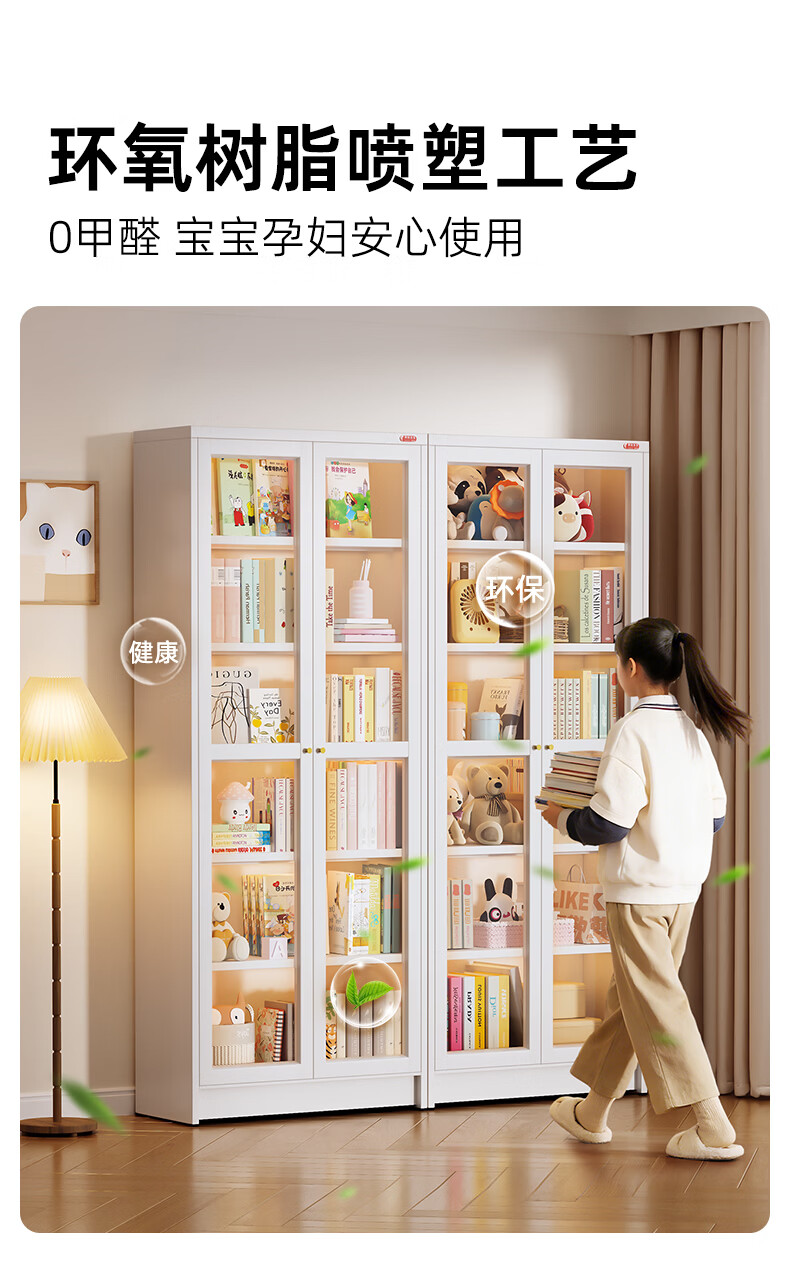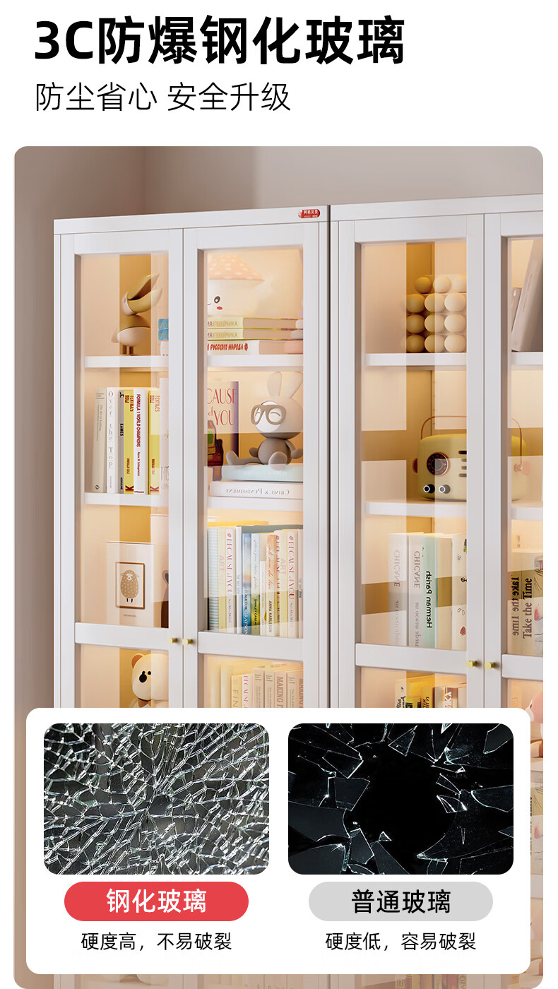 Agbebe steel bookcase with glass door dust-proof bookcase floor-standing integrated home library bookshelf storage storage cabinet tempered glass model six layers 2 meters high and 0.8 meters wide