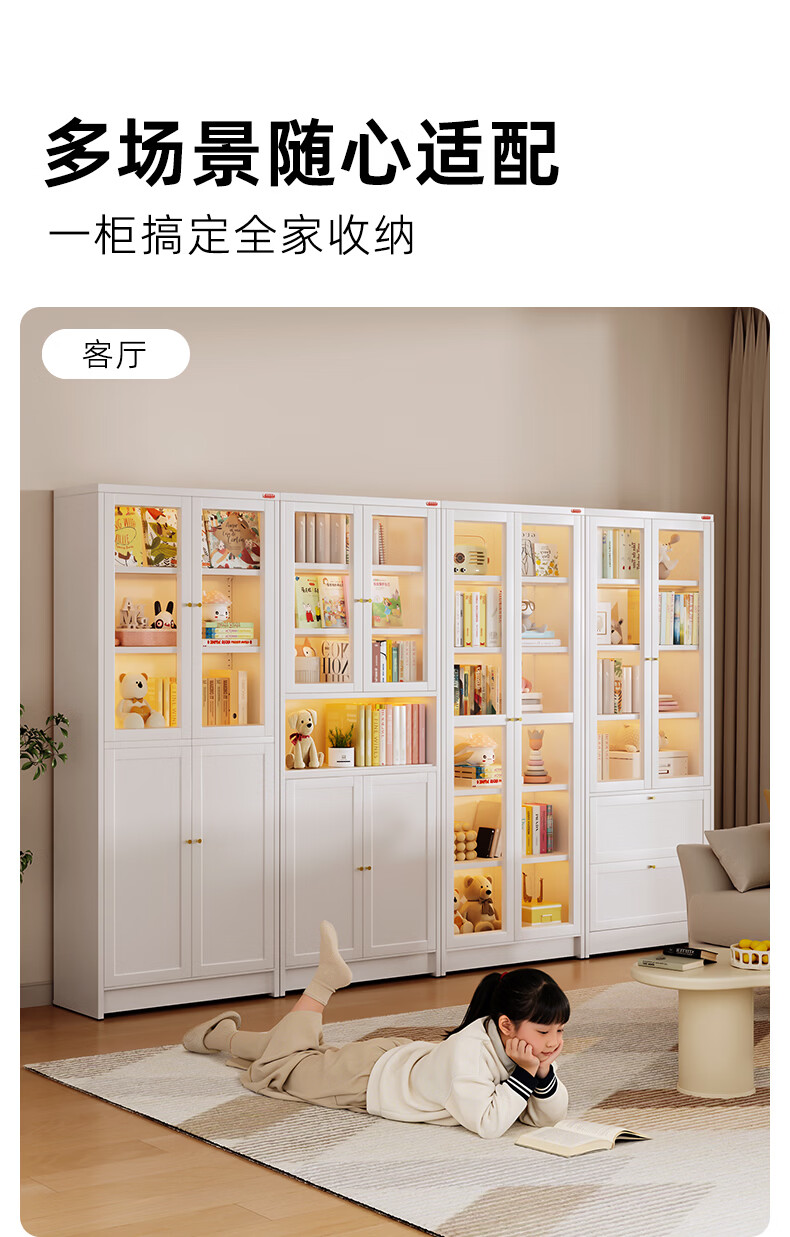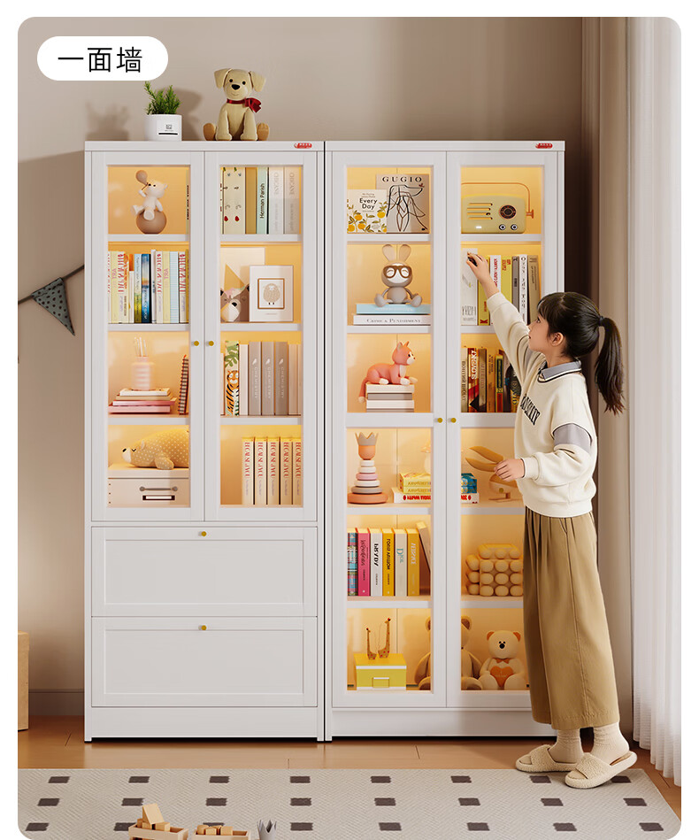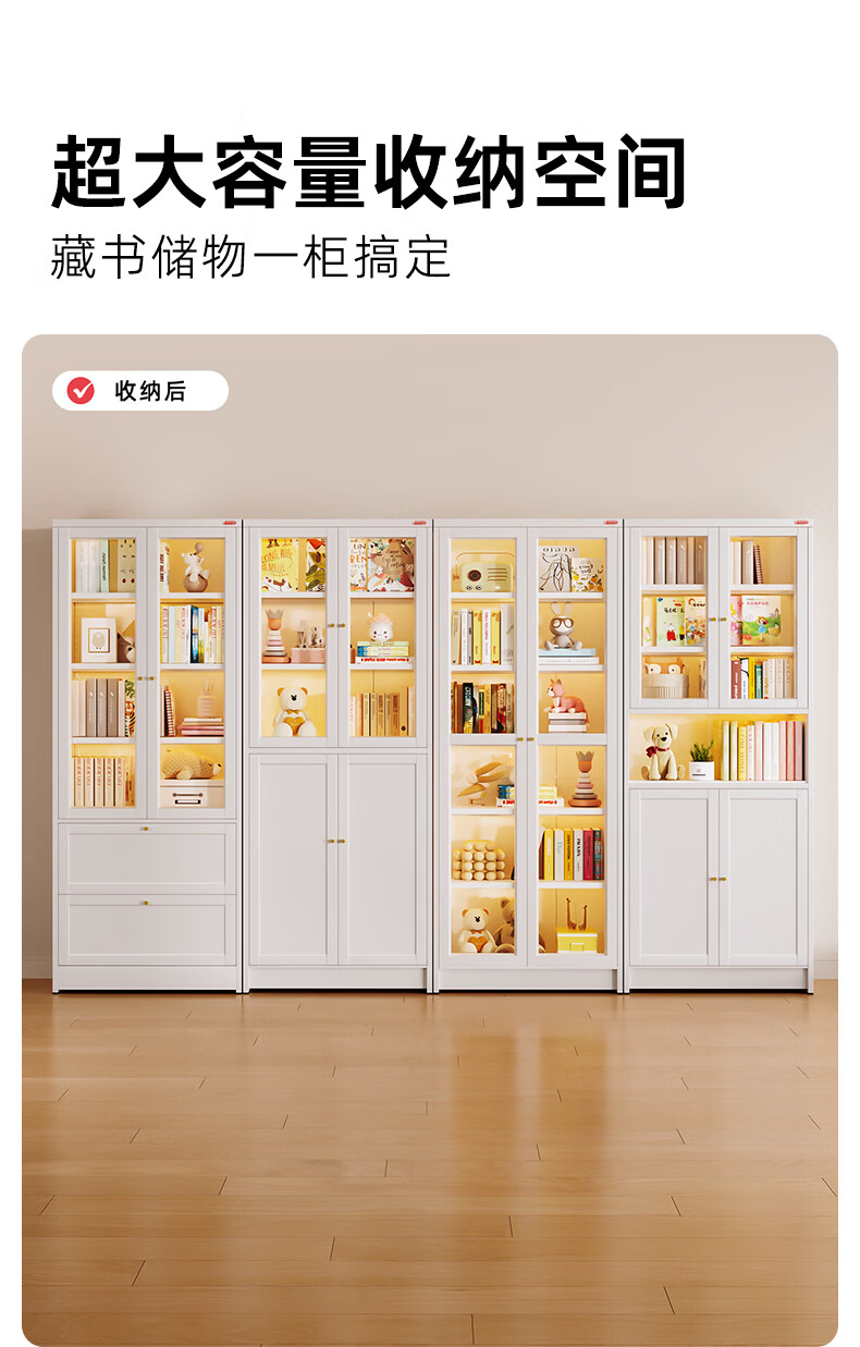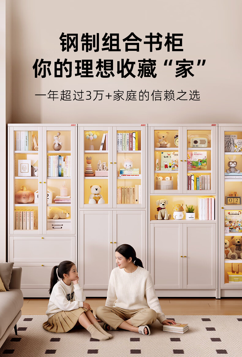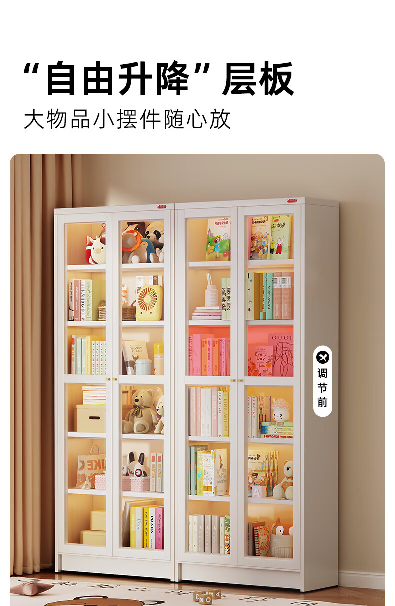 Agbebe steel bookcase with glass door dust-proof bookcase floor-standing integrated home library bookshelf storage storage cabinet tempered glass model six layers 2 meters high and 0.8 meters wide