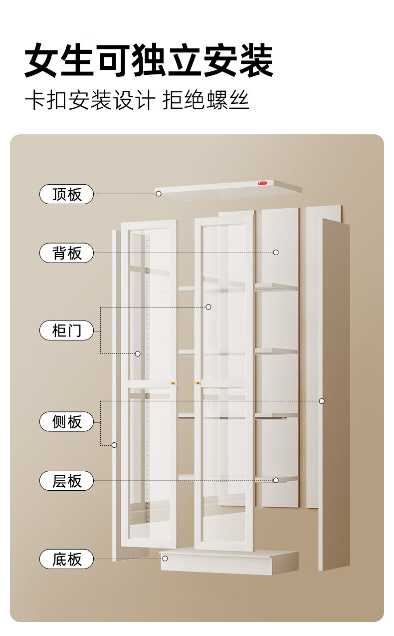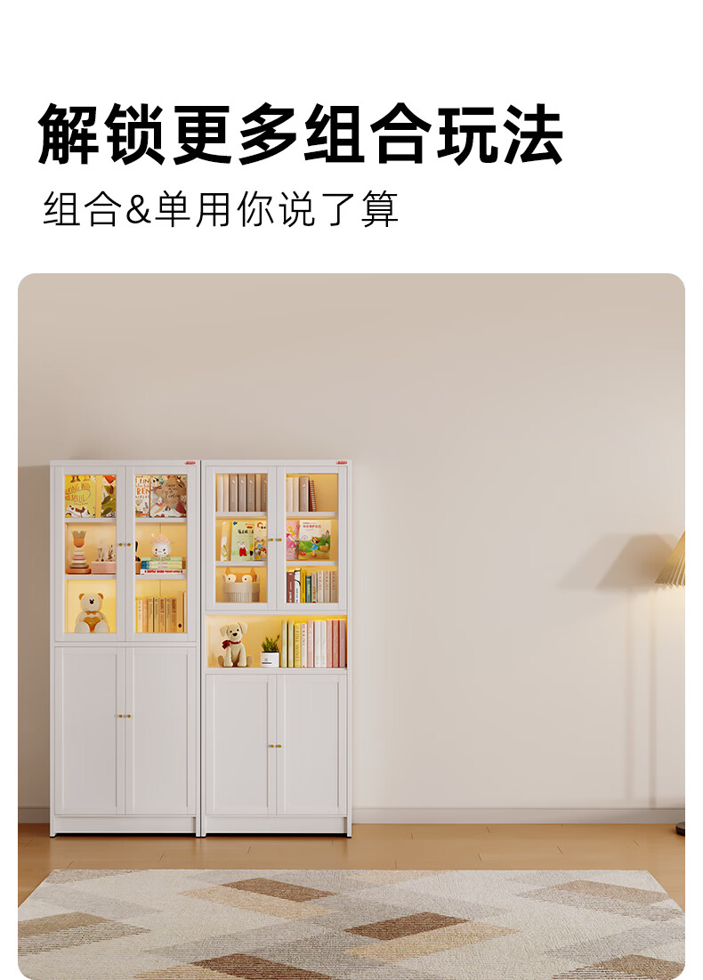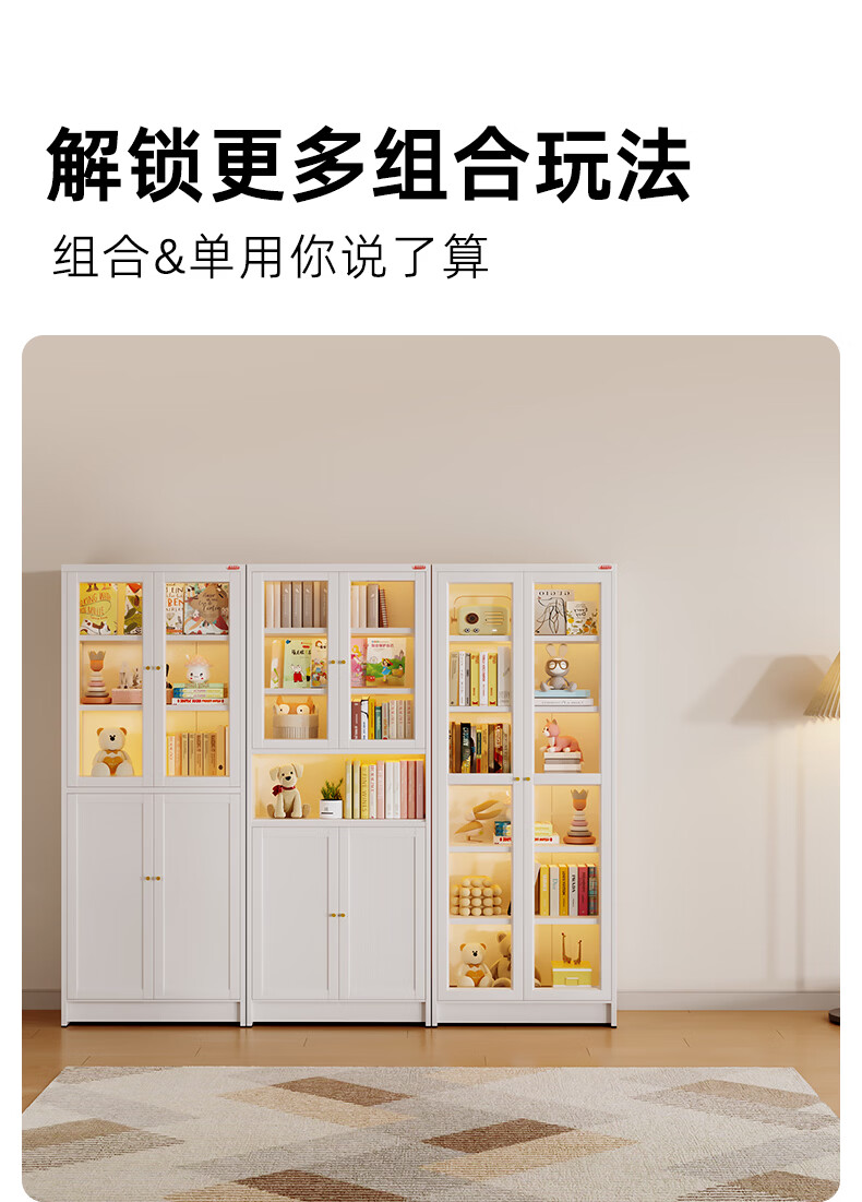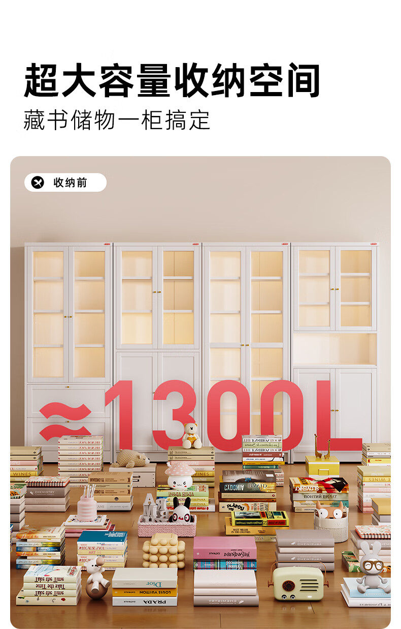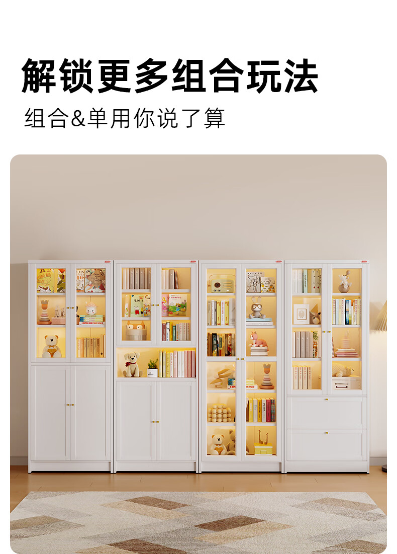 Agbebe steel bookcase with glass door dust-proof bookcase floor-standing integrated home library bookshelf storage storage cabinet tempered glass model six layers 2 meters high and 0.8 meters wide