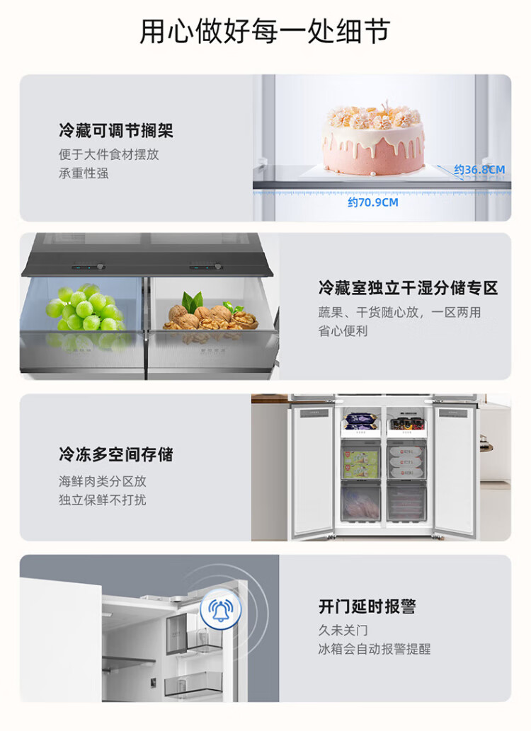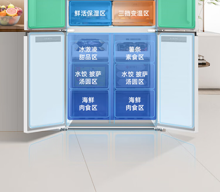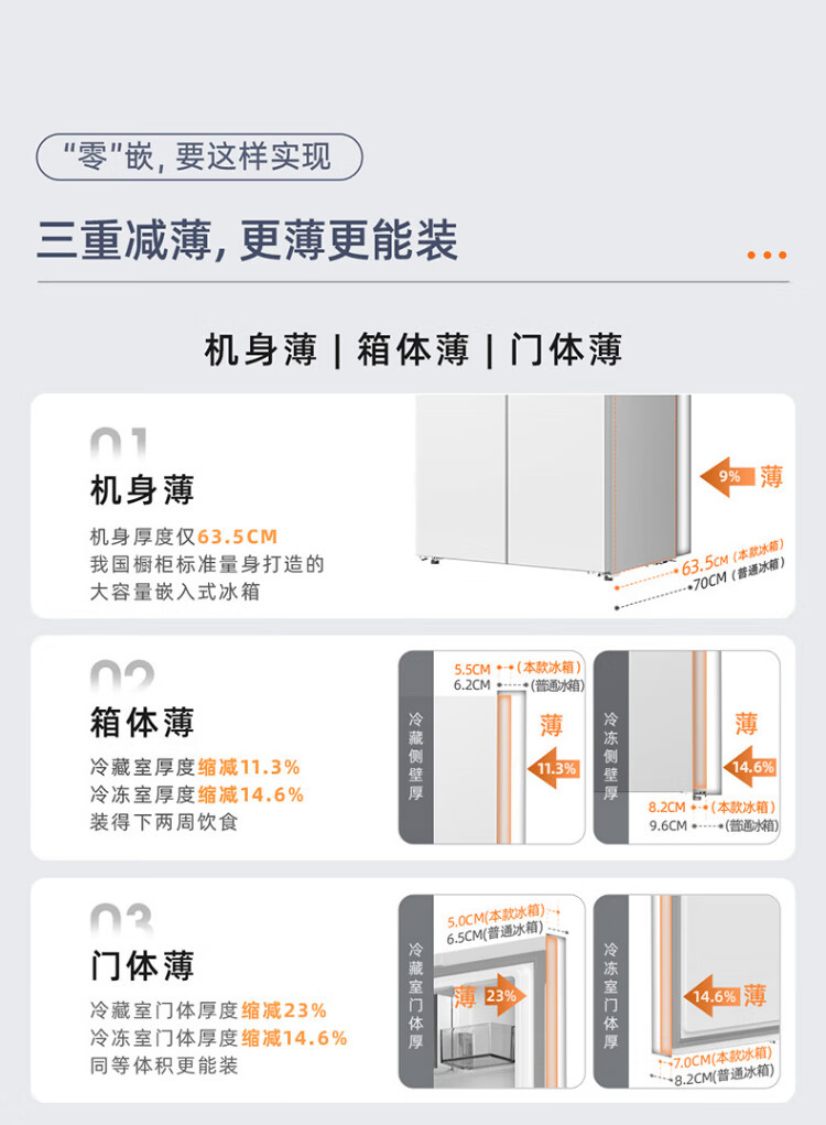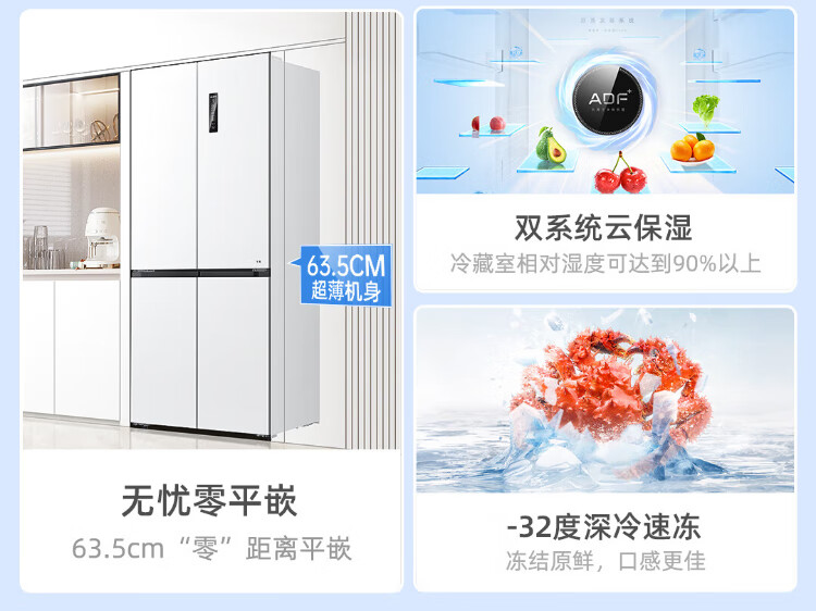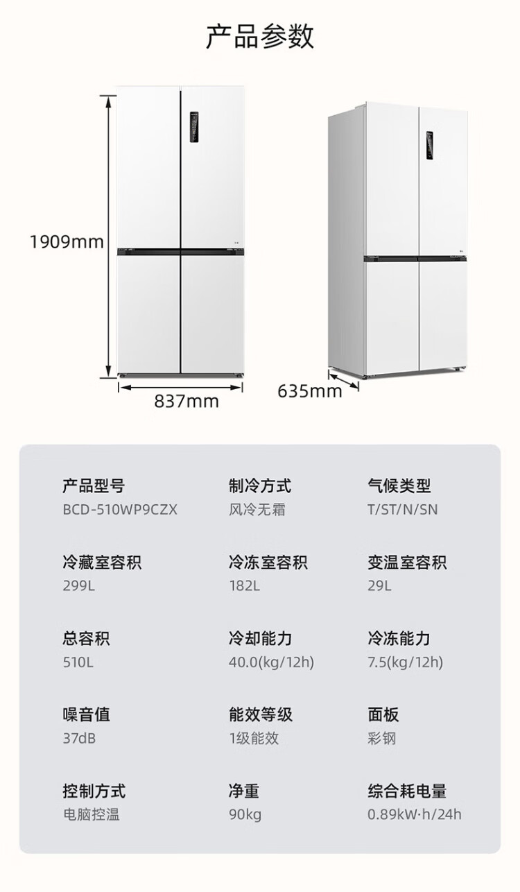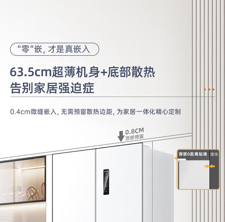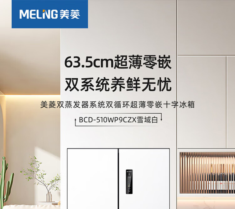 MeiLing worry-free embedded | 510-liter cross-door four-door multi-door household ultra-thin embedded large-capacity refrigerator first-class energy efficiency energy-saving dual system air-cooled frost-free subsidy refrigerator Wuyou embedded BCD-510WP9CZX mysterious gray