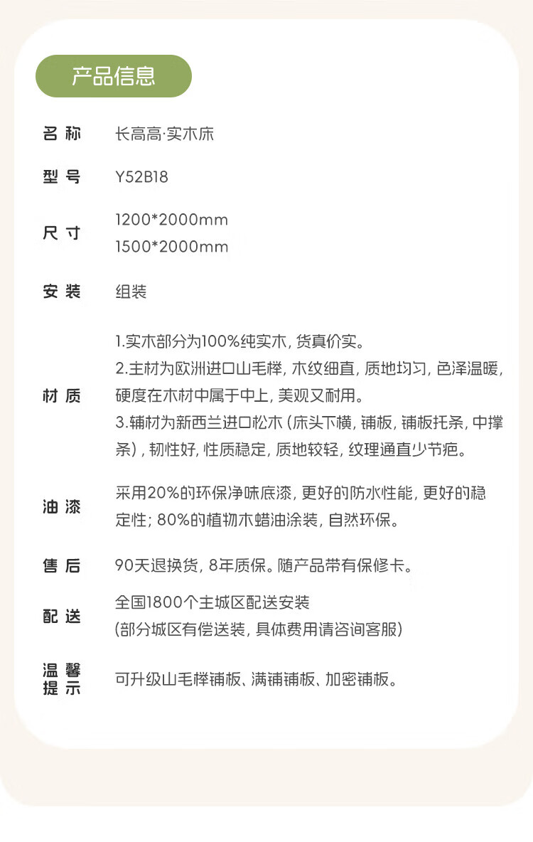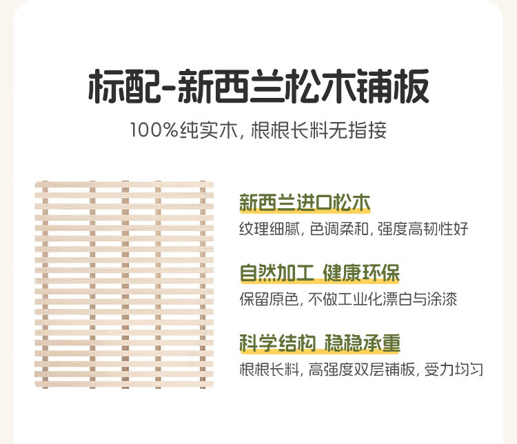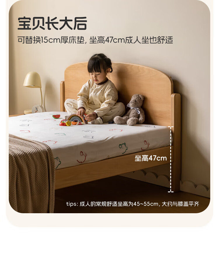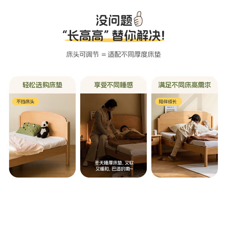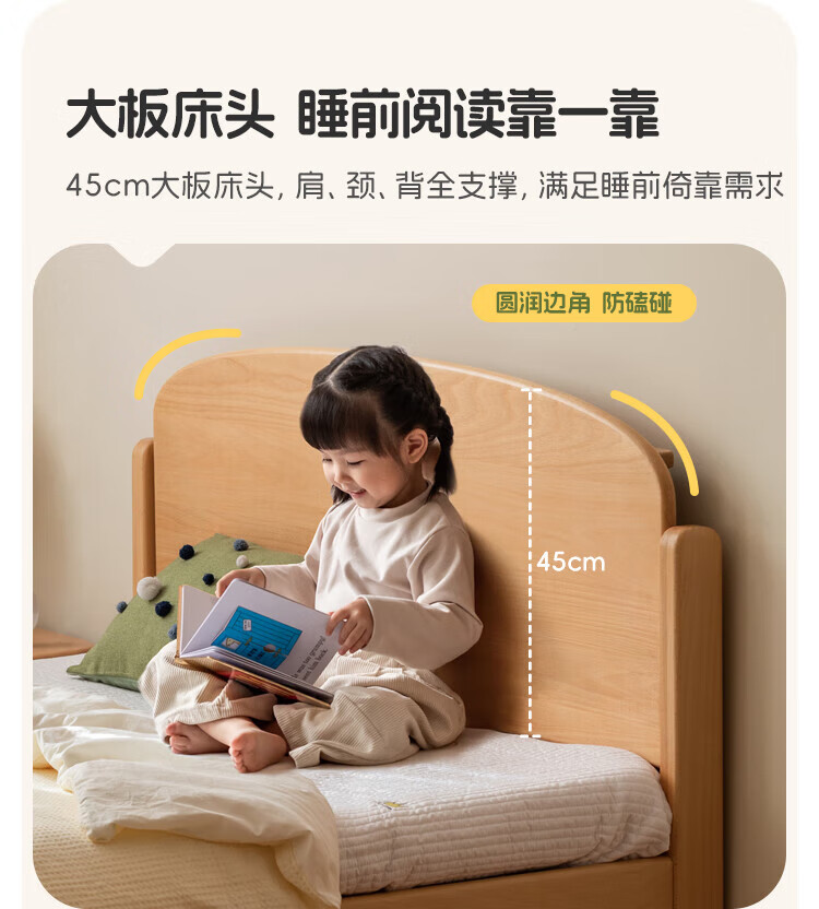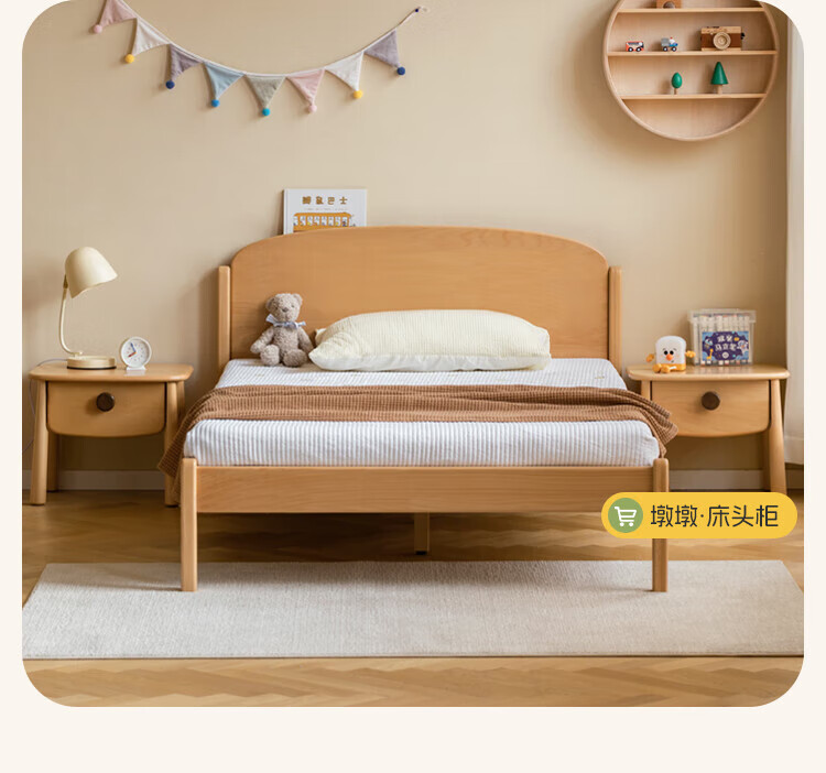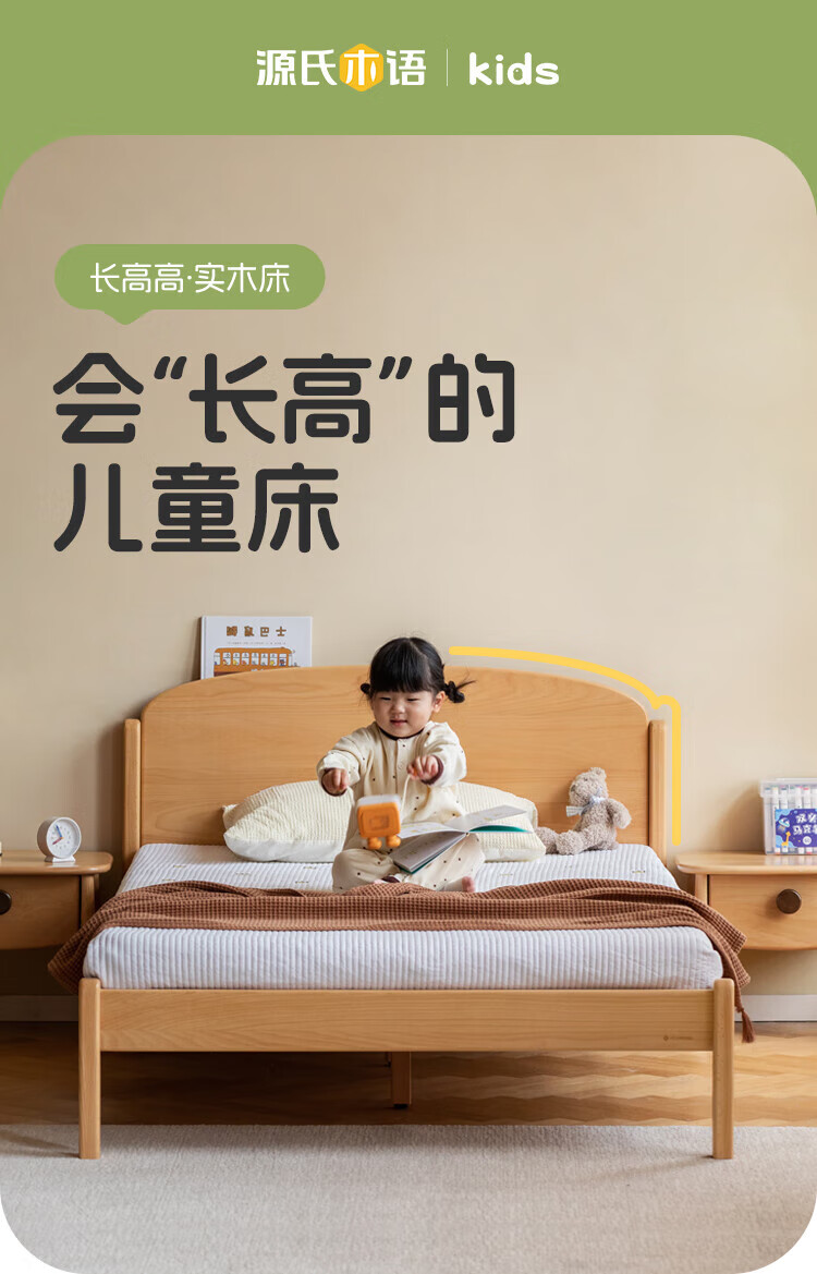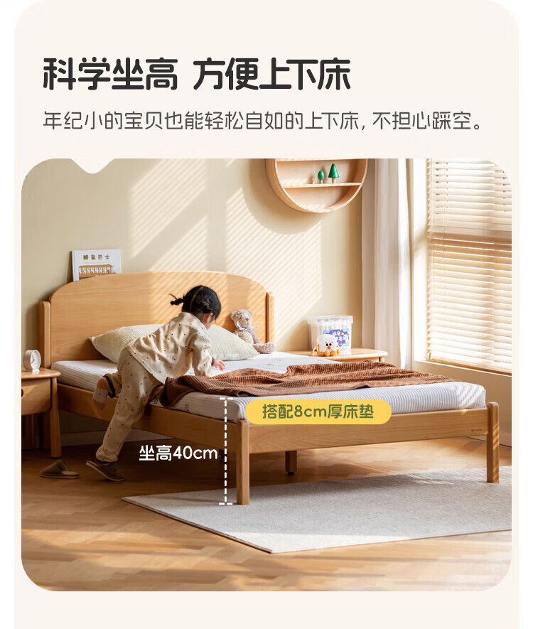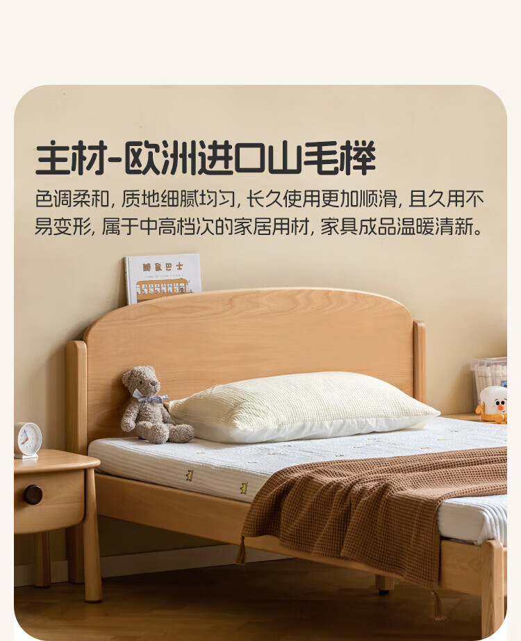 Genji Muyu Children's Furniture Children's Bed Simple Solid Wood Bed Boys and Girls Bedroom Single Bed 1.2 Meter Teenager Small Household Small Bed Children's Bed + Mattress (15cm thick J120) 1500mm*2000mm