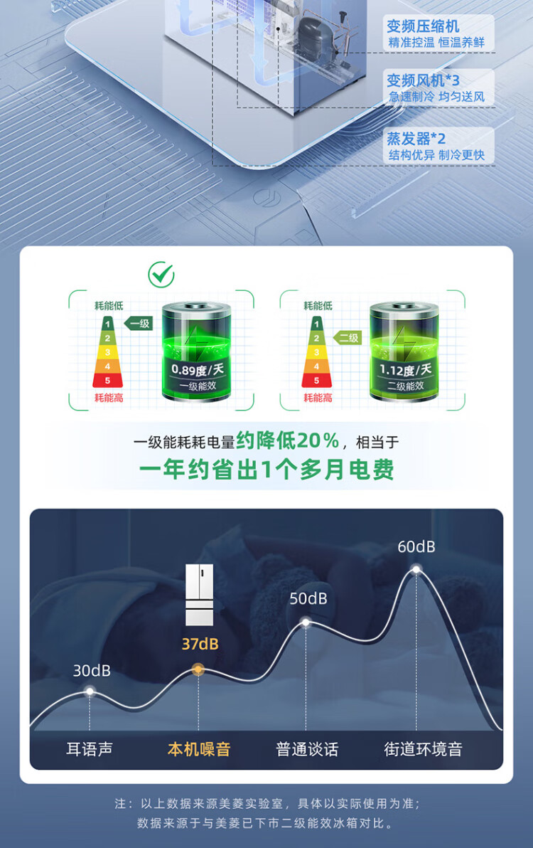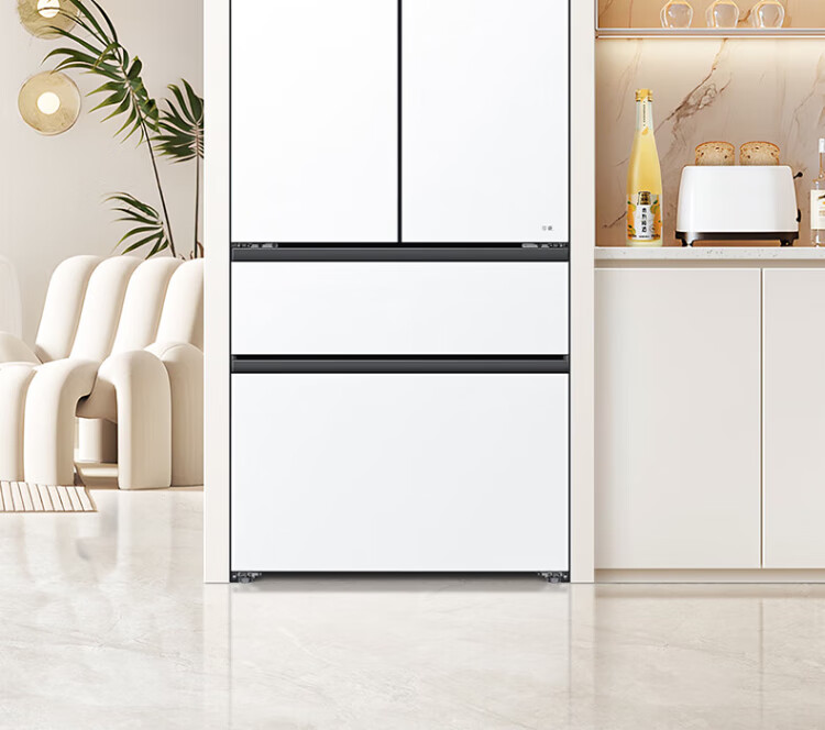 MeiLing worry-free inlay 511 French four-door double-open household large-capacity ultra-thin zero-inlay dual system fully clean first-class energy-saving low-noise air-cooled frost-free bottom cooling refrigerator national subsidy Wuyou inlay BCD-511WP9CZX Snowy White