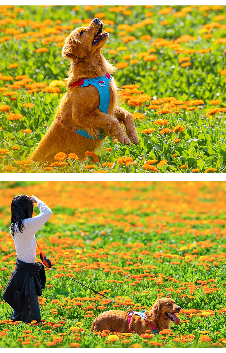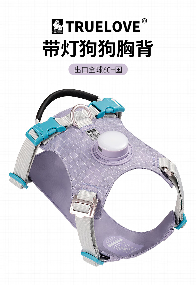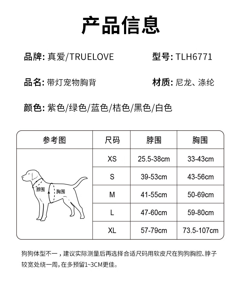 TRUELOVE Dog Leash Harness LED Night Light Outdoor Pet Vest Type Puppy Medium and Large Dog Walking Rope Chain Orange L-Chest 69-81cm (excluding leash)