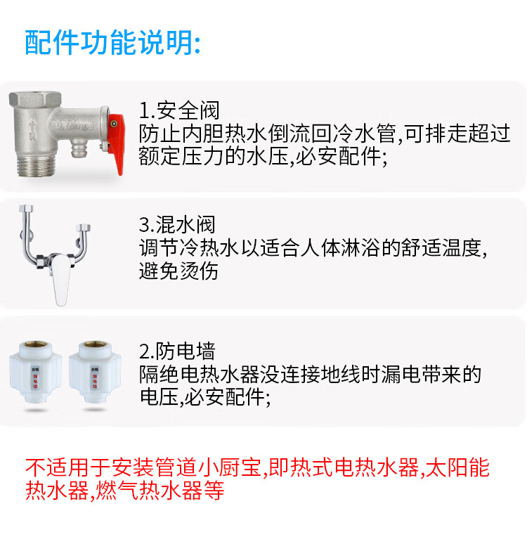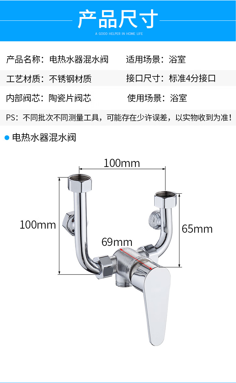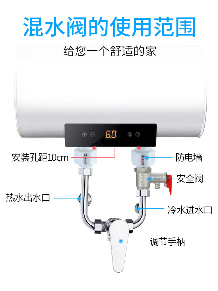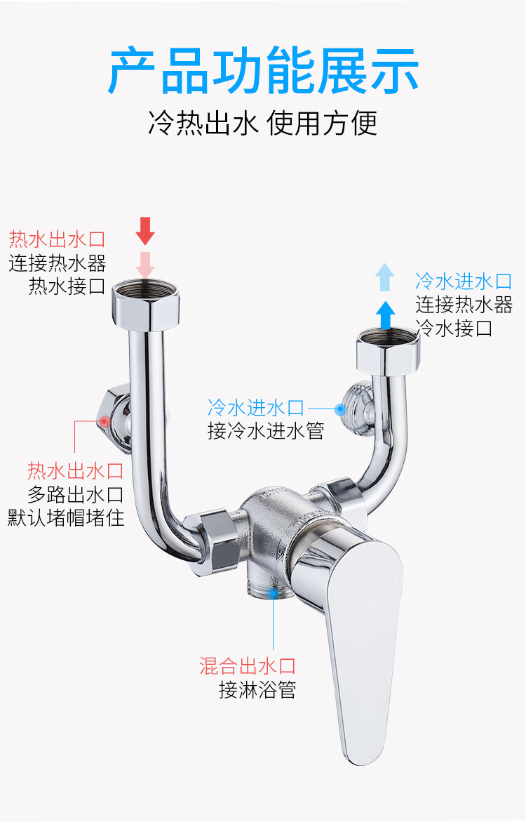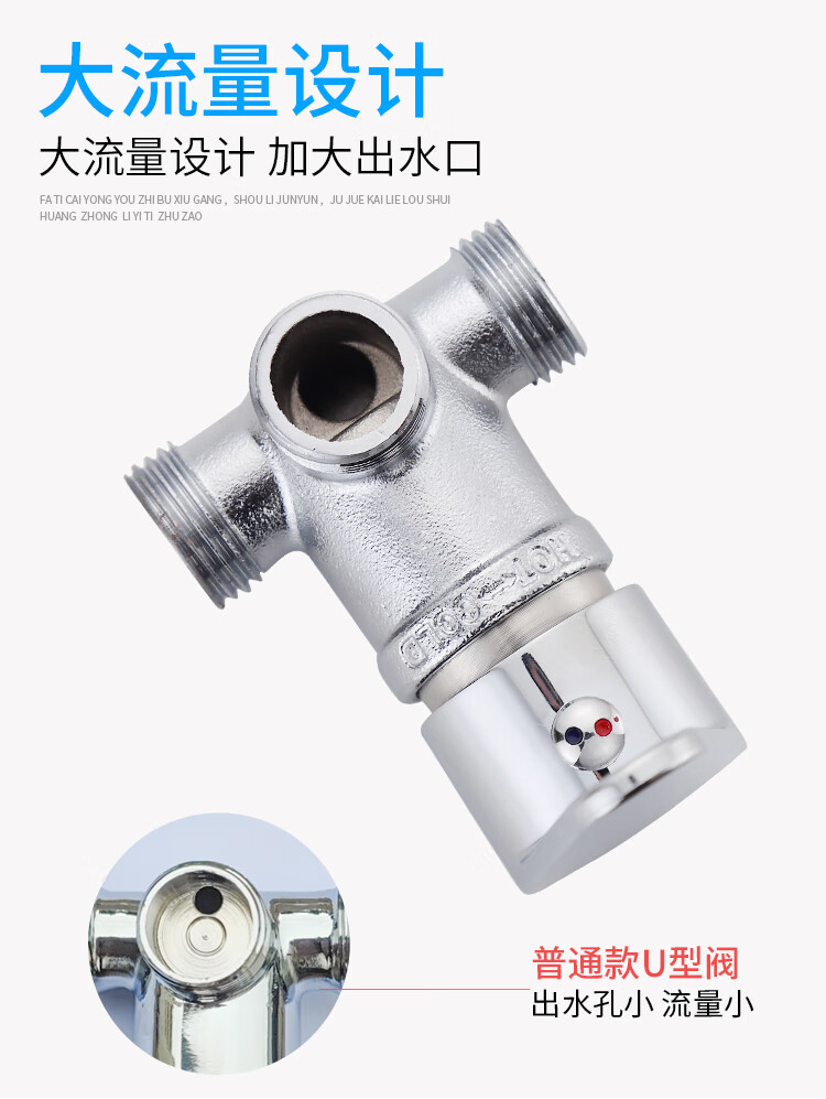 JIEGUAN electric water heater mixing valve hot and cold faucet shower shower surface-mounted large flow U-shaped valve switch special universal large flow stainless steel U-shaped valve + safety valve