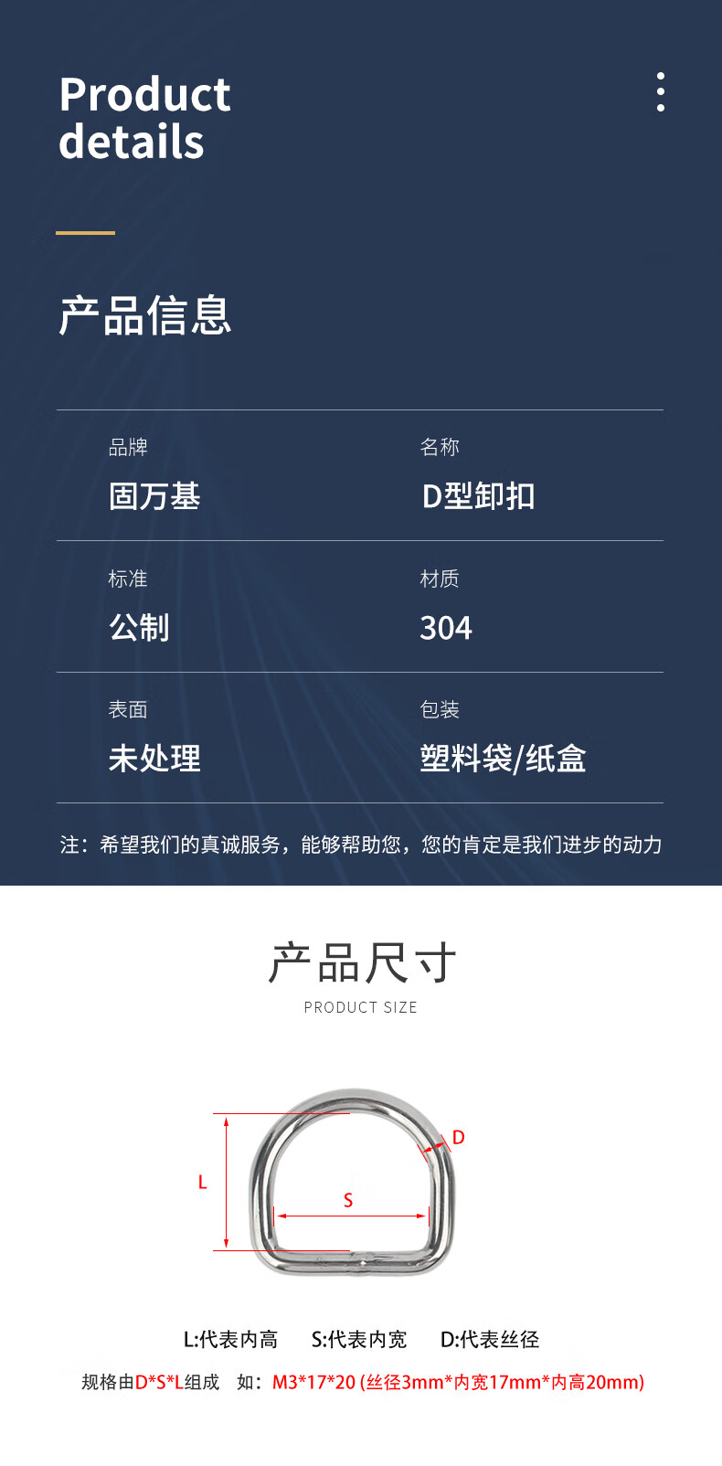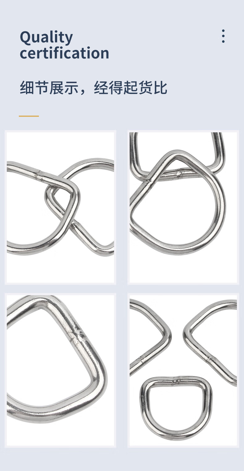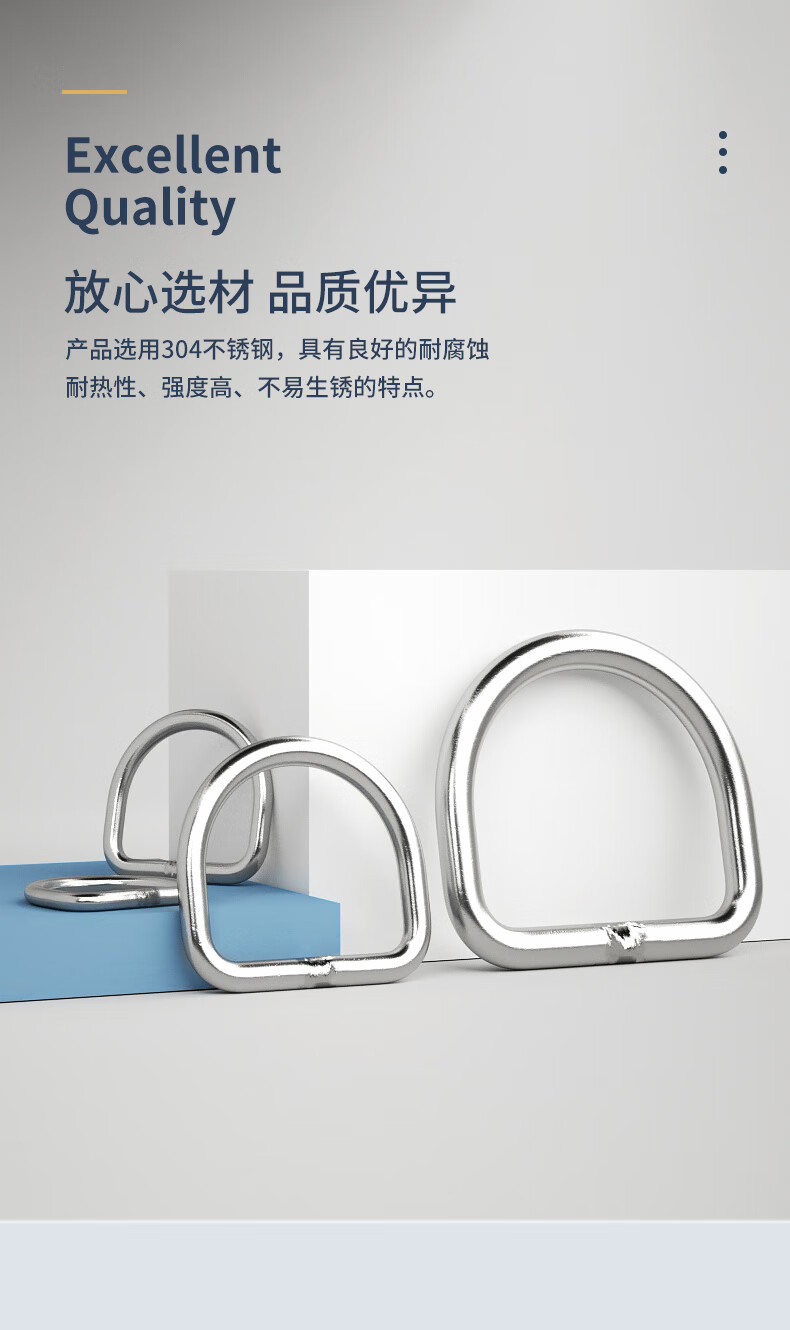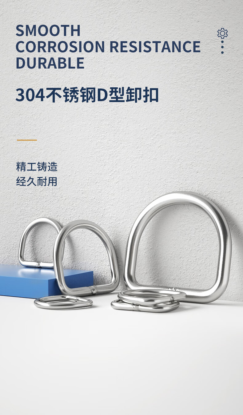 Guwanji quick connect ring stainless steel 304D type shackle national standard extended d-shaped shackle lifting U-shaped connection buckle 3x20x17 (5 pieces)