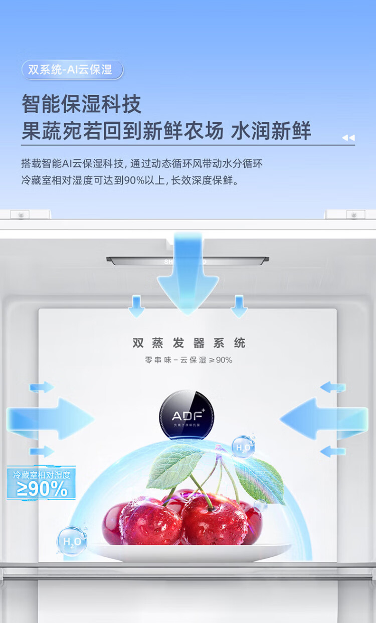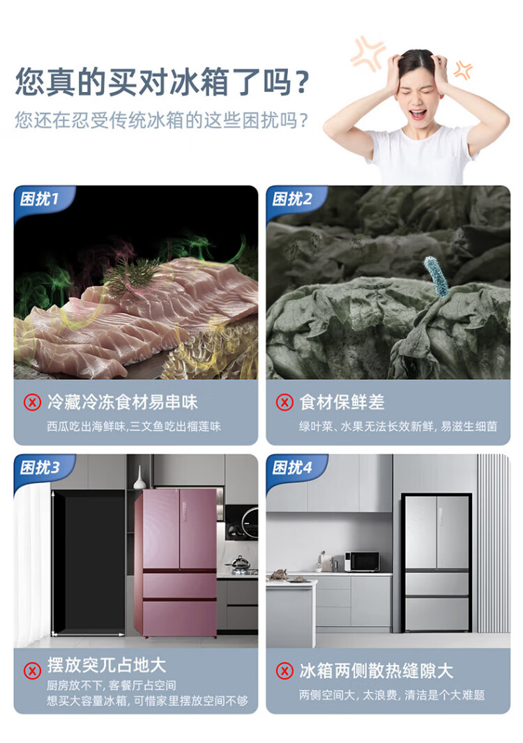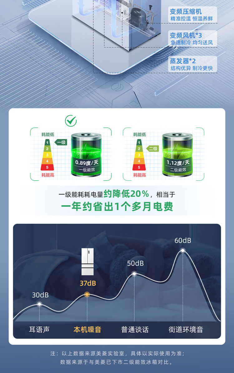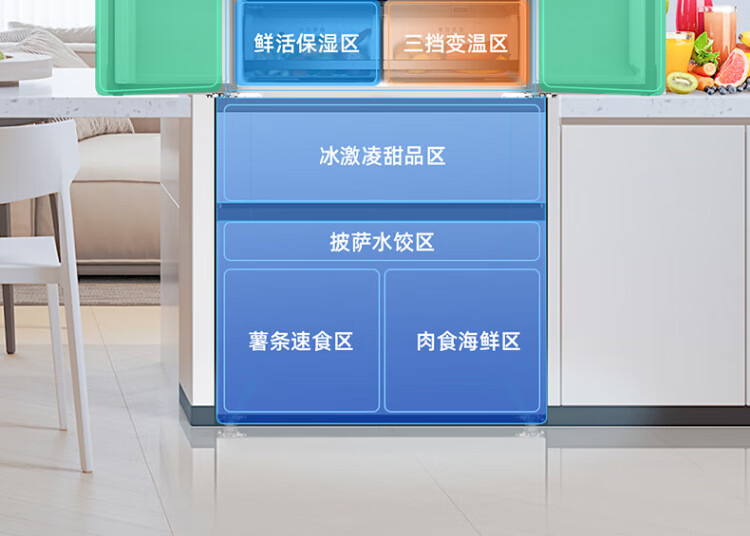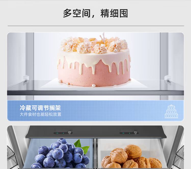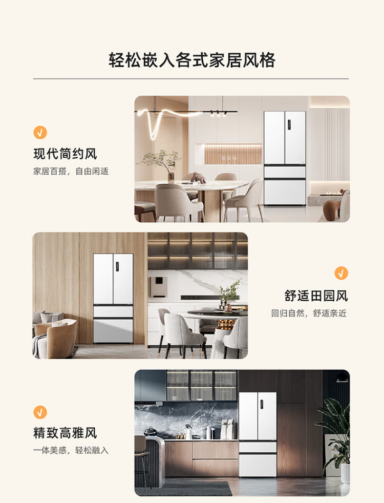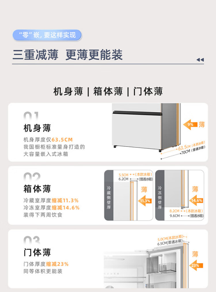 MeiLing worry-free embedded | 511 French four-door multi-door household ultra-thin zero embedded large capacity refrigerator deep 63.5cm dual system circulation air-cooled frost-free first-level energy efficiency subsidy refrigerator Wuyou embedded BCD-511WP9CZX Snowy White