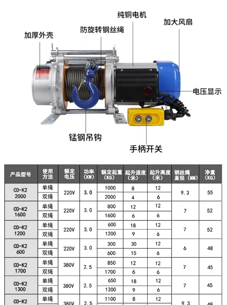 1 ton 2 ton winch 220v high-rise hoisting small fast crane lift hoist electric hoist 380v upgraded version 220v 1 ton 30 meters slow speed