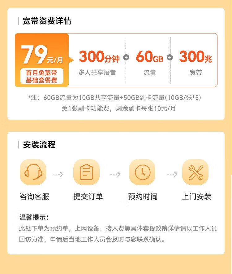 China Telecom Chengdu Telecom 300M converged broadband installation and processing Online reservation and installation processing 79 yuan/month 300M The first month of free broadband basic package fee (this is an appointment order)