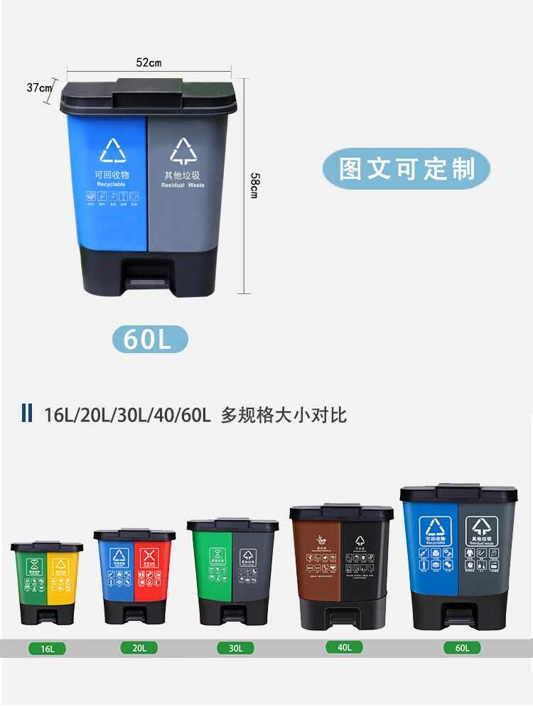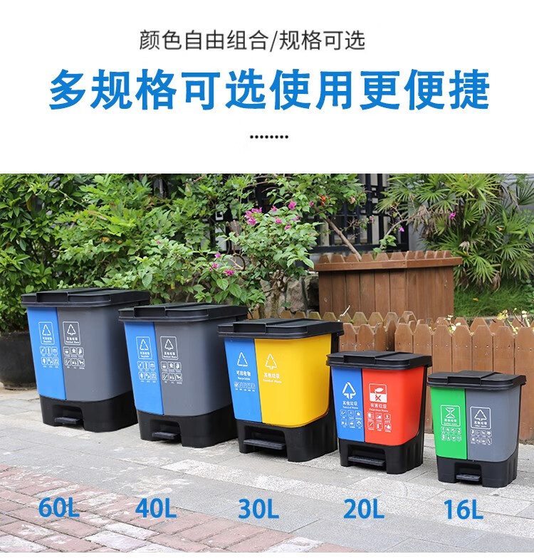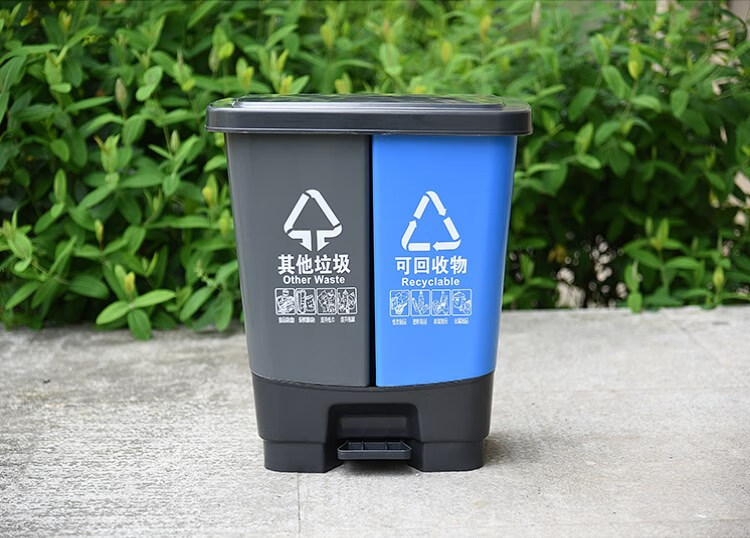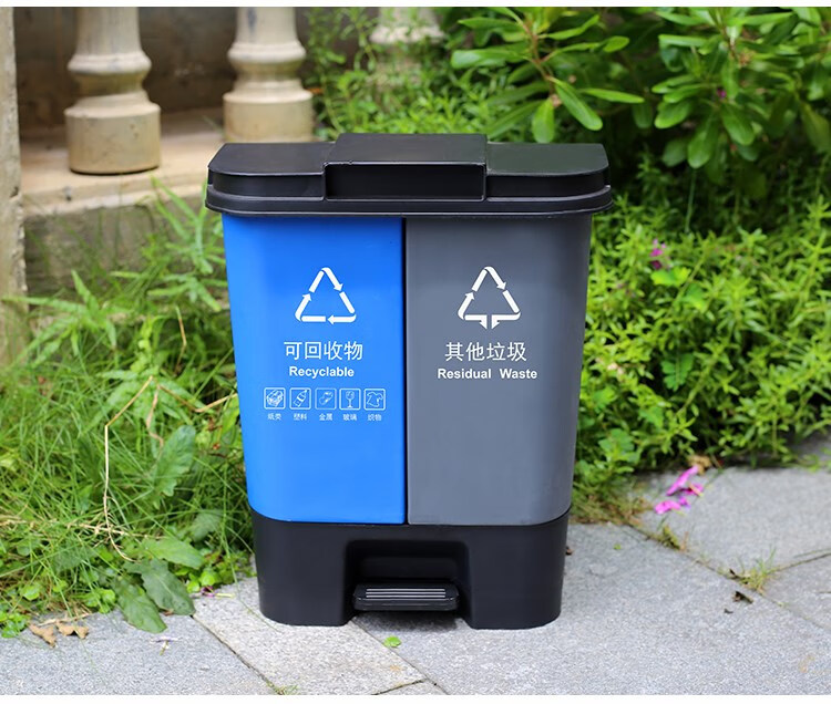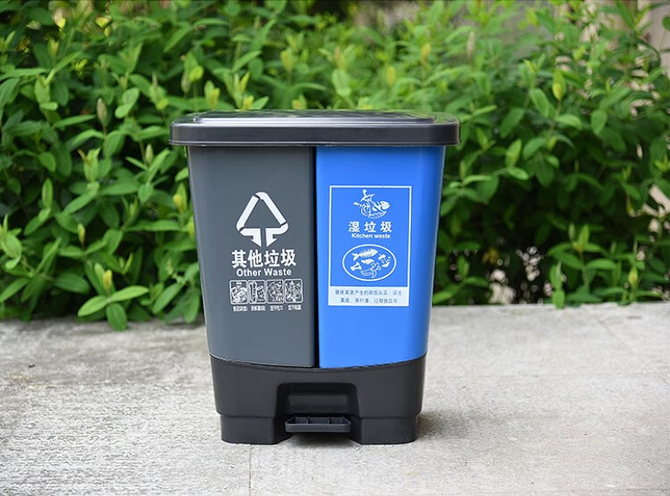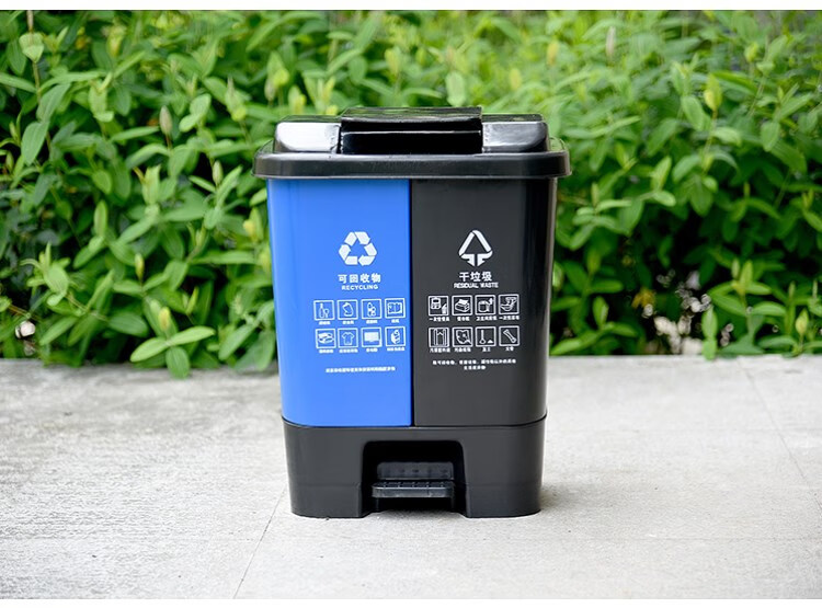 Garbage classification trash can commercial school wet and dry harmful food waste three-in-one foot-operated double bucket 100L with lid 16 liters blue recyclable + gray others