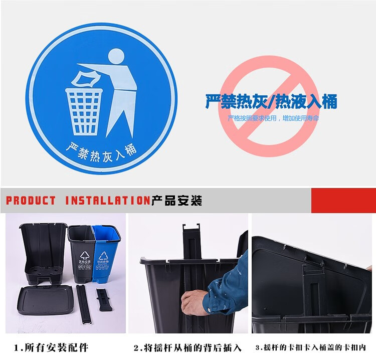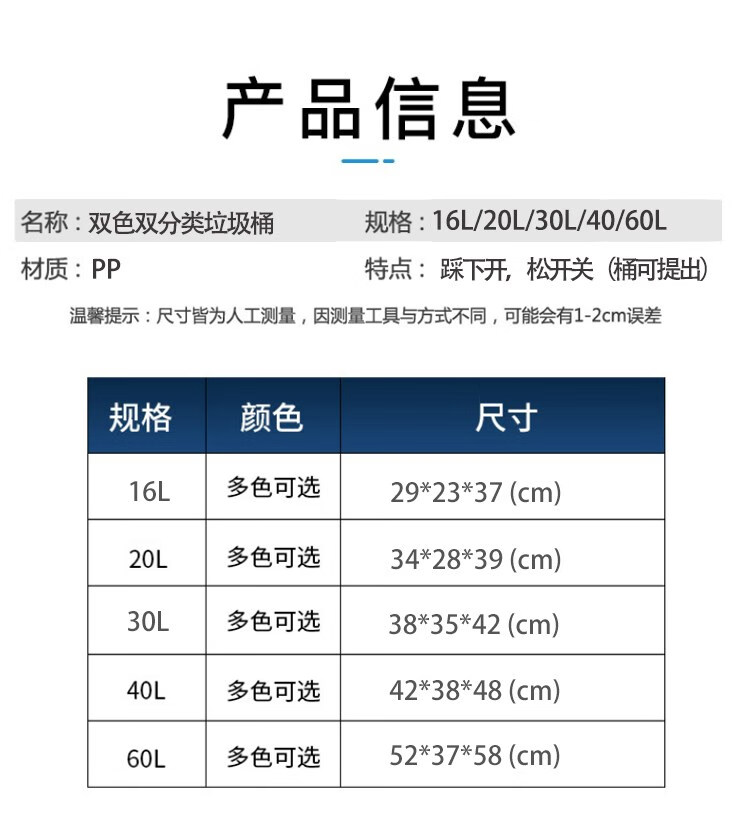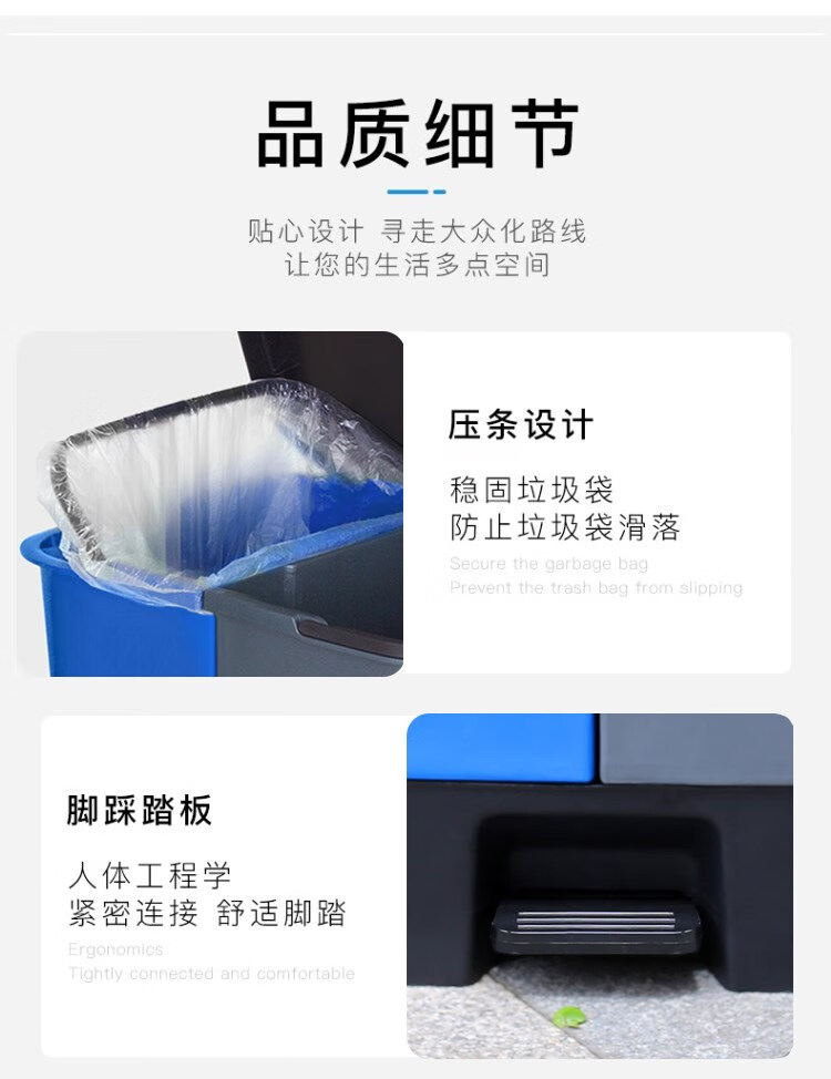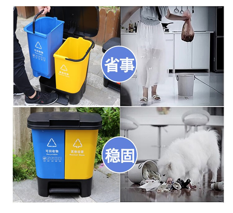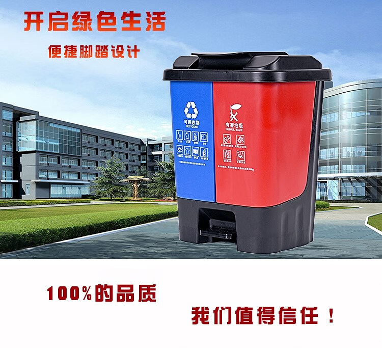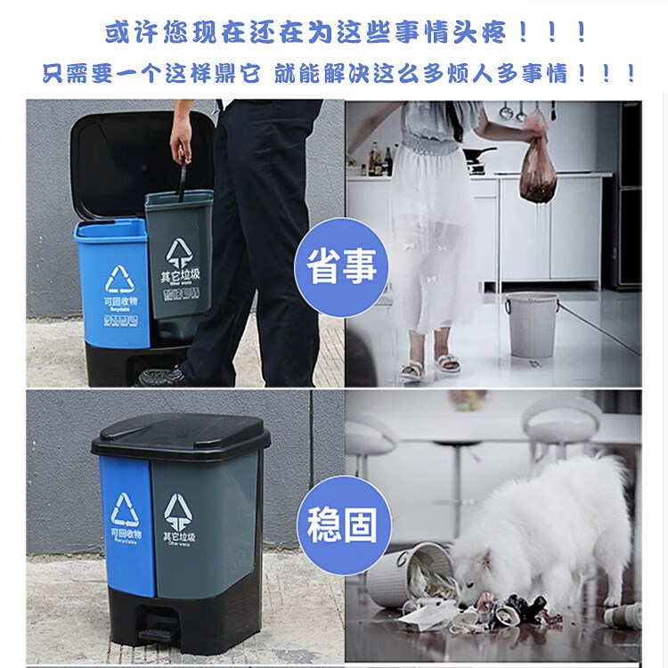 Garbage classification trash can commercial school wet and dry harmful food waste three-in-one foot-operated double bucket 100L with lid 16 liters blue recyclable + gray others