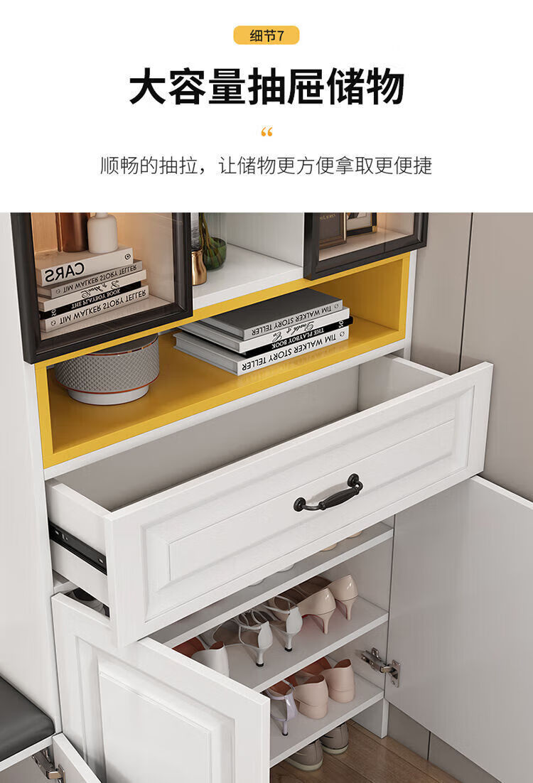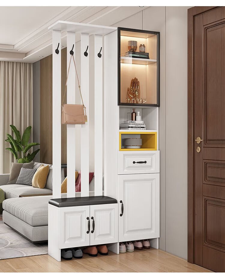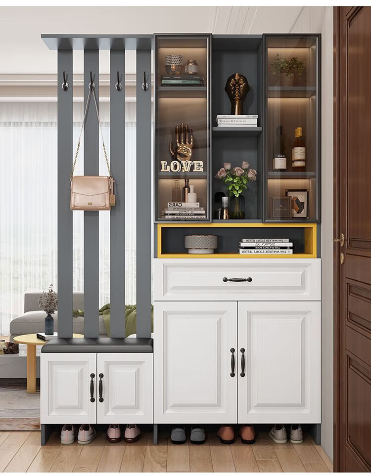 Guangdong Mercure 2026 new European style solid wood entrance hall cabinet simple modern multi-functional shoe cabinet and wine cabinet integrated storage delivery home package installation stool on the right white 40*30*200 with door style