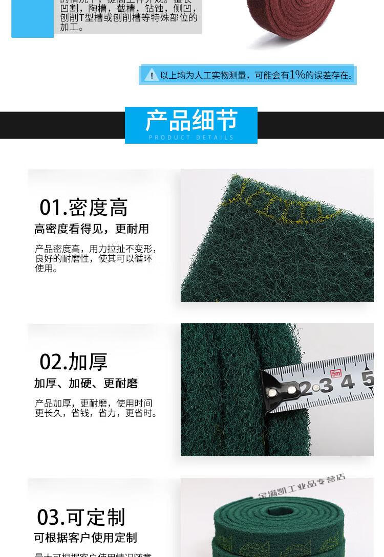 Emery scouring pad industrial thickened and hard rolled stainless steel dishwashing cloth kitchen supplies artifact green thickened width 7CM * length 3M