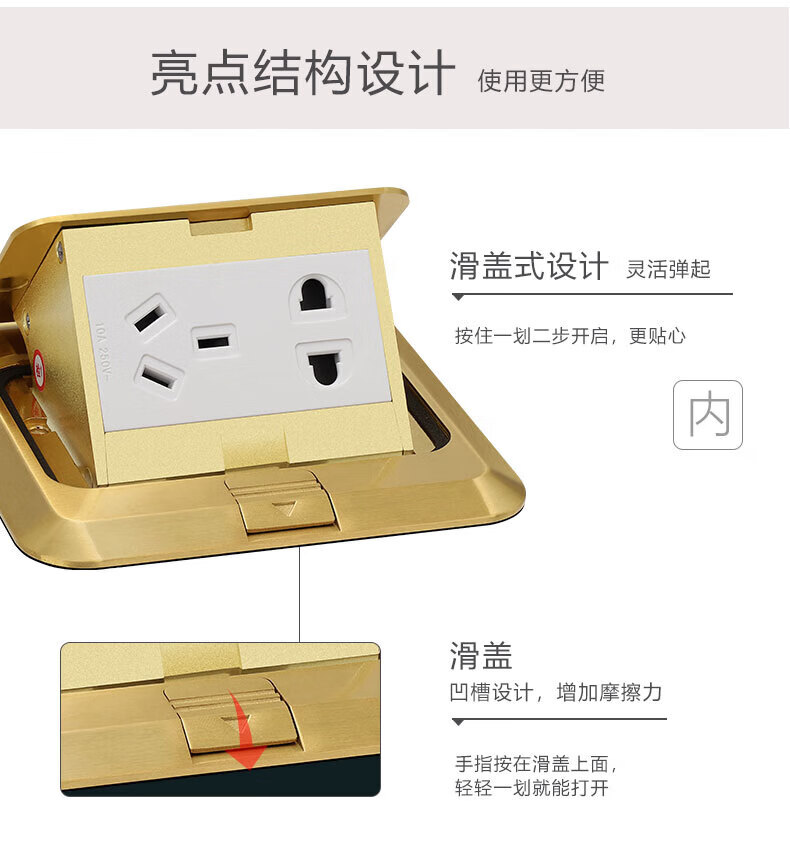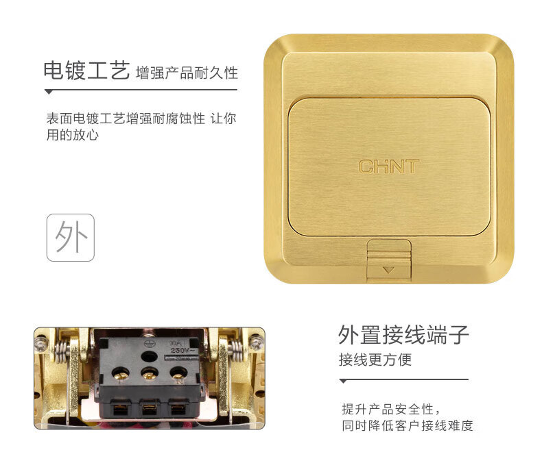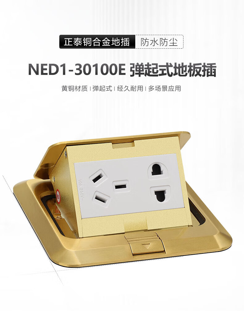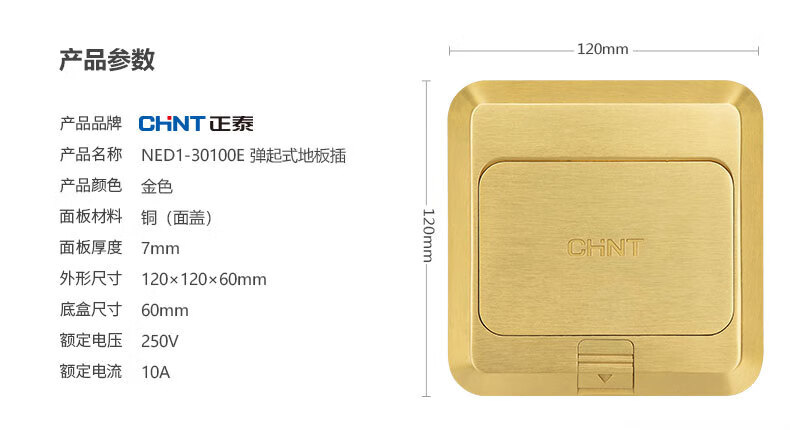 Chint (CHNT) switch socket floor socket hidden five-hole waterproof damping floor socket invisible thin flat push floor socket NED3-00200 flat push floor socket-double three holes 16A