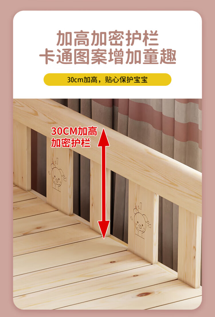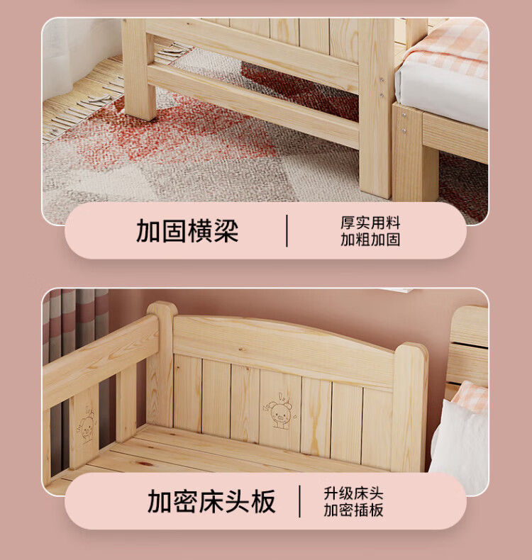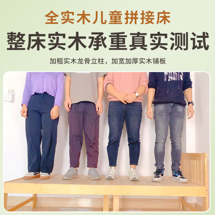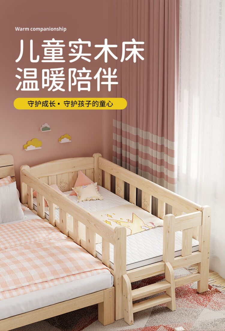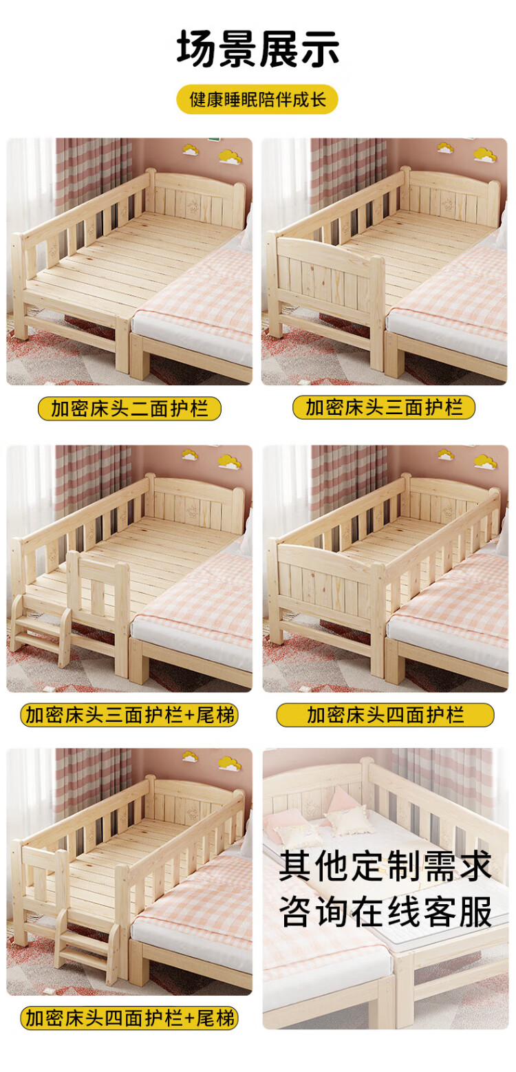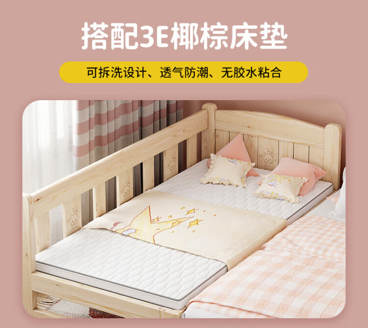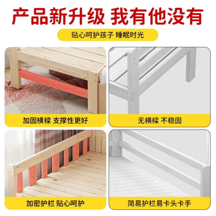Muniuren children's spliced bed with wide guardrails solid wood bed for boys and girls children's bed single bed crib spliced large bed reinforced 160*80 four-sided guardrail + tail ladder + mattress