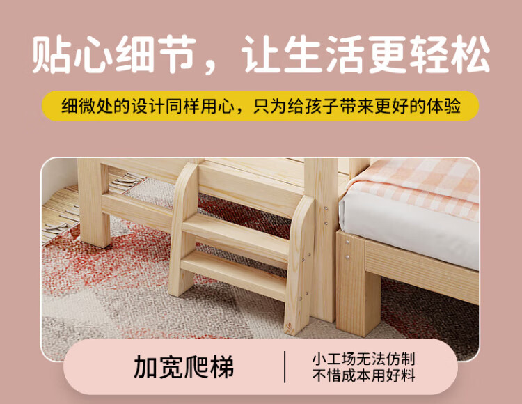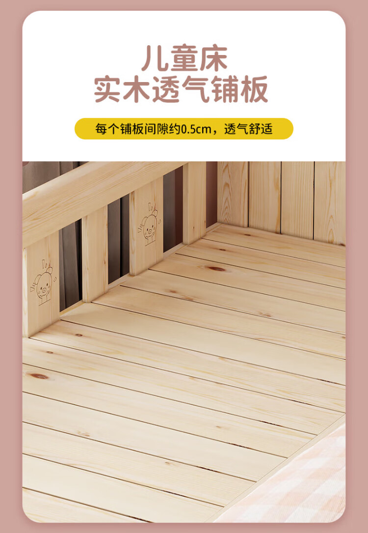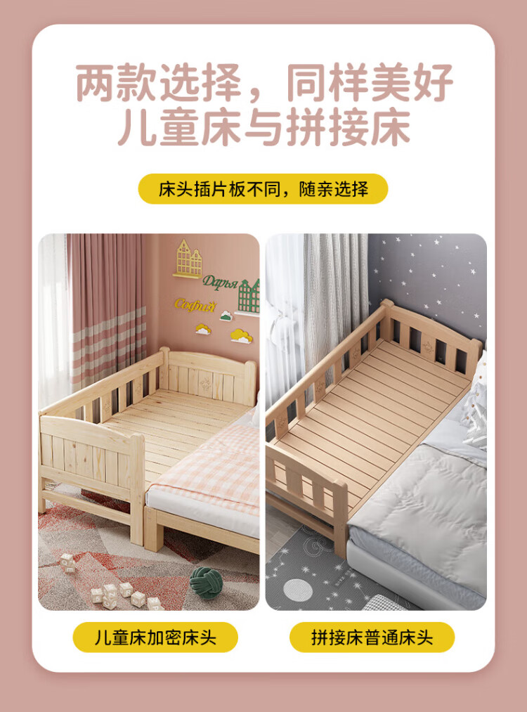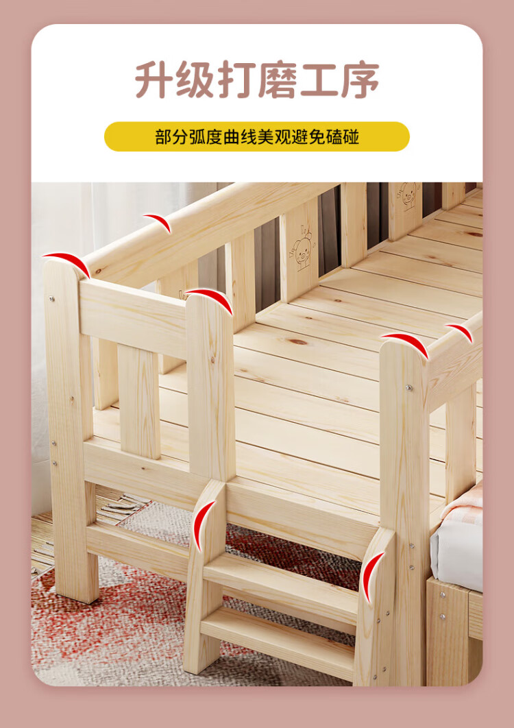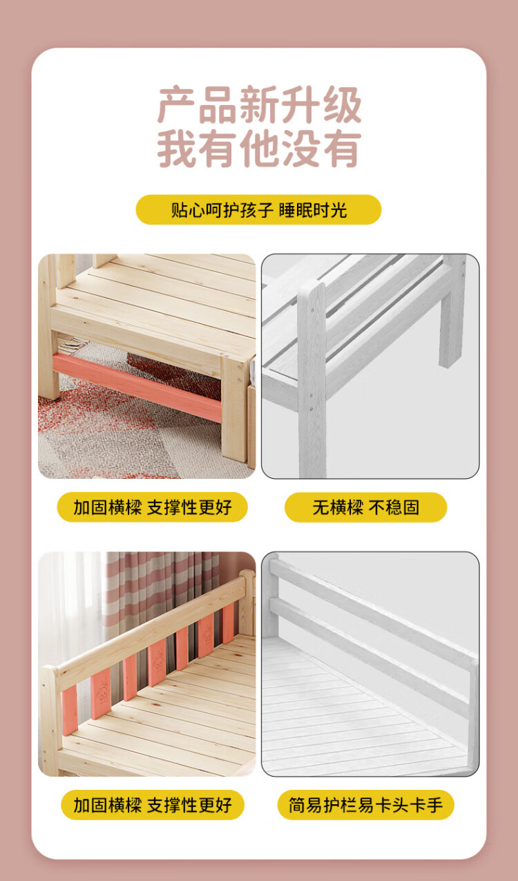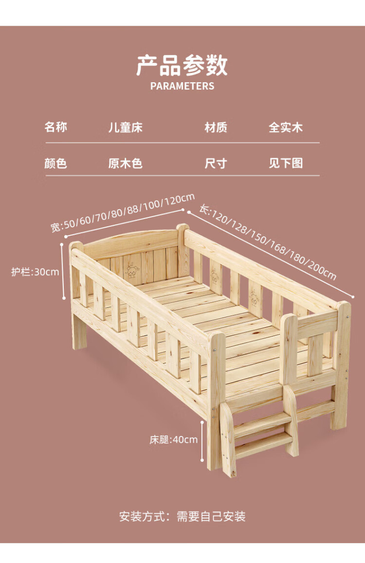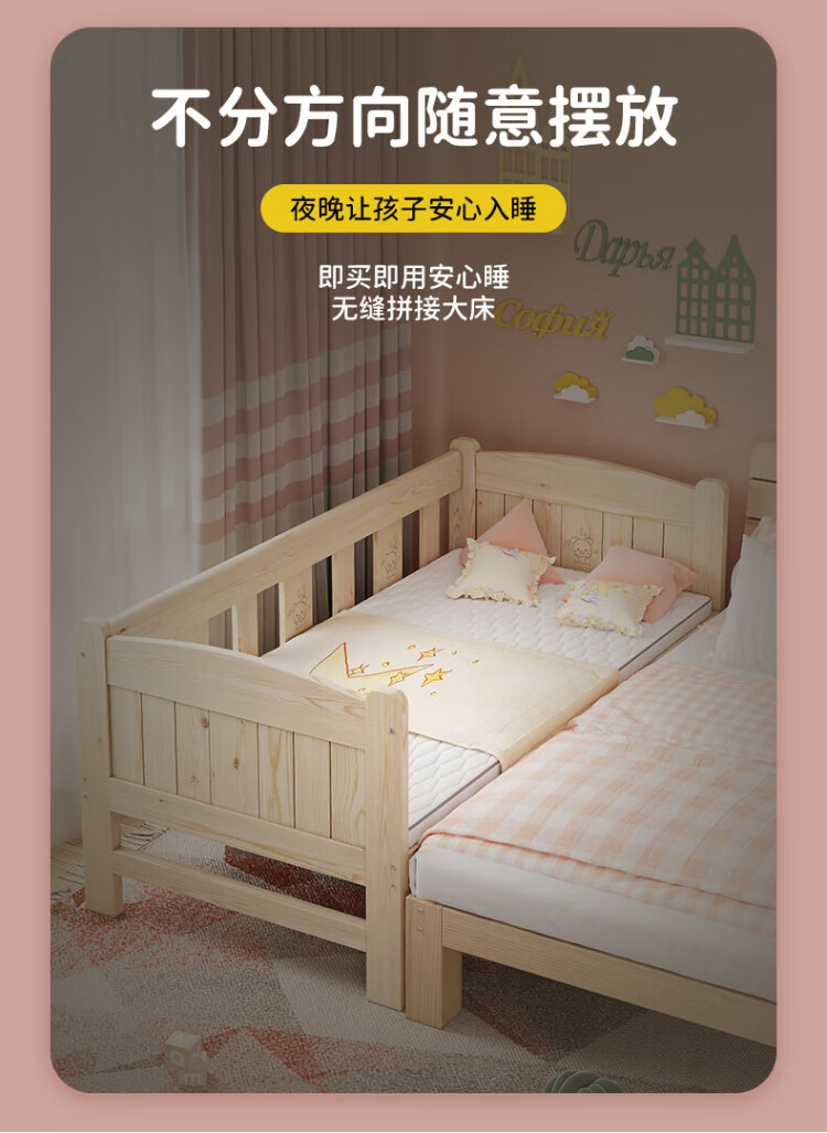 Muniuren children's spliced bed with wide guardrails solid wood bed for boys and girls children's bed single bed crib spliced large bed reinforced 160*80 four-sided guardrail + tail ladder + mattress