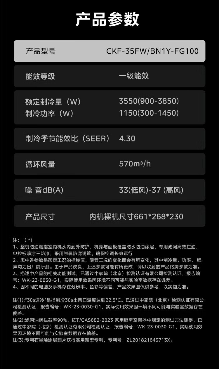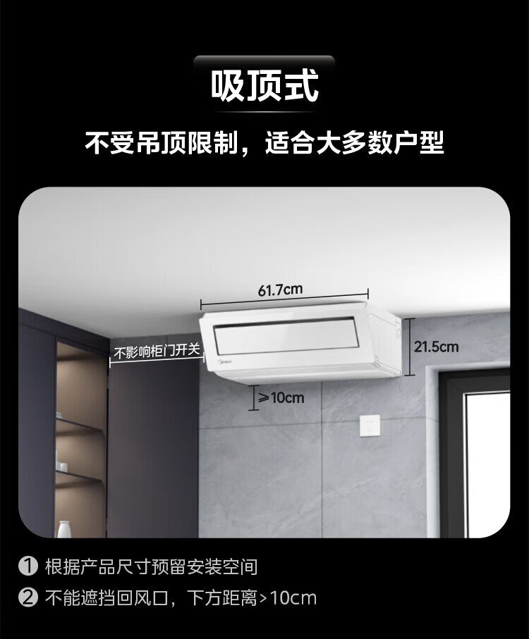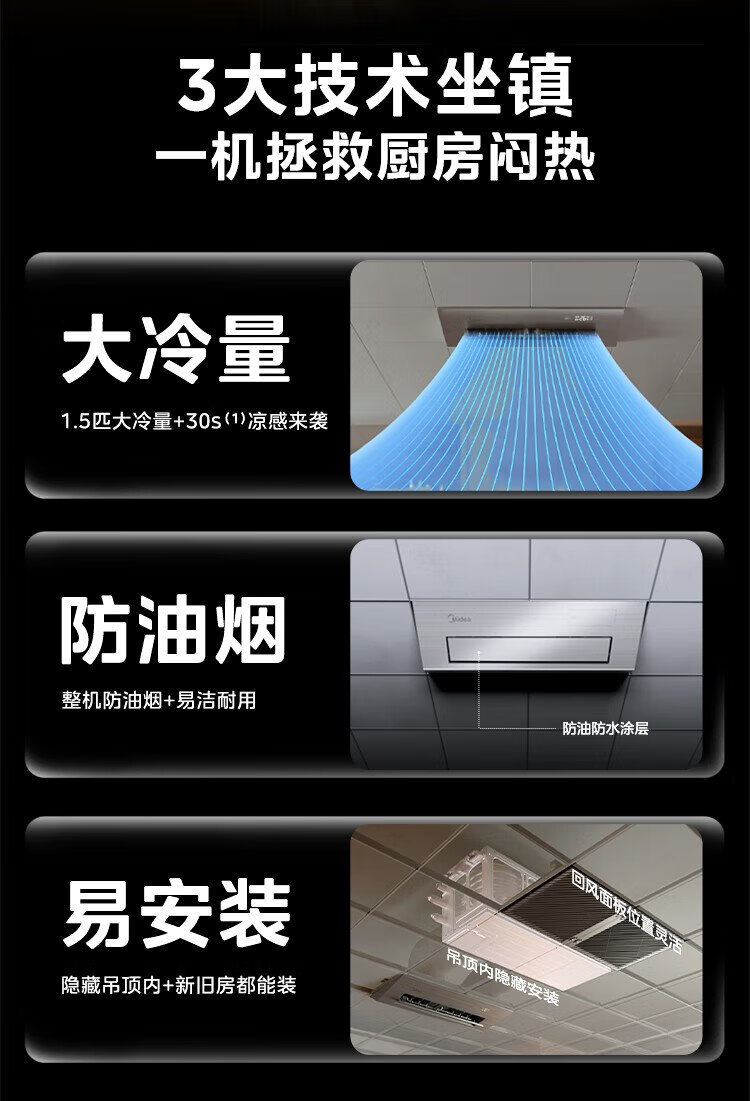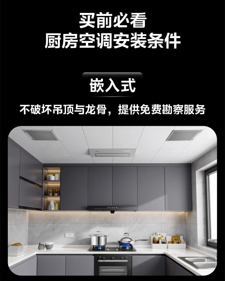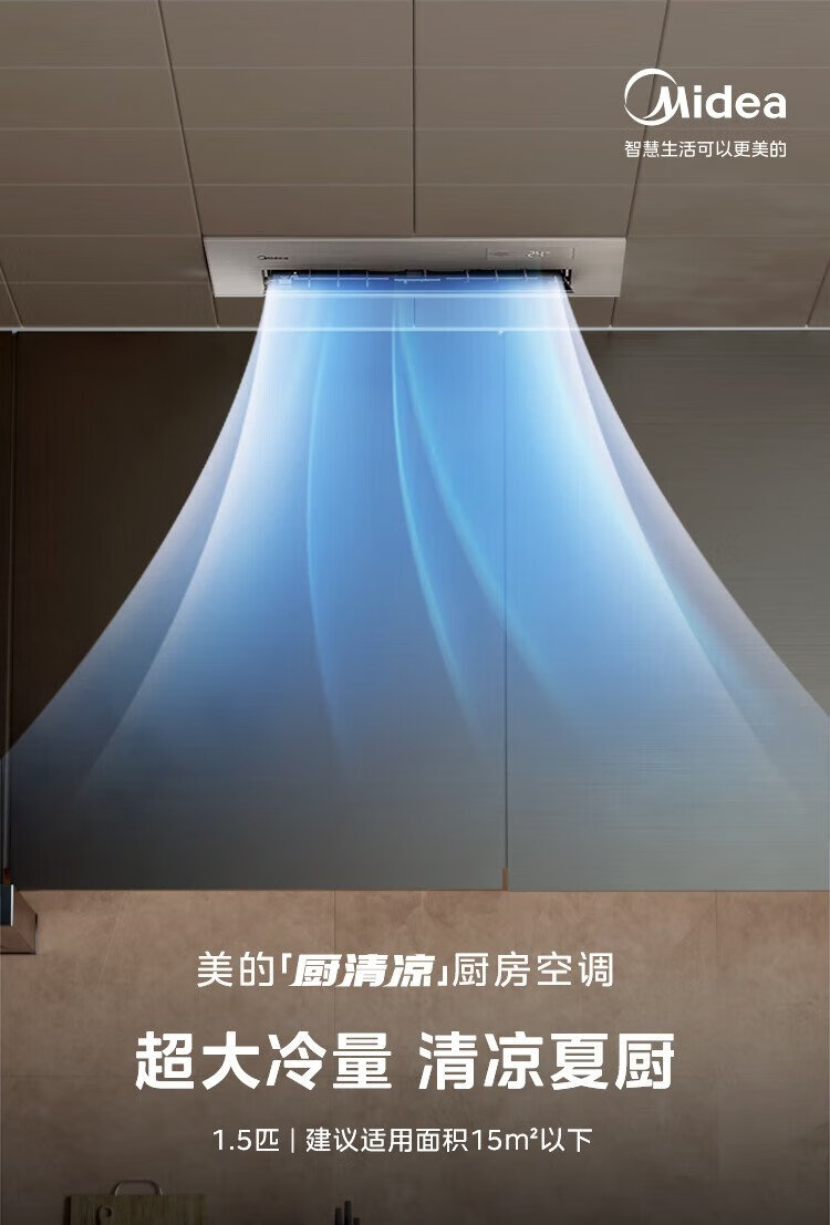 Midea kitchen air conditioner special built-in first-class energy efficiency inverter 1.5 HP household appliances household refrigeration anti-oil fume CKF-35FW/BN1Y-FG100 package installation hot style TOP1 white large 1.5 HP