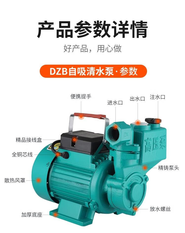 Household fully automatic self-priming pump booster pump water well pump circulation pump pipeline pressure pump 220V self-priming pump 125W manual model + take-over caution only glue pipe
