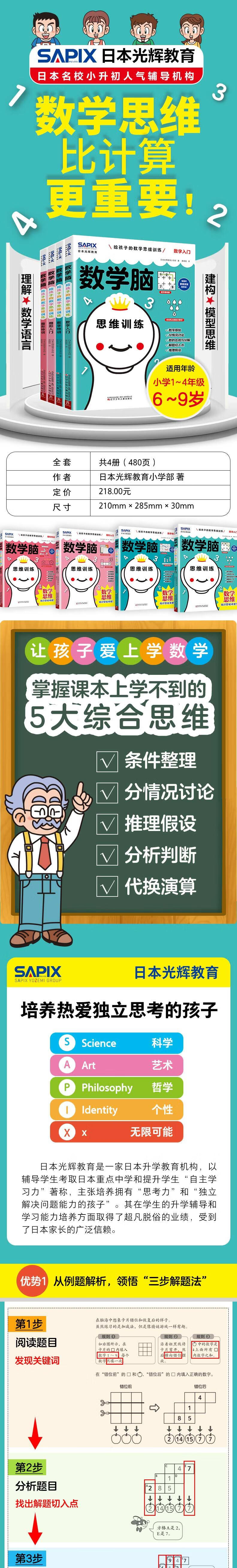 Mathematical Brain, a complete set of 4 volumes of mathematical thinking training for children. Japan's Guanghui Education Mathematical Brain. Special training on digital graphics for introductory mathematical thinking. It is more important than calculation. Let children fall in love with mathematics books.