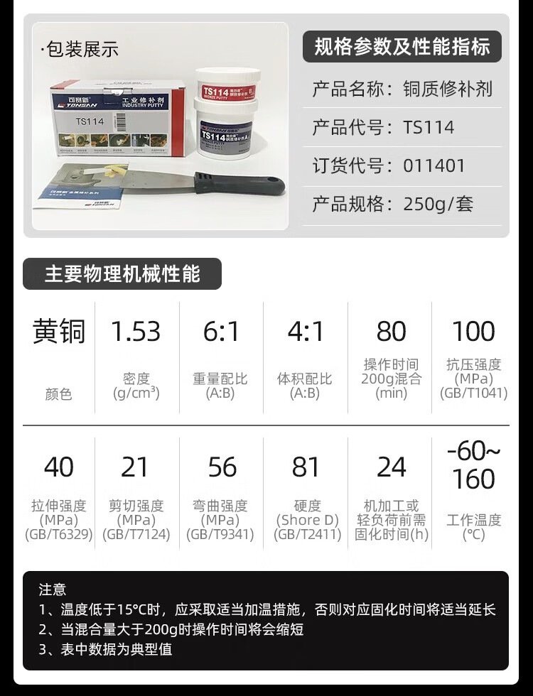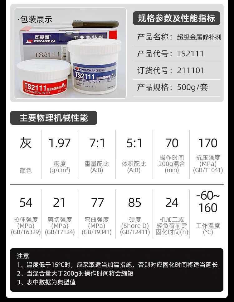 Kesaixin TS111 iron TS112 steel TS113 aluminum TS114 copper industrial casting ab glue metal repair agent TS406 corrosion-resistant coating/500g
