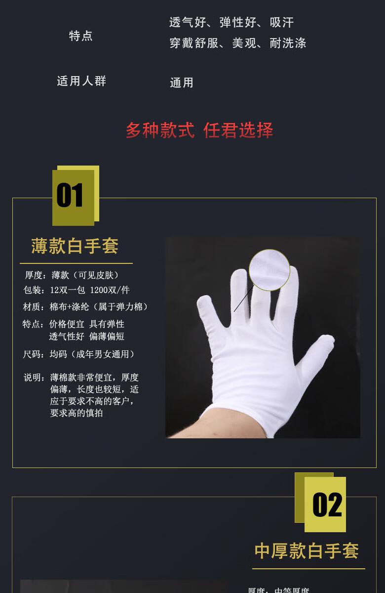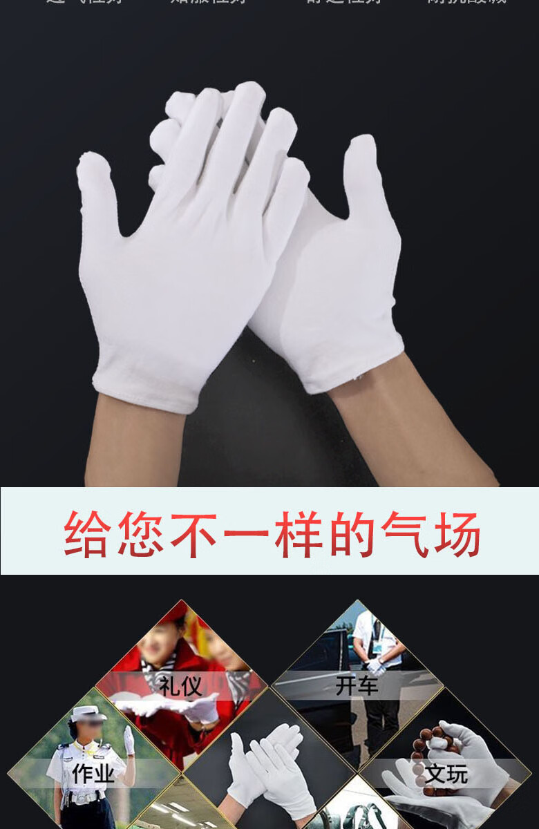 Gloves disposable cloth thin fabric woven ultra-thin white cotton labor protection industrial wear-resistant work stationery cotton gloves thin (12 pairs/pack) one size