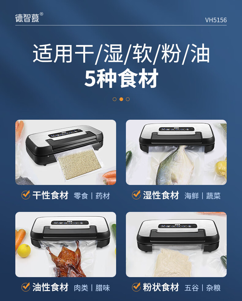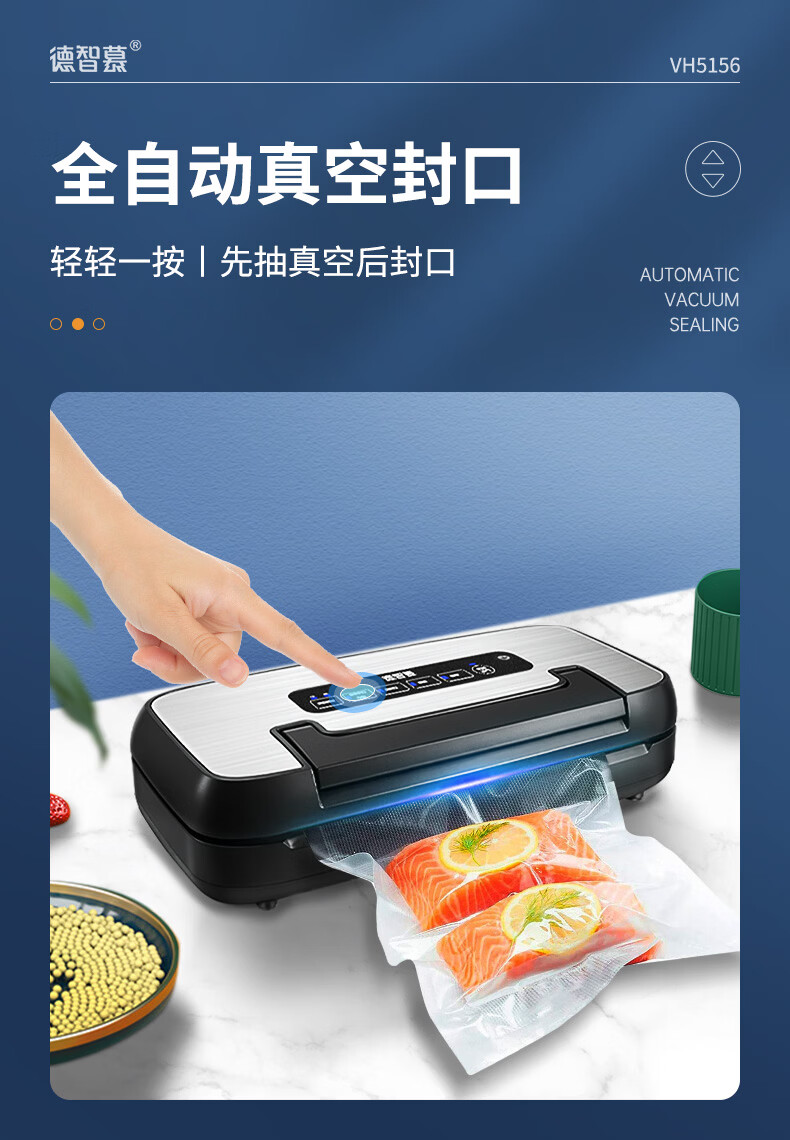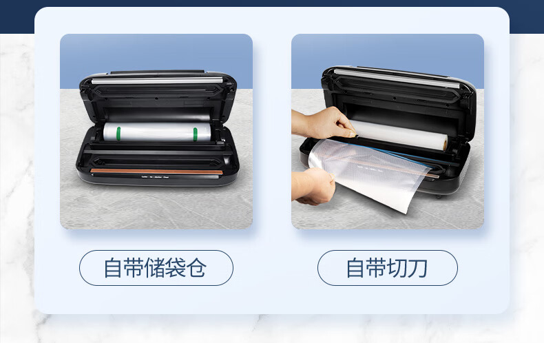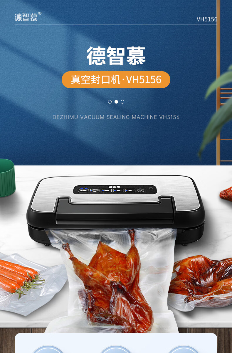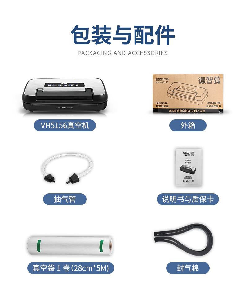 Dezhimu 80KPA fully automatic vacuum sealing machine high-power wet and dry packaging machine sealing vacuum all-in-one machine household commercial compressor comes with cutting knife storage bag warehouse top model 5188-90KPA free 3 rolls 28CM*3M